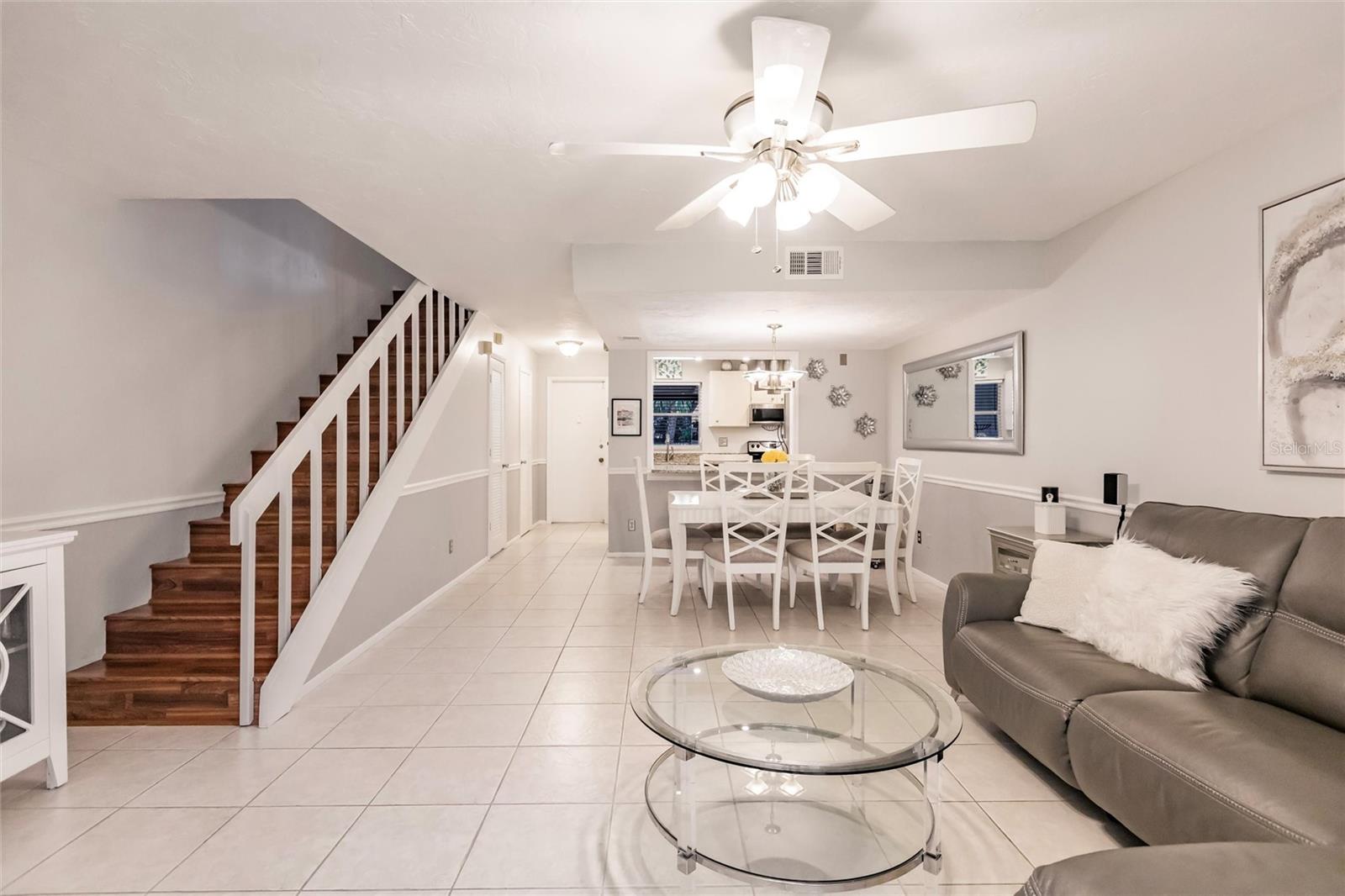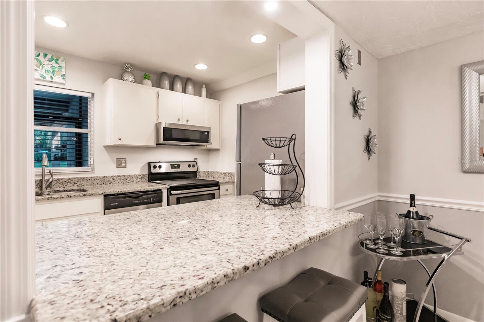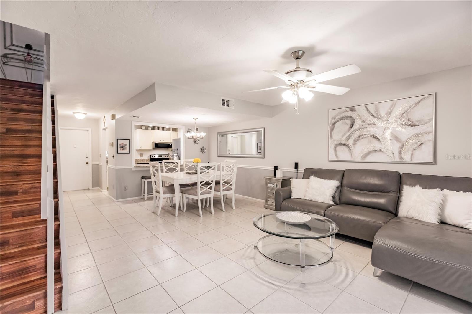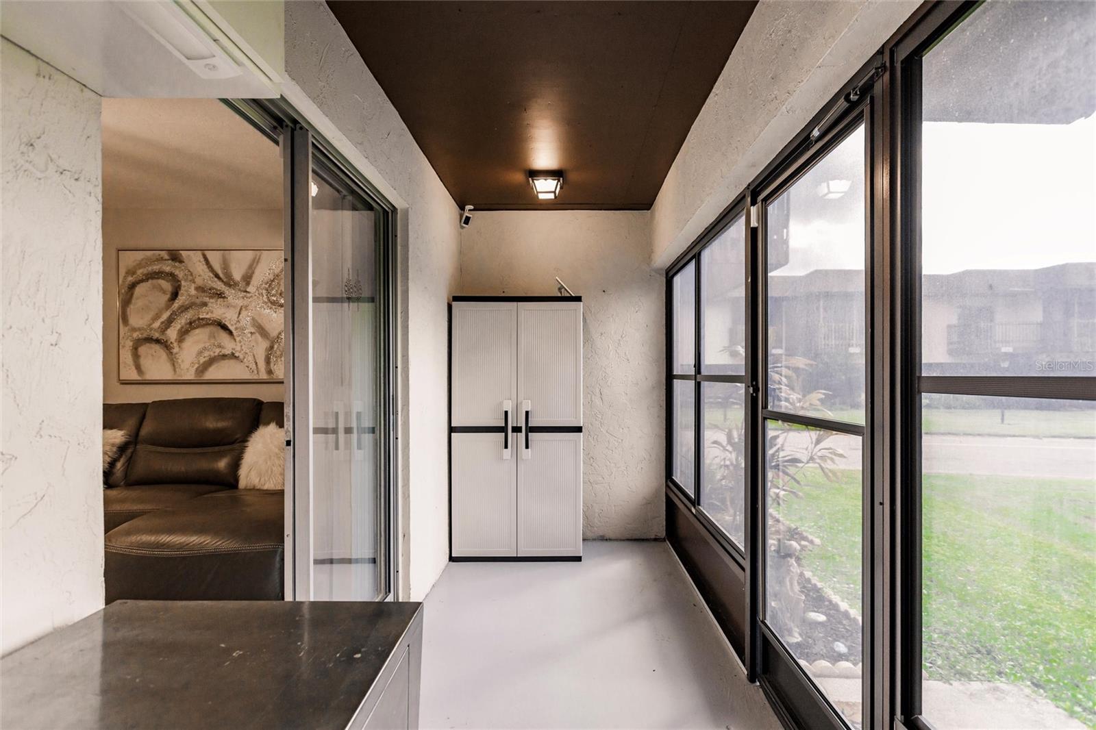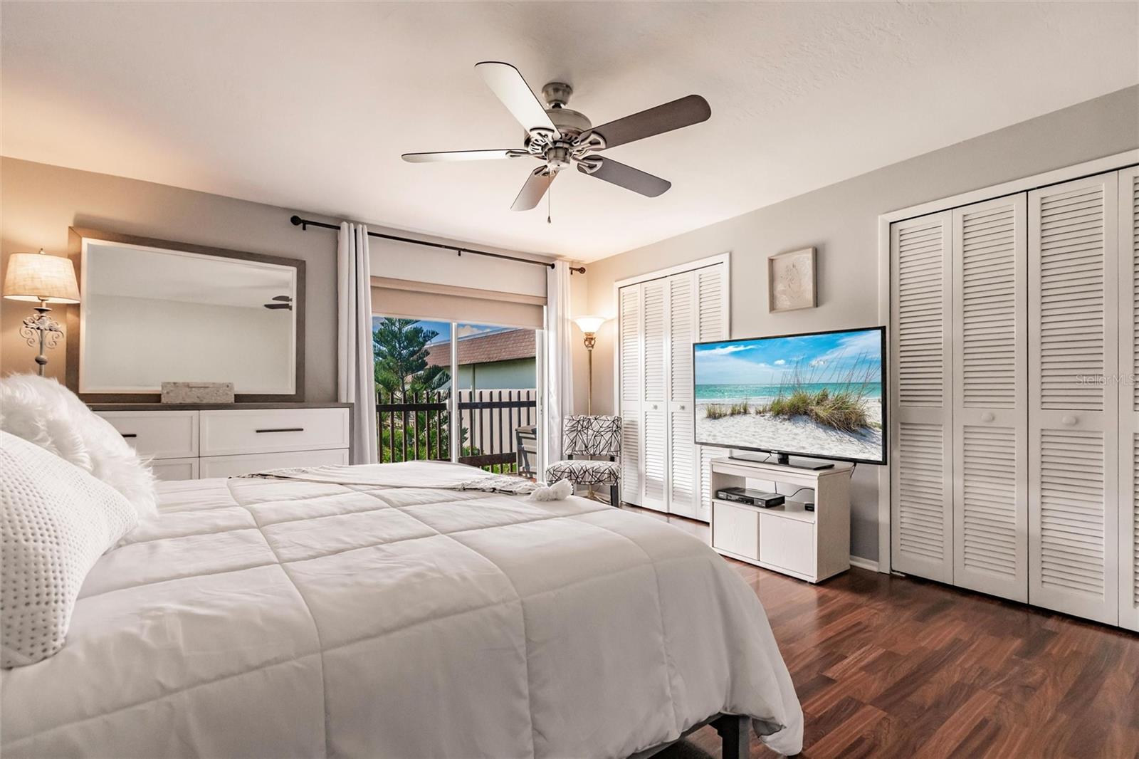 If you are looking for a FURNISHED residence, whether permanent or seasonal getaway, this tastefully furnished, immaculate and well-maintained townhome in the heart of Sarasota is a must see! As you approach, you'll be welcomed by hanging geraniums and a small planting area where you can add your personal touches and indulge your green thumb. Inside the screen enclosure, you'll find a laundry room equipped with washer and dryer. As you enter, you'll discover neutral tones and freshly and professionally painted walls, trim, and doors. The first floor features easy clean tile and a galley kitchen with granite countertops, stainless steel appliances, a reverse osmosis filtration system and a quaint spice nook. A huge walk-in pantry, half-bath and open dining/living room concept with table for six and a leather couch, a large screen TV and entertainment stand, complete the downstairs. Walk out the sliding glass doors to your private screened lanai enclosed with vinyl panels (2021) which can be opened to let the breeze flow through or closed for privacy. The stairway and second floor are adorned with professionally installed, high quality laminate. Upstairs are two sumptuously sized bedrooms, each with their own ensuite bath and a private deck where you and your guests can enjoy a slice of Florida paradise. The primary bedroom boasts a walk-in closet with a designer quality, hand-carved solid wood and marble bedroom suite. The main deck has been recently replaced with composite decking materials. The guest bedroom was redecorated in 2024. For peace of mind, this home is equipped with a Ring security system (front and back) and has voice-controlled smart lighting throughout the home. Water heater, disposal and reverse osmosis were installed 2020, A/C was installed 2021, and the washer in 2023. The location within the community is prime: close to plenty of tree-shaded guest parking and with a more private view. Popular Ramblewood Acres is a gated, maintenance-free community with amenities including 3 pools (one heated), tennis courts, playground and dog park. The clubhouse is available for rentals and houses a fitness center, pool room and the on-site manager's office. Fees include exterior maintenance, landscape and lawn maintenance, sewer & trash, internet and basic cable. Desirably located minutes from downtown Sarasota restaurants and arts district, UTC Mall, St. Armand's Circle and our beaches. For baseball enthusiasts, this home is 1 mile from Ed Smith Stadium, the home of the Baltimore Orioles spring training. All dimensions are approximate. This home is move-in ready! List of included furniture provided at time of contract. Schedule your showing today!