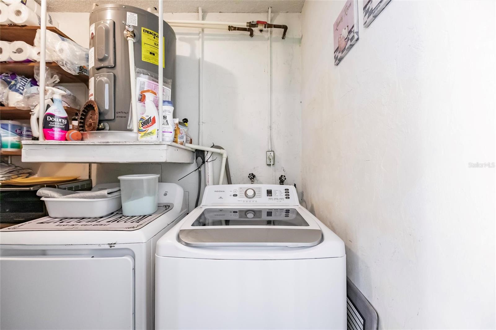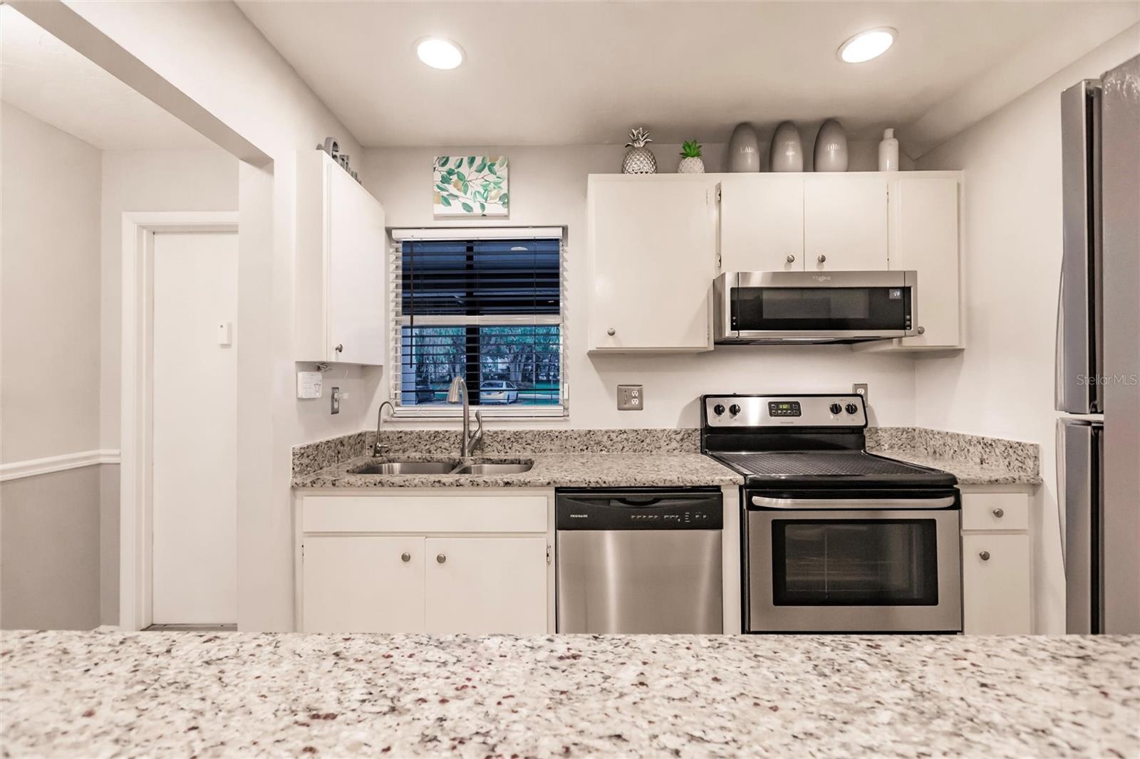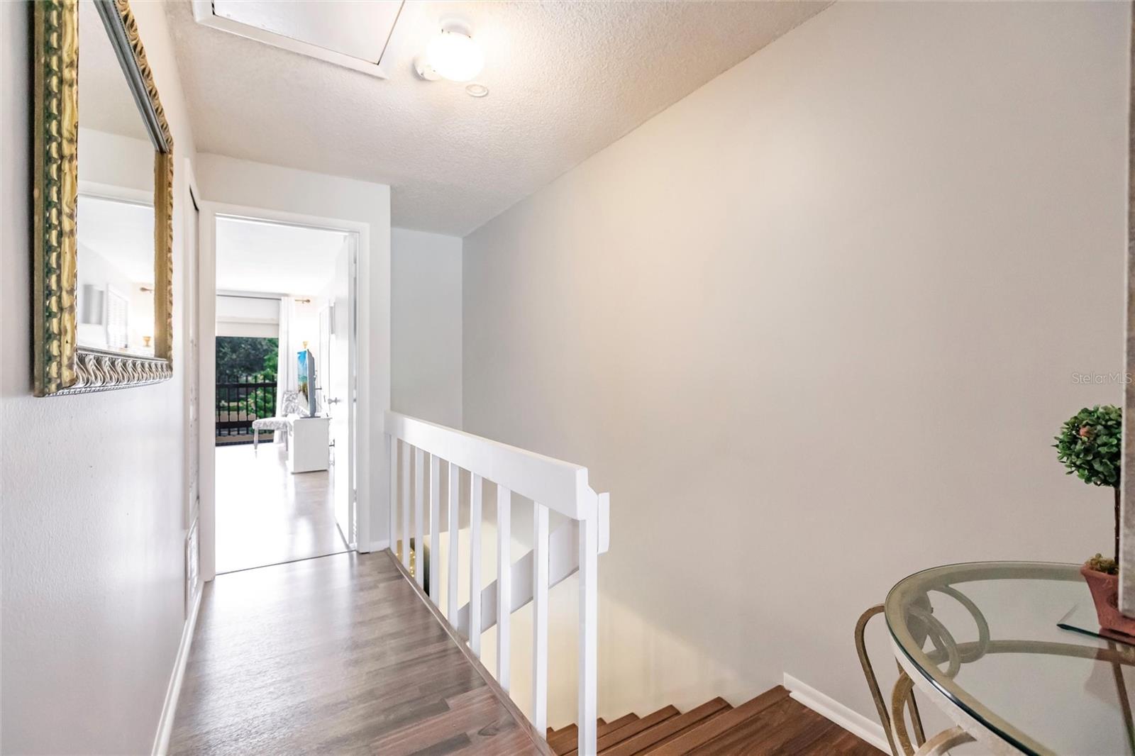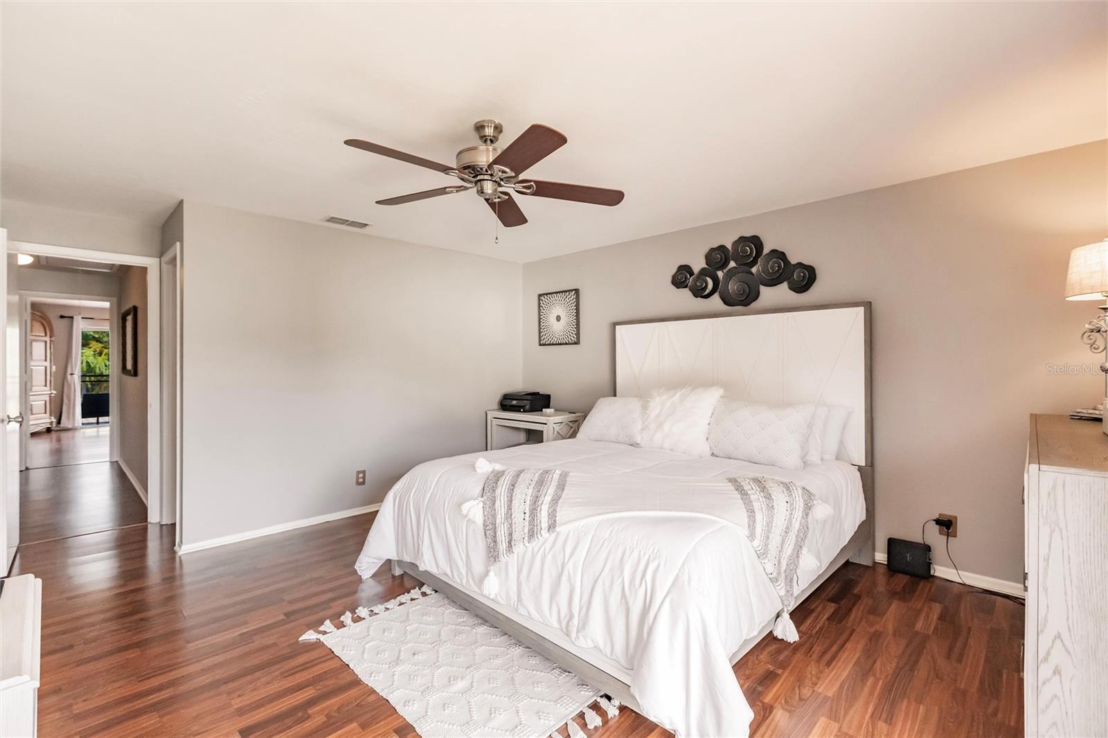 If you are looking for a FURNISHED residence, whether permanent or seasonal getaway, this tastefully furnished, immaculate and well-maintained townhome in the heart of Sarasota is a must see! As you approach, you'll be welcomed by hanging geraniums and a small planting area where you can add your personal touches and indulge your green thumb. Inside the screen enclosure, you'll find a laundry room equipped with washer and dryer. As you enter, you'll discover neutral tones and freshly and professionally painted walls, trim, and doors. The first floor features easy clean tile and a galley kitchen with granite countertops, stainless steel appliances, a reverse osmosis filtration system and a quaint spice nook. A huge walk-in pantry, half-bath and open dining/living room concept with table for six and a leather couch, a large screen TV and entertainment stand, complete the downstairs. Walk out the sliding glass doors to your private screened lanai enclosed with vinyl panels (2021) which can be opened to let the breeze flow through or closed for privacy. The stairway and second floor are adorned with professionally installed, high quality laminate. Upstairs are two sumptuously sized bedrooms, each with their own ensuite bath and a private deck where you and your guests can enjoy a slice of Florida paradise. The primary bedroom boasts a walk-in closet with a designer quality, hand-carved solid wood and marble bedroom suite. The main deck has been recently replaced with composite decking materials. The guest bedroom was redecorated in 2024. For peace of mind, this home is equipped with a Ring security system (front and back) and has voice-controlled smart lighting throughout the home. Water heater, disposal and reverse osmosis were installed 2020, A/C was installed 2021, and the washer in 2023. The location within the community is prime: close to plenty of tree-shaded guest parking and with a more private view. Popular Ramblewood Acres is a gated, maintenance-free community with amenities including 3 pools (one heated), tennis courts, playground and dog park. The clubhouse is available for rentals and houses a fitness center, pool room and the on-site manager's office. Fees include exterior maintenance, landscape and lawn maintenance, sewer & trash, internet and basic cable. Desirably located minutes from downtown Sarasota restaurants and arts district, UTC Mall, St. Armand's Circle and our beaches. For baseball enthusiasts, this home is 1 mile from Ed Smith Stadium, the home of the Baltimore Orioles spring training. All dimensions are approximate. This home is move-in ready! List of included furniture provided at time of contract. Schedule your showing today!
