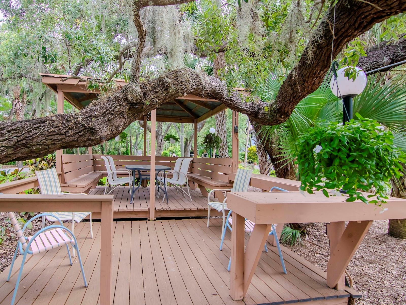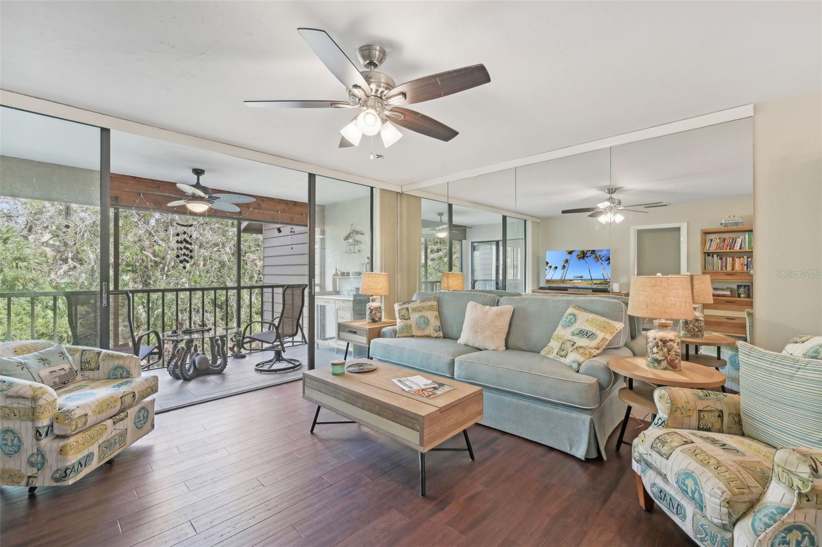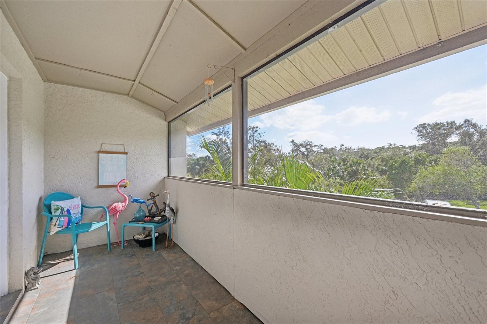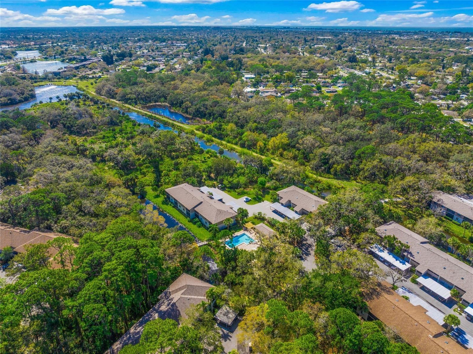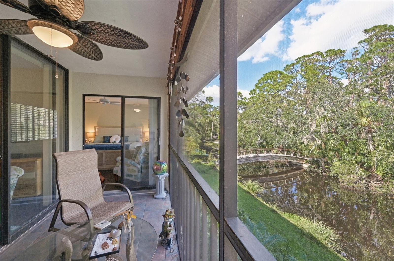 Welcome to Crooked Creek, a treasure tucked away adjacent to the 72 acre Red Bug Slough Preserve, a natural oasis in the midst of Sarasota’s suburban landscape. Open and airy, this 2 bedroom, 2 bathroom upstairs unit is awash with natural light from a large skylight in the kitchen and expansive floor-to-ceiling doors and windows to take in that phenomenal tropical outdoor view that only Crooked Creek has! Large open floorplan is a great space for entertaining, with a spacious updated kitchen and bar in 2021, newer smart stainless steel appliances and a garden window for fresh plants or herbs to create your culinary masterpieces. Completely updated in 2021, this home has new hardwood and tile throughout, plantation shutters, new updated chef's kitchen and updated bathrooms. The primary bedroom with access to one of two screened lanais, has a new walk-in shower and separate vanity dressing area with walk-in closet. The second bedroom can be a multi use room with a built-in queen size murphy bed with desk, lighting and built-in storage. Enjoy your morning coffee on one of two screened lanais overlooking water and preserve views while watching the abundance of wildlife that call the lush preserve home. This truly is a nature lovers paradise, private and secluded as each building is nestled amongst beautiful Florida native foliage, with winding roadways and pathways that flow throughout the community. Amenities that Crooked Creek residents enjoy include covered parking, designated storage space, community pool and tennis and pickle ball courts. The private pedestrian bridge offers easement and direct access to the 72 acre Hallmark of this property, The Red Bug Slough Preserve, a great place to walk your dog, birdwatch or take a 2 mile hike....and still just minutes to beautiful Siesta Key Beach, great dining, shopping and so much more!!!