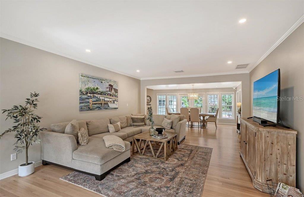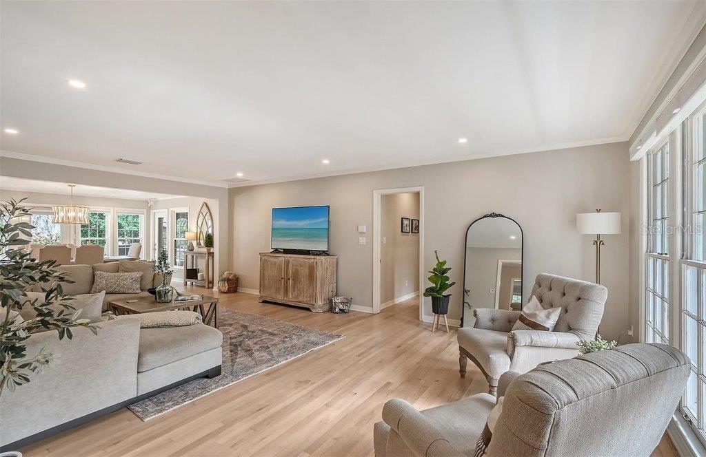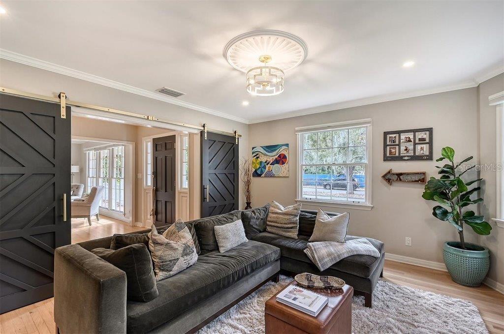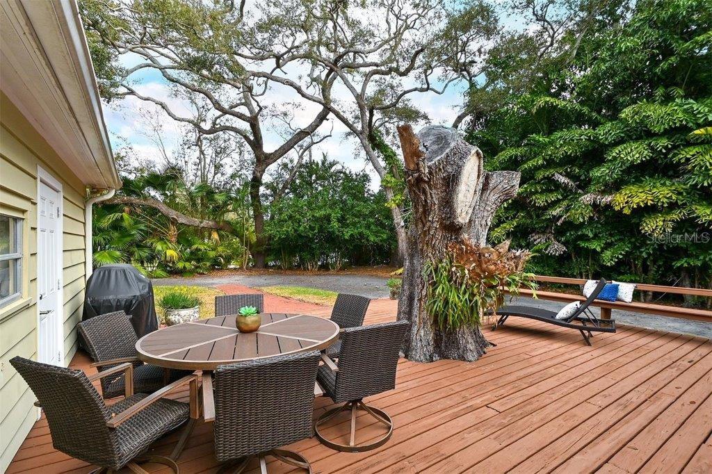 This Cherokee Park home offers an idyllic blend of elegance and comfort. Ideally located just west of Southside Elementary, this neighborhood is a stone's throw from Southside Village, Sarasota Memorial Hospital, and the vibrant heart of downtown Sarasota. Embrace the luxury of space and privacy in this expansive corner lot, shaded by beautiful oaks. The home's interior, bathed in soft, contemporary hues and a relaxed style, seamlessly complements the Floridian way of life. Spanning 2,764 square feet, the abode boasts three bedrooms, three full baths, and a convenient half bath, alongside a living room, dining room, family room, and a cozy study nook. The kitchen is a masterpiece of functionality with its solid wood cabinetry, sleek granite surfaces, top-tier stainless steel appliances, and a thoughtfully designed pantry. Recent enhancements in 2022 include upgraded appliances, modern lighting, refreshed interior paint, polished wood flooring, a revamped powder room, and a new well pump. Additional updates feature a roof replacement in 2017 and a new air conditioning system in 2016. The exterior offers a spacious yard with an inviting deck, stately oaks, and a well-fed irrigation system. Cherokee Park, known for its festive traditions, adds to its allure with community-wide Halloween celebrations and winter holiday candlelight vigils. This is more than a house; it's a place to create lasting memories.