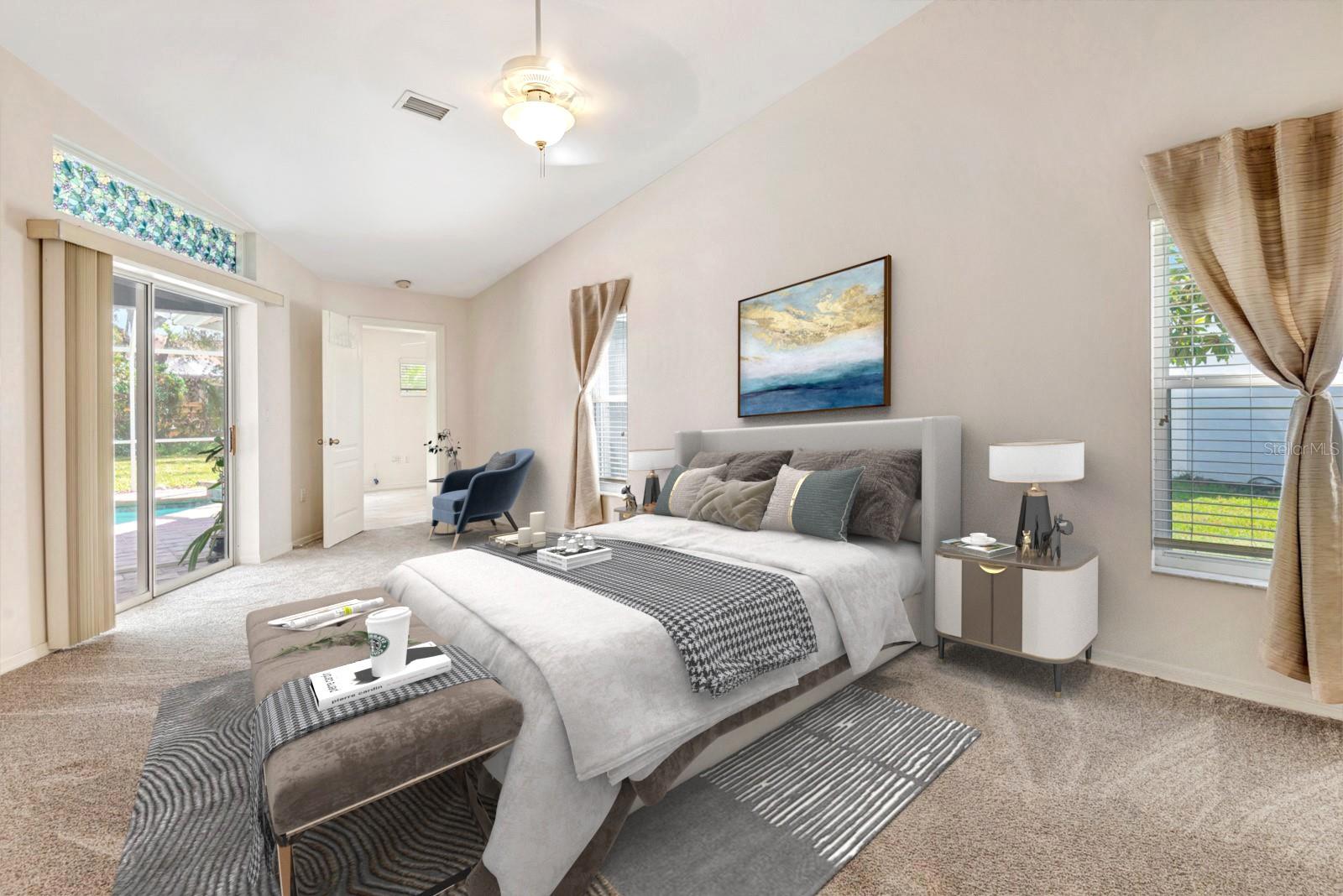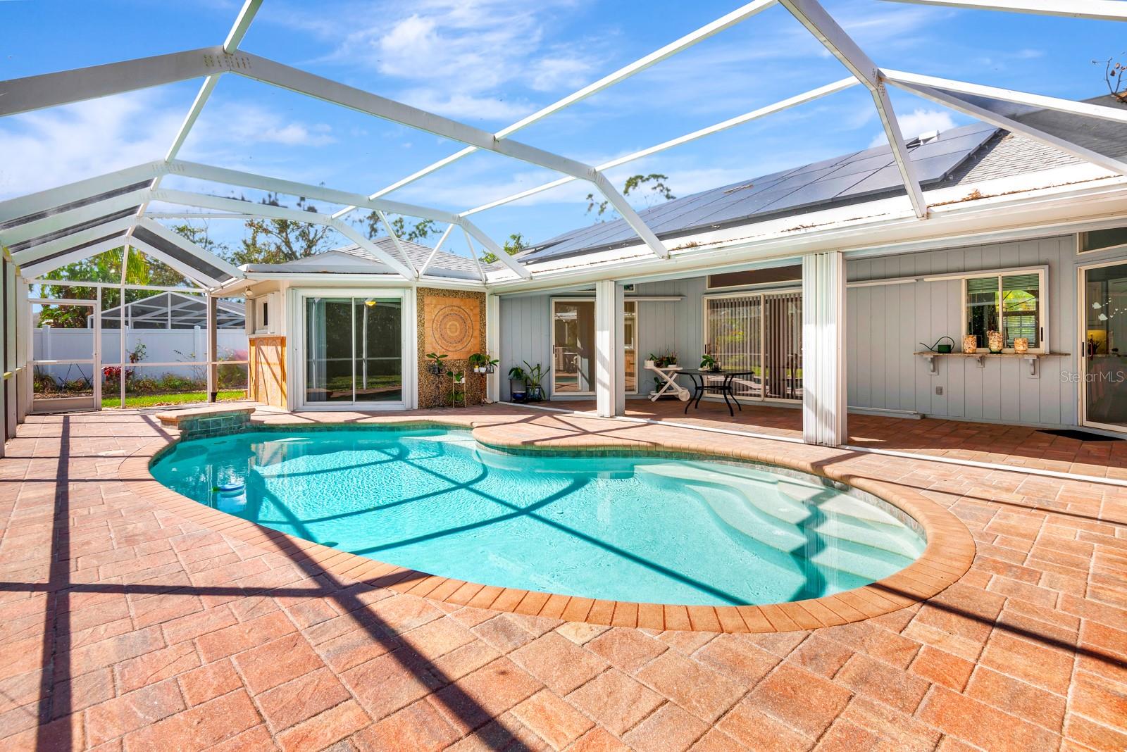 One or more photo(s) has been virtually staged. Your dream home awaits! This well-maintained, 4 Bedroom 2 Bath, Plus bonus den/office offers solar energy savings for the entire home, heated POOL and outdoor shower! This beautiful home nestled in the highly sought Greenfield community and Ashton Elementary School ranked top of all public schools in Florida! This Beautiful POOL home offers LOW HOA FEE optimal functionality, open floor plan with energy saving features for the best of Florida living! The split bedroom floor plan offers generous sized bedrooms, ample closet space and privacy for guests with a bath leading to lanai! The updated spacious Primary Suite offers private access to lanai, gorgeous updated bath with European glass shower door, flooring, elegant resurfaced cabinets, garden tub, and office or den also with private access to lanai! Living room and Dining rooms are spacious, perfect for entertaining and with sliding glass lanai doors lead to pool with spacious covered paved lanai. Numerous upgrades throughout the home, (2024) New Window Screens, (2023) Resurfaced Pool and Sealed deck, absolutely fabulous custom tiled lanai murals, (2022) New Water Heater, Solar Panels with a 25-year warranty that keeps your energy bill low year round! (2017) New Kitchen Appliances, (2020) Hurricane Garage door, Hurricane Panels that only take 6 minutes to activate, (2023). But wait there's more - (2016) - New Roof, freshly painted home, HVAC replaced (2017), updated bathroom and kitchen lighting! Whether you enjoy dinner parties or large cook-outs, the exquisite outdoor covered lanai is great for year-round or seasonal entertaining! The soothing heated pool with a waterfall and convenient outdoor shower has both hot and cold water! Minutes away to Ufer Park outstanding for fun events, picnics and more, local beaches, top-rated schools, venues, restaurants, parks, and more! Call today for your private tour!