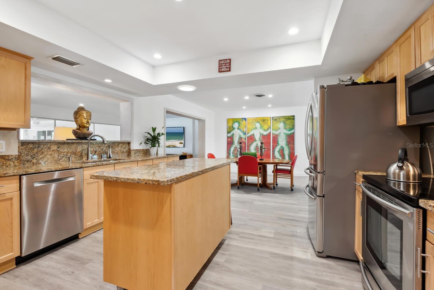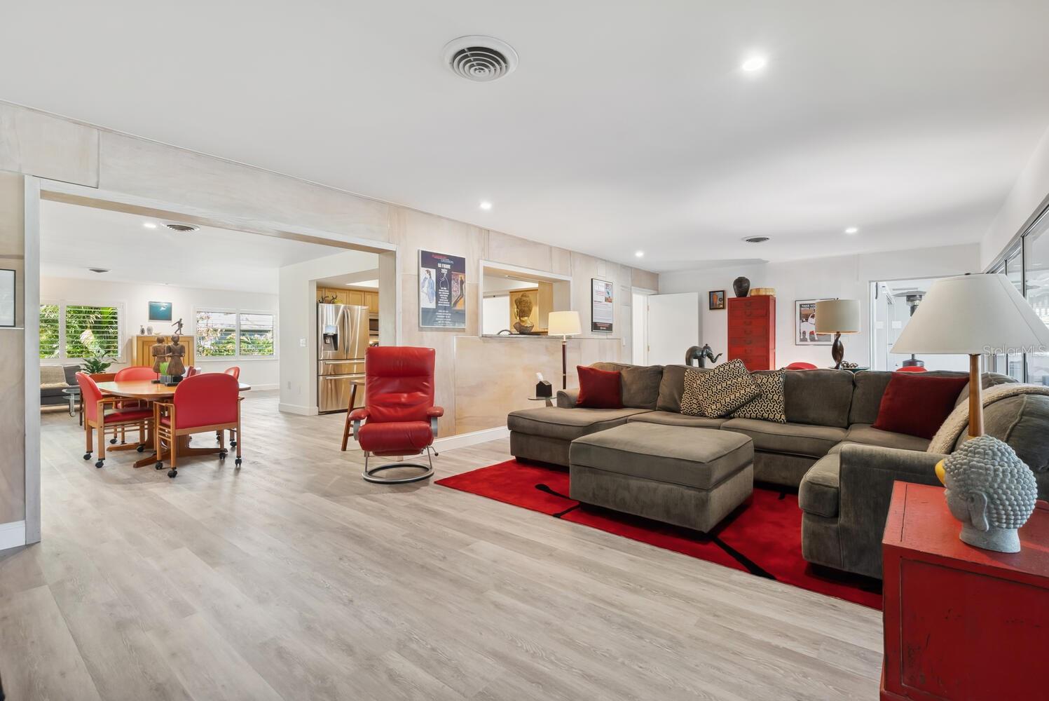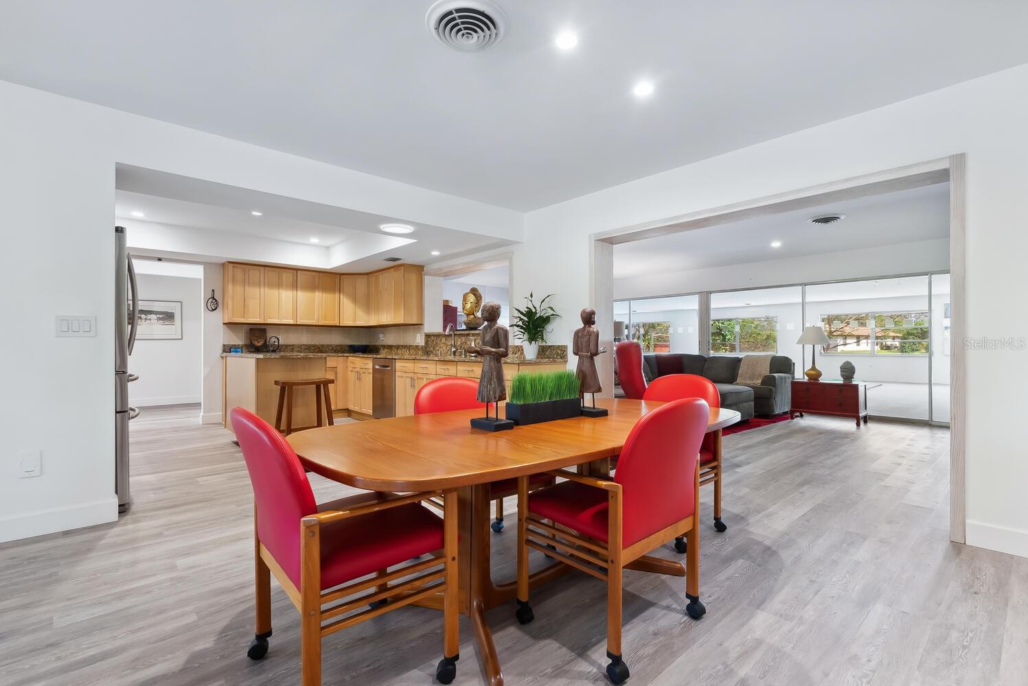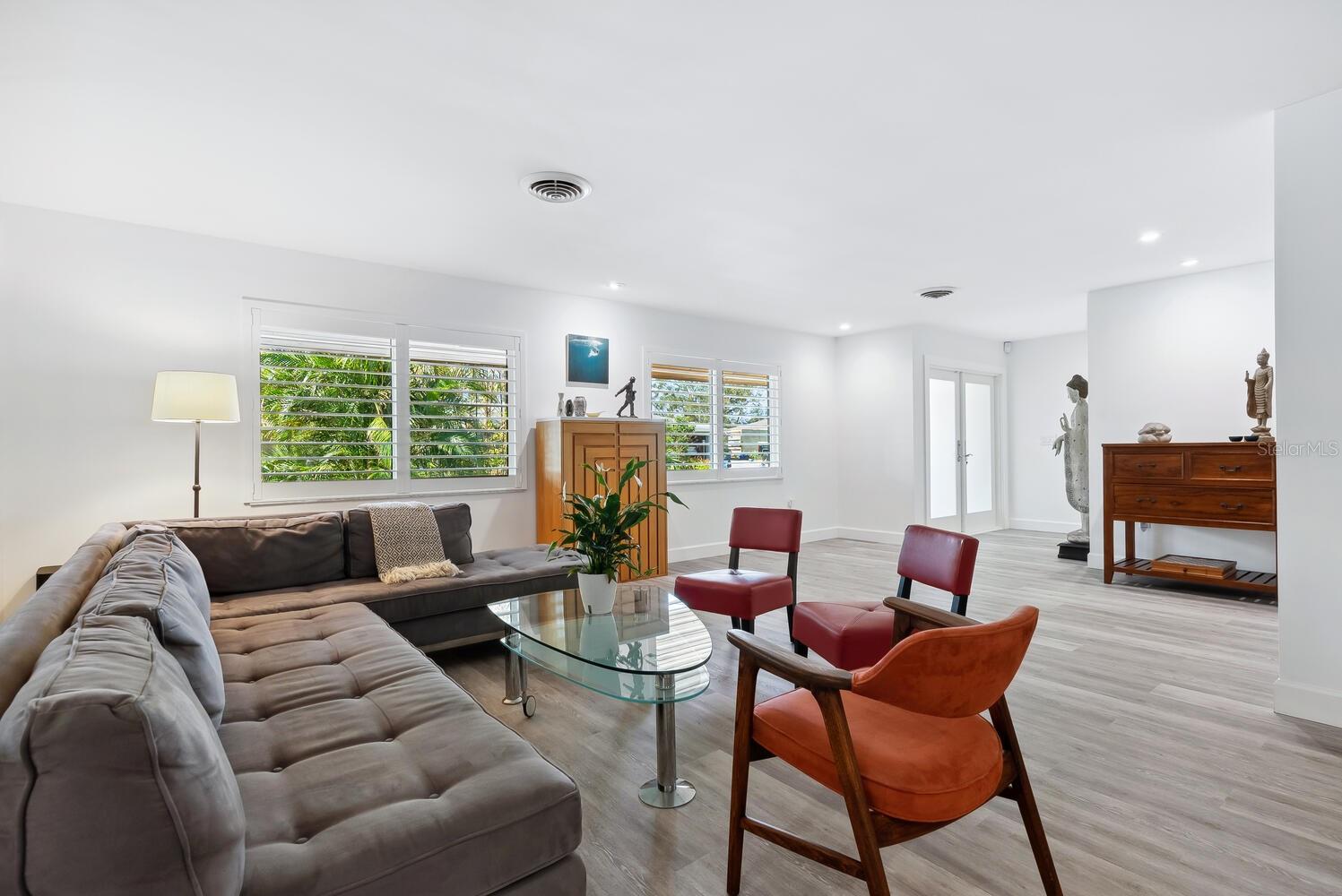 Unique opportunity to own a 3,300+ sq ft home, featuring spacious rooms throughout and full handicap accessibility. This beautifully maintained home is on one of Sarasota’s two inland islands, River Ridge Island, surrounded by the tranquil waters of Phillippi Creek in the heart of Sarasota. The well-designed layout offers endless possibilities for customization to suit your needs. Upon entering through the double doors, you'll find a generous living room that flows seamlessly into the comfortable and open dining room and updated kitchen. Granite countertops, tile backsplash, solid wood cabinetry and stainless-steel appliances provide a comfortable cooking and entertaining lifestyle. The spacious family room features a full wall of sliding glass doors that open to an interior 40,000 gallon 40’ x 20’ inground pool. The split bedroom floorplan offers flexibility with two large primary bedrooms, each with ensuite bathrooms, along with two additional large bedrooms and a third full bathroom. Enjoy outdoor living on the patio, plus a 6-person hot tub with Trex decking and surrounded by landscaping and a vinyl privacy fence yet providing a lovely Phillippi Creek view. Luxury vinyl plank flooring (2023) extends throughout much of the home, complemented by recessed lighting (2023). Additional updates include fresh interior paint (2023) and exterior paint (2020), connection to the county sewer (2022), ADT SunPro 23 solar panels with 25-year guarantee (2021), 2-zone HVAC system thermostats (2021) and 3-ton A/C system (2020), newer warrantied roof and gutters with leaf-guards, hurricane impact windows and doors, whole house water filtration system, re-pipe of all hot and cold-water supply, and so much more. Situated within the highly desirable Southside school district, this home offers optional membership to the South Gate Community Center for just $100. With world-renowned beaches, including Lido Beach, Siesta Key Beach, and Longboat Key Beach just minutes away, along with nearby golf courses, shopping, dining, and cultural activities, this location has it all. St. Armands Circle and downtown Sarasota are only a short drive away. Sarasota Memorial Hospital is conveniently located nearby. With ample space, thoughtful upgrades by the current owners, and a prime location, this property is all about flexibility and indoor/outdoor living within ten minutes of all our city has to offer.