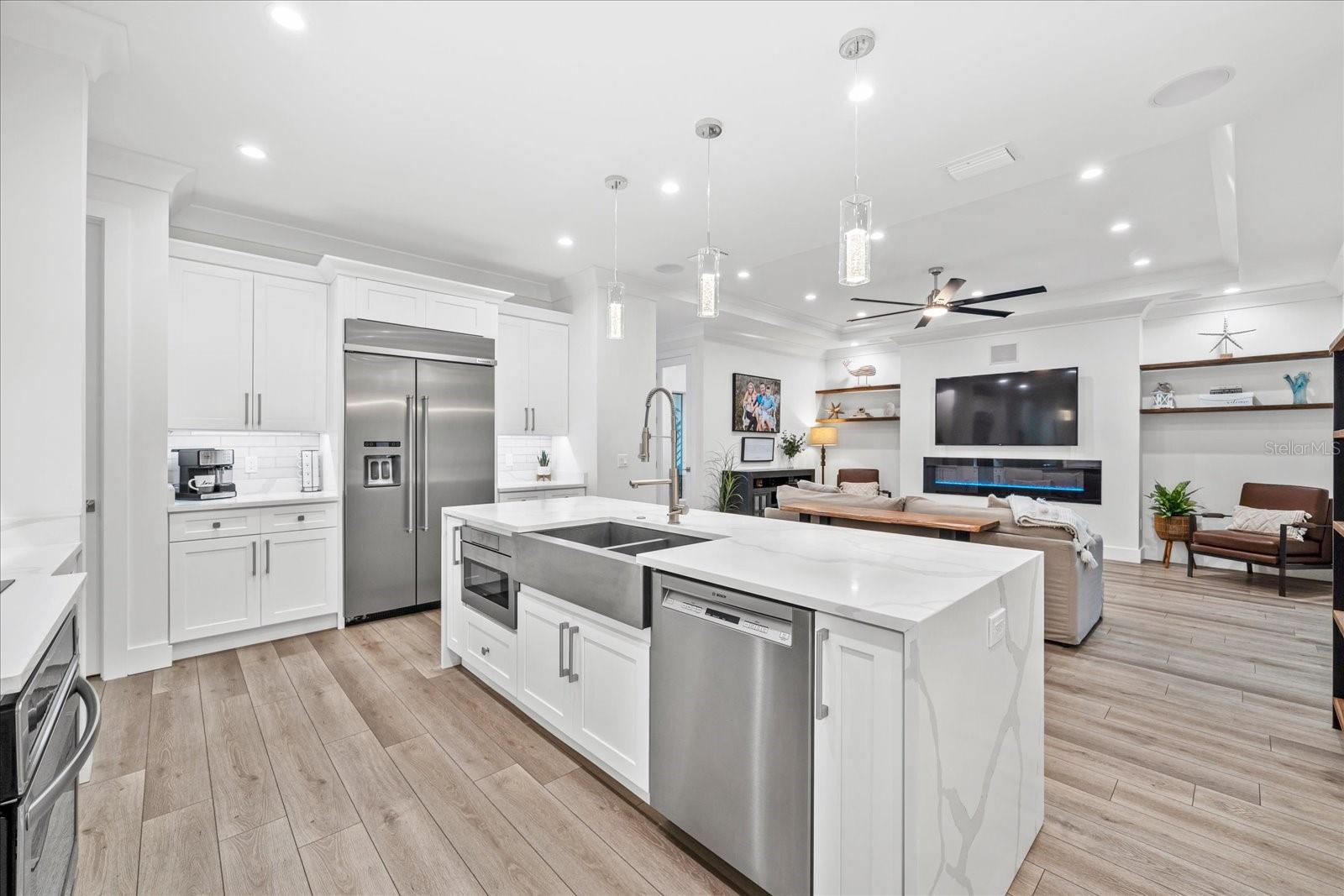 NEW, NEW,NEW… COMPLETED 2021! New Price! Hands down the absolute lowest priced, best value, new construction home on Siesta Key! Why consider spending money on a wet remediated home, or a 40-year-old renovated low ceiling, low lying home with non-impact glass and plumbing and electrical infrastructure issues? Why subject yourself to those older home realities that also come with astronomical maintenance and insurance costs, when you can act NOW by acquiring and investing in a stunning, modern, SAFE, new, West Indies 4 bedroom, 3 1/2 bath masterpiece with all the bells and whistles at a purchase price less than the cost of building new right now, not to mention the hassle of having to wait 2 plus years for completion! The highlights of this home are a two-car garage with a second story 350 sq ft storage area, total parking for 8 cars, an incredible entry area with 20 ft ceilings, an amazing separate office, and a wine room. Other highlights include an inviting heated, saltwater, lush tropical pool area complete with an outdoor kitchen and additional outdoor living spaces on either side of the house. The gorgeous primary suite is downstairs, while upstairs you will find an ensuite guest suite and two additional large bedrooms with a huge jack and jill bath. High and dry during recent storms is an understatement… no water even close to the house or garage. Homeowners insurance including hurricane coverage is only $4000/year and flood insurance is less than $1000/year! In addition, there are currently five new constructions builds on the street nearing completion that will all be listed in the north of $4 million dollar range. VALUE, VALUE, VALUE!