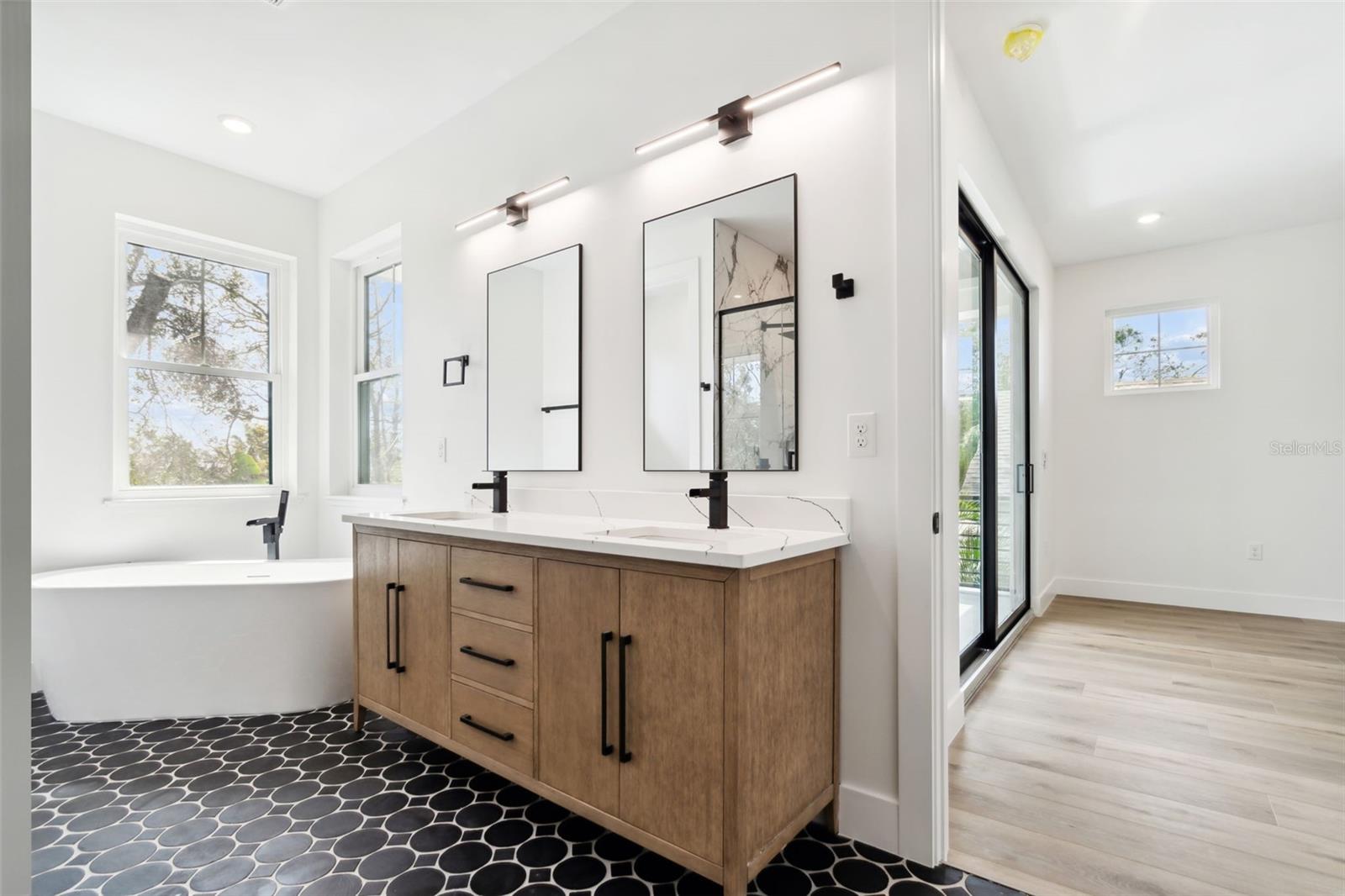 Some Photos Have Been Virtually Staged. HUGE PRICE REDUCTION ! Outstanding opportunity to own a brand-new luxury home in the heart of Sarasota. This Well-Constructed 4-bedroom, 4 full bath custom built 2 story pool home boast 3628 sq ft of living area plus a 2-car garage with epoxy finish. From the paver driveway and walkway with wood ceiling to the elegant hurricane rated Impact glass front door you will feel the quality immediately. The luxury vinyl flooring is carried thru the entire main living area and all 4 baths have upgraded ceramic tile. The gourmet kitchen is very open to all areas of the bottom floor and features quartz countertop, solid wood cabinets with soft closing drawers, high-end Thermador SS appliances including oven, microwave, large refrigerator and gas cooktop on separate kitchen island including custom hood and sitting area also featuring a large quartz countertop. All windows and doors are hurricane rated Impact glass for additional strength and safety. The dining room/living room have high soaring ceilings that adds a feel of spaciousness and there is also a large family room that overlooks the pool and paver deck area. The 2nd bedroom is on the 1st floor along with a guest/pool bath with décorative fixtures and a large shower. A generous laundry room with washer/dryer, upper and lower cabinets with sink is conveniently located adjacent to the garage and has access from the garage and from the main living area. There is storage space under the staircase and includes a tankless water heater. The stylish stair rails lead to a very efficient 2nd story loft area with 2 in-floor electrical outlets and overlooks the dining/living area. The large primary bedroom has a private covered balcony with wood ceiling and overlooks the back yard pool area. The primary bath includes quartz countertop with double sinks, a large glass shower and a free-standing soaking tub and decorative fixtures. Bedroom #3 includes an en-suite bathroom with solid countertop and shower with floor to ceiling tile. Bedroom #4 has private access to bath #4 which includes solid surface counter and tub with floor to ceiling tile. Outside the home is fully fenced with high quality vinyl for privacy and landscaped with large tropical trees. There is a large brick paver courtyard area on the side of the home accessed from the 4 sliding glass doors near the kitchen and includes pre-plumbed for water, gas and electric as well as a pass-thru window from the kitchen. The private backyard is highlighted by the open-air saltwater pool, paver decking and lush landscaping. The exceptional location of the home gives great access to all services including shopping, restaurants, Sarasota Memorial hospital, Downtown Sarasota, Siesta Key and Lido world famous beaches and much more. Call today for your private showing.