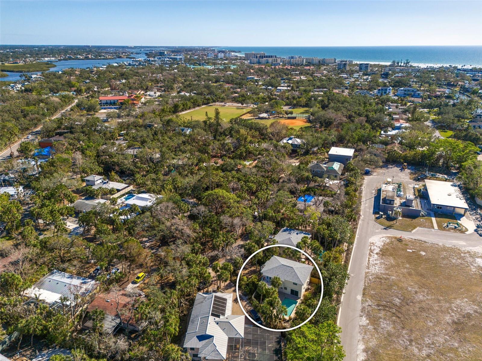 Adorable home less than a mile to Beautiful Siesta Key Beach! Current owner has been in the home for 50 years and loves the location and the home. Ground floor remodeled with laundry, huge bedroom, living area, full bathroom and also an efficiency. Second floor has full kitchen 2 beds 1 bath and a large open plan living area. Roof 2021, A/C 2024, Upstairs hurricane windows 2024, Water Heater 2018, Garage door 2017, Must see to appreciate. NO rear neighbors!!! Easy walk to Glebe Park. Neighborhood has a pond with a fountain in the middle of the neighborhood circle with sitting areas around it. Little community with 37 homesites all on a county designated canopy road. New homes are preparing to be built in this little hidden gem of a community. Has never flooded prior. Damage was minor. All new flooring and drywall, paint, doors and trim and bathroom remodel downstairs. Floorplan attached in photos