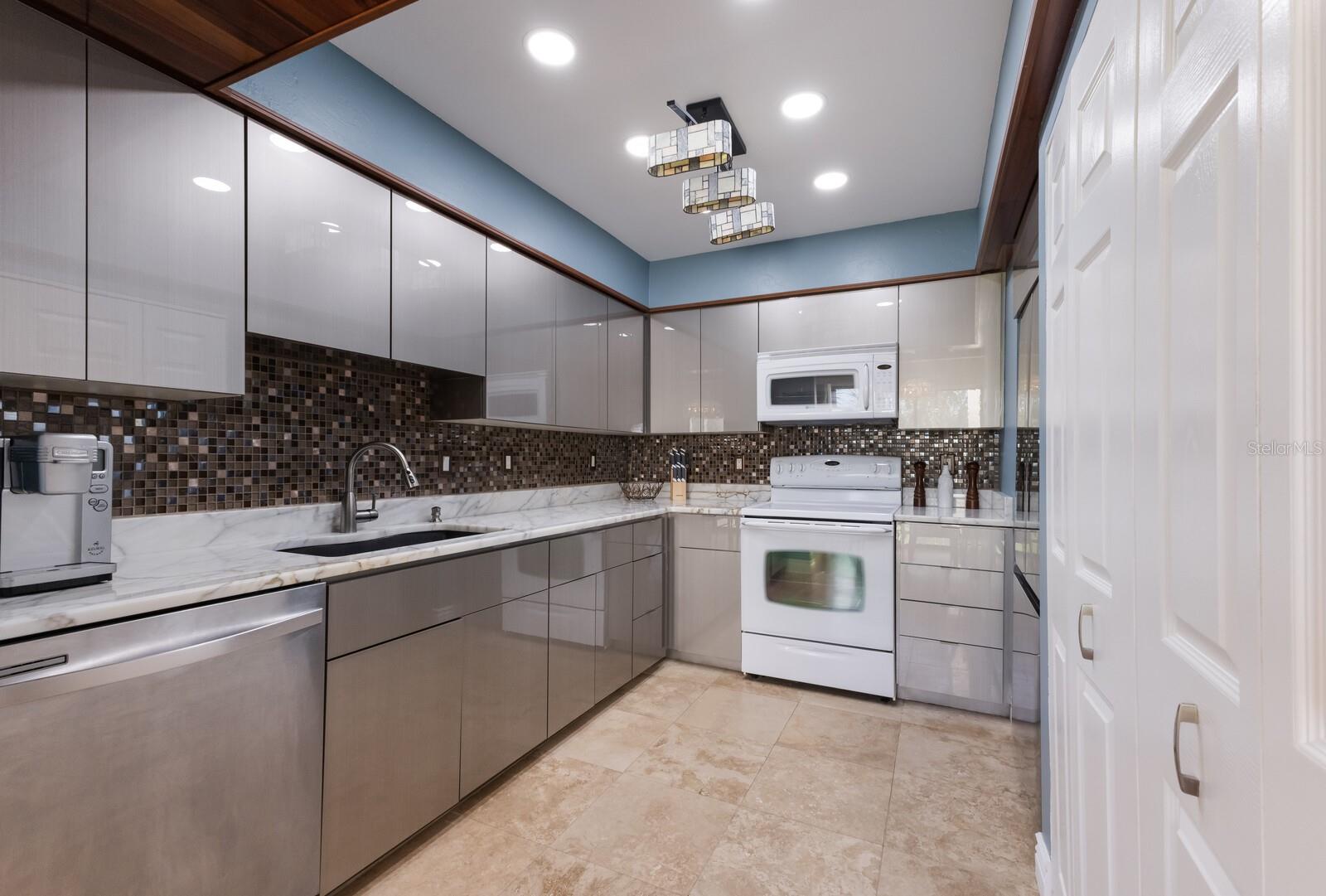 Welcome to Your Serene Oasis in Heromere II! Step into this immaculately maintained private condominium and discover the perfect blend of luxury and comfort. From the moment you enter, you'll be captivated by the beautiful, open floor plan featuring elegant flooring and spacious rooms filled with natural light. The expansive living space flows seamlessly into an oversized lanai, where you can unwind while enjoying serene views, creating an actual indoor-outdoor living experience. The thoughtfully designed layout includes split bedrooms, privacy and comfort, and walk-in closets providing ample storage. The kitchen, remodeled in 2021, is a chef's dream. It boasts high-quality cabinetry, ideal for any home cook, and features a stunning new marble countertop that adds elegance and durability. With top-of-the-line appliances, including a brand-new refrigerator and a large, single-basin sink for effortless cleanup, this kitchen is as functional as it is beautiful. The convenient location of the washer and dryer within the kitchen makes multitasking a breeze. Located in the coveted Meadows community, this condo offers resort-style amenities. Whether you relax by the Olympic-sized pool, tee off on one of the three golf courses, play tennis, or dine at the on-site restaurant and lounge, you'll always find something to enjoy. For those who seek an active lifestyle, the optional membership packages provide access to a fitness center and more. Ideally located just 15 minutes from downtown Sarasota, with easy access to the Nathan Benderson Rowing Facility, Whole Foods Market, and University Town Center, it's only a quick 15-minute drive to Lido Beach. This provides a perfect mix of urban conveniences and coastal relaxation. The condo provides the best tranquility and accessibility! Don't miss the opportunity to call this stunning condo in Heromere II your home!