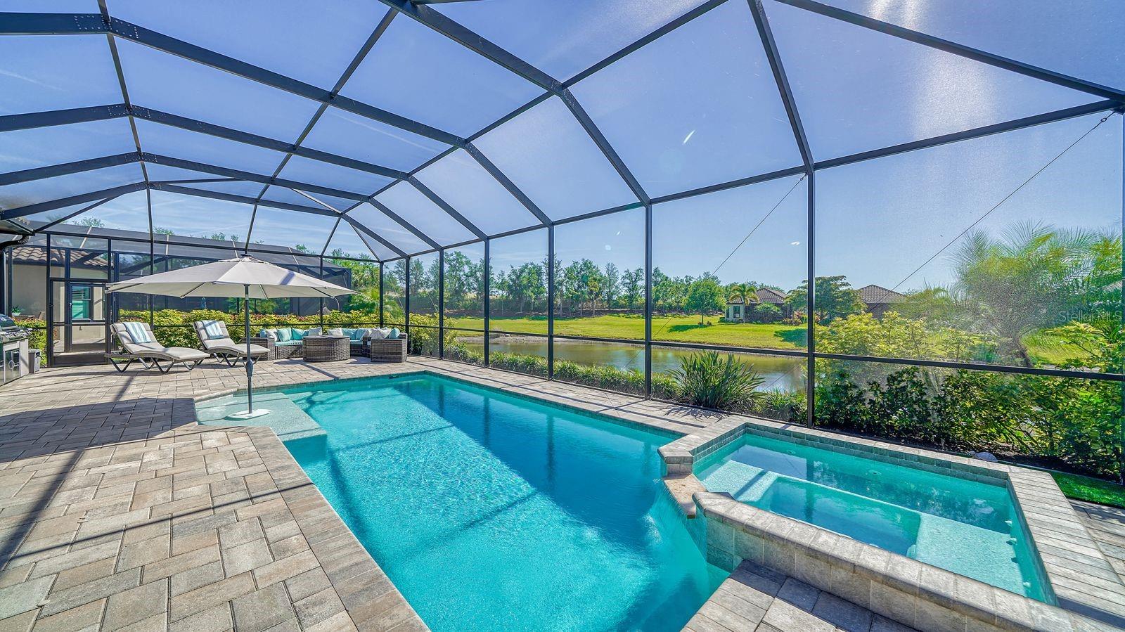 Located 3.5 miles from the fine sandy beaches of world-famous Siesta Key, this impeccably maintained home shows pride of ownership. Hardly lived in, with open floorplan and a neutral palette, the home features three bedrooms, each with ensuite bath, a powder room, living room, dining room and breakfast area, as well as a family room and large kitchen with two islands. For the outdoor lover, the property offers a spacious outdoor area, with huge screened-in lanai, with pool, hot tub and outdoor kitchen. Located within the Cobblestone on Palmer Ranch community, the property is perfect for those seeking a resort lifestyle living just a short drive from gorgeous beaches. Quick Possession available and contents are negotiable.