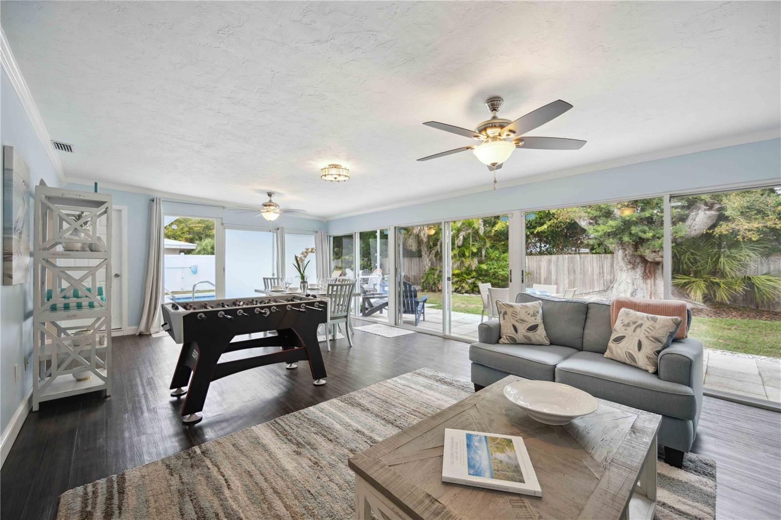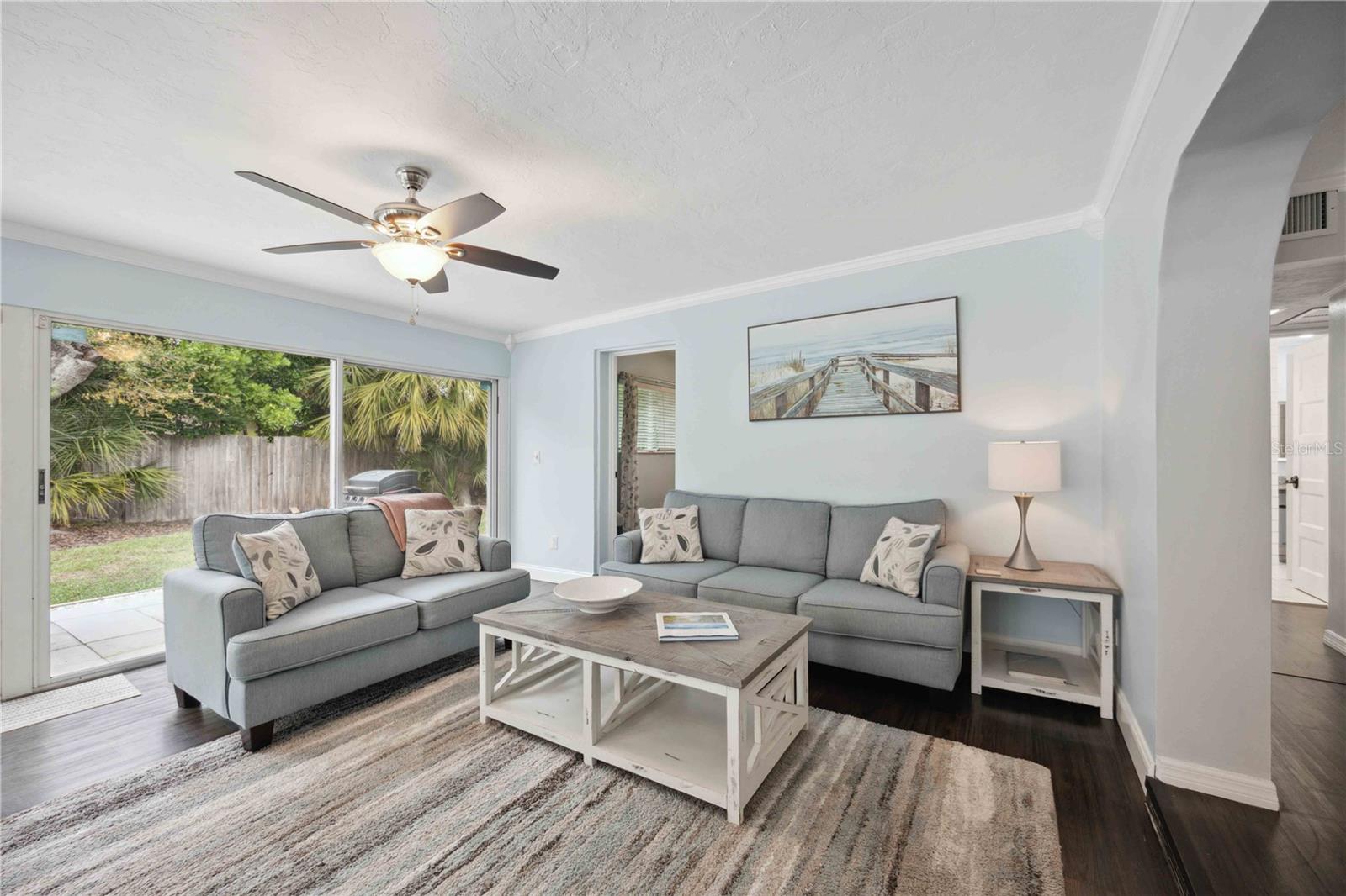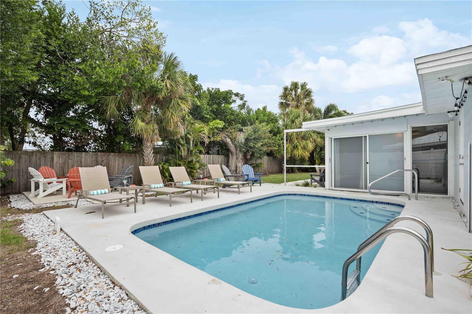 Welcome to Ocean Sky! This beautifully renovated 3 bedroom, 2 bathroom property is located in the family-friendly community of Arlington Park - the heart of Sarasota. Enjoy your very own heated private pool and gather around the fire-pit for cozy evenings under the stars. Distance to Siesta Key Beach: 5.9 miles, downtown Sarasota: 2.9 miles, Sarasota Memorial Hospital:1 mile, St. Armand Cir: 5.4 miles, Southside Elementary: 1 mile. The open-concept layout combines two spacious living rooms, providing ample space for relaxation and entertainment. 2022 Roof and HVAC & ductwork, brand new pool heater, and pool resurfacing was done in 2022. The garage was converted into a primary suite in 2022, adding over 350 sqft of living space. Savvy investors: If you are looking for cash flow, this is the one; located within city limits, this property is an optimal vacation rental. Clematis St. has several multi-million-dollar new construction homes that boost the property value of this gem. The possibilities are limitless on this .24 acre lot. Financials are available upon request.
