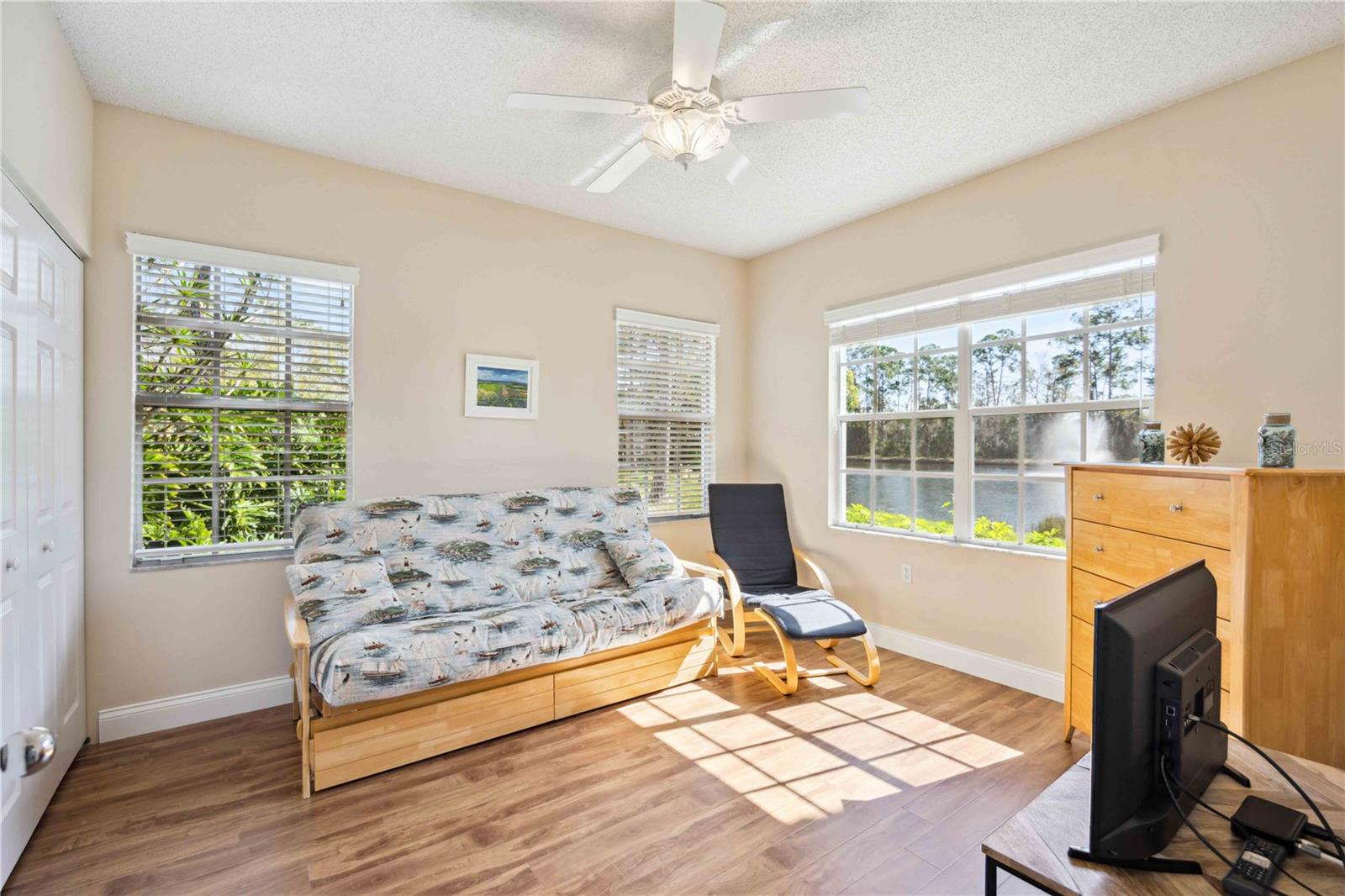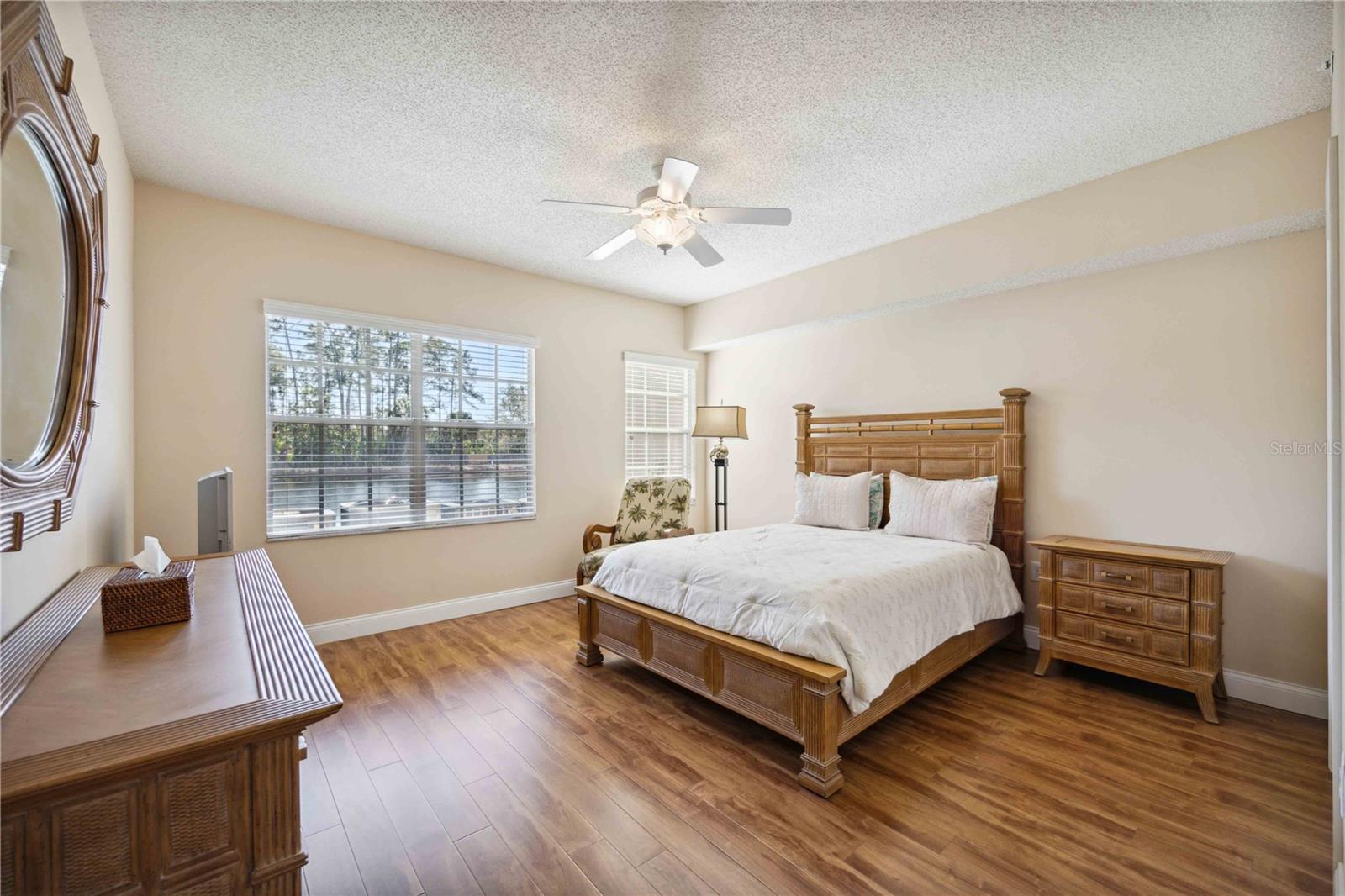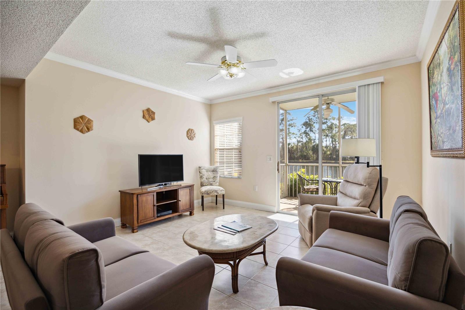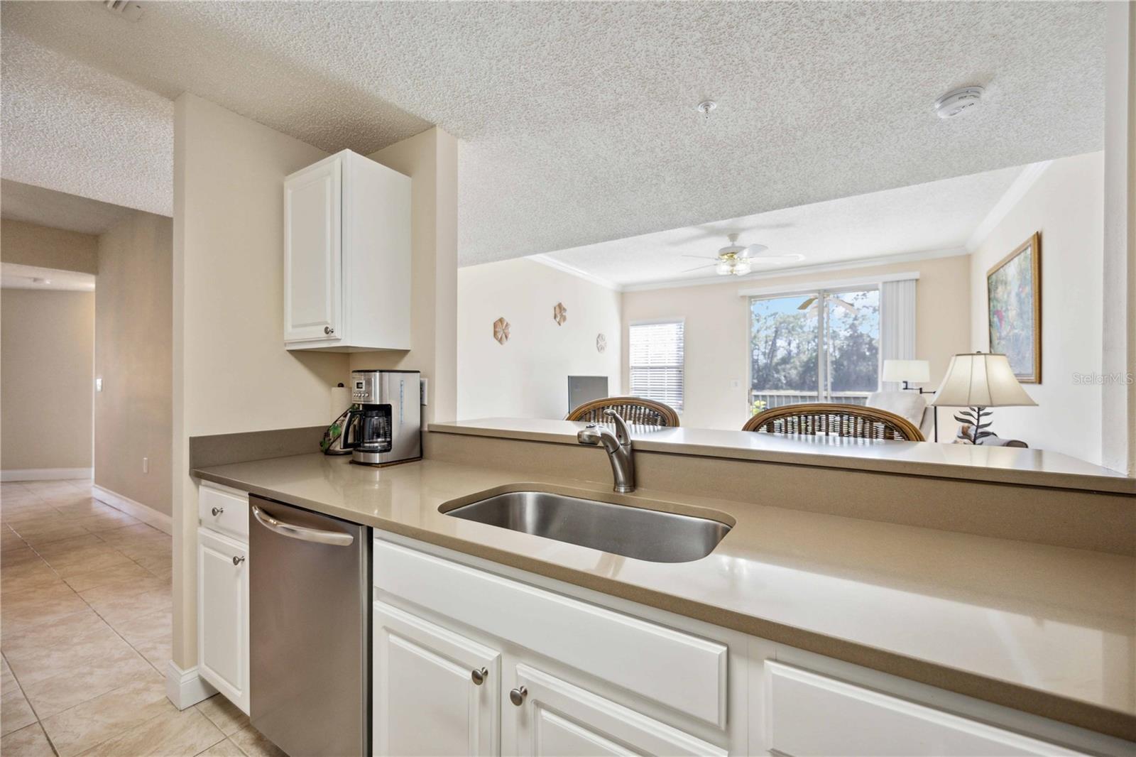 *Motivated seller has now reduced price 20k* FULLY UPDATED and Move in ready, *RARELY available corner unit, located *ALL on the first floor, offers three bedrooms and two bathrooms, with *NO stairs! It also includes an attached single car garage for added convenience. *Larger pets welcome and * Conventional financing available* Every room in the home provides the most ideal view of the pond, complete with a fountain, and the preserve beyond it, ensuring a private and serene environment for nature lovers and bird watchers. As you enter you will notice the entire unit has been fully updated with upgraded baseboards and fresh neutral paint. Off the foyer you will find a split bedroom floor plan leading to two full bedrooms and a shared bathroom with recently FULLY updated walk-in shower and vanity with quartz countertops. Just ahead you will find an airy open layout with the formal dining room on your right and the fully equipped kitchen that has been upgraded with stainless steel appliances, quartz countertops with convenient breakfast bar that overlooks the living area, and includes a built-in pantry and desk work area! Tucked away from it all you will find the primary bedroom which includes pristine views of the pond, a massive walk-in closet and attached en-suite bathroom with shower/tub combo & updated vanity with quartz countertops. Additionally, there is a spacious indoor laundry room, and the unit is completely carpet-free, with high-quality wood laminate & tile flooring throughout. Off the living room is the lovely, screened lanai where you can enjoy privacy and dining al-fresco as you take in the natural beauty surrounding this incredible community. For added peace of mind the air conditioner is only 3 years new, washer and dryer are brand new, and all kitchen appliances are about 5 years new. *Brand NEW tile roof with NO assessment! The Las Palmas community is gated and offers resort-style amenities, including 2 pools and a spa, tennis courts (including pickle-ball lines with an active group) 2 fitness facilities, one with a sauna, RV and boat parking, and direct access to Nathan Benderson Park with walking and biking access galore. The location is just a few minutes from University Town Center (UTC) Whole Foods, downtown Sarasota rich with culture and arts, and the popular sandy beaches of #1 rated Siesta Key and Lido key are under 30 minutes away! Condo can be sold turnkey furnished on a separate bill of sale. You do NOT want to miss out on this rare opportunity, call today to learn more!