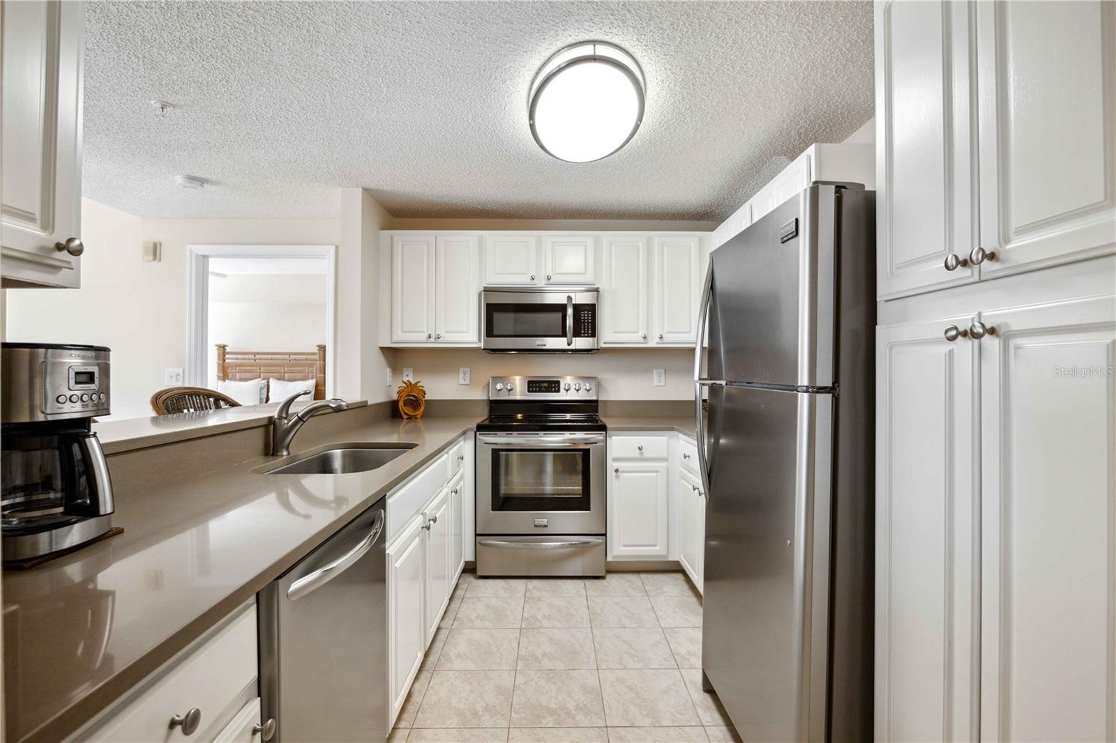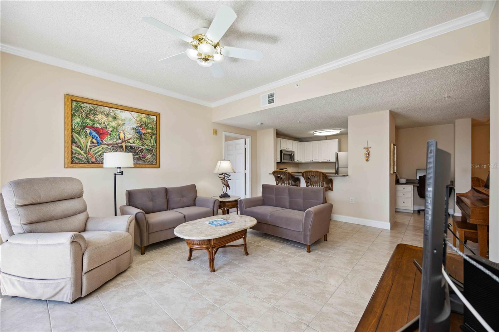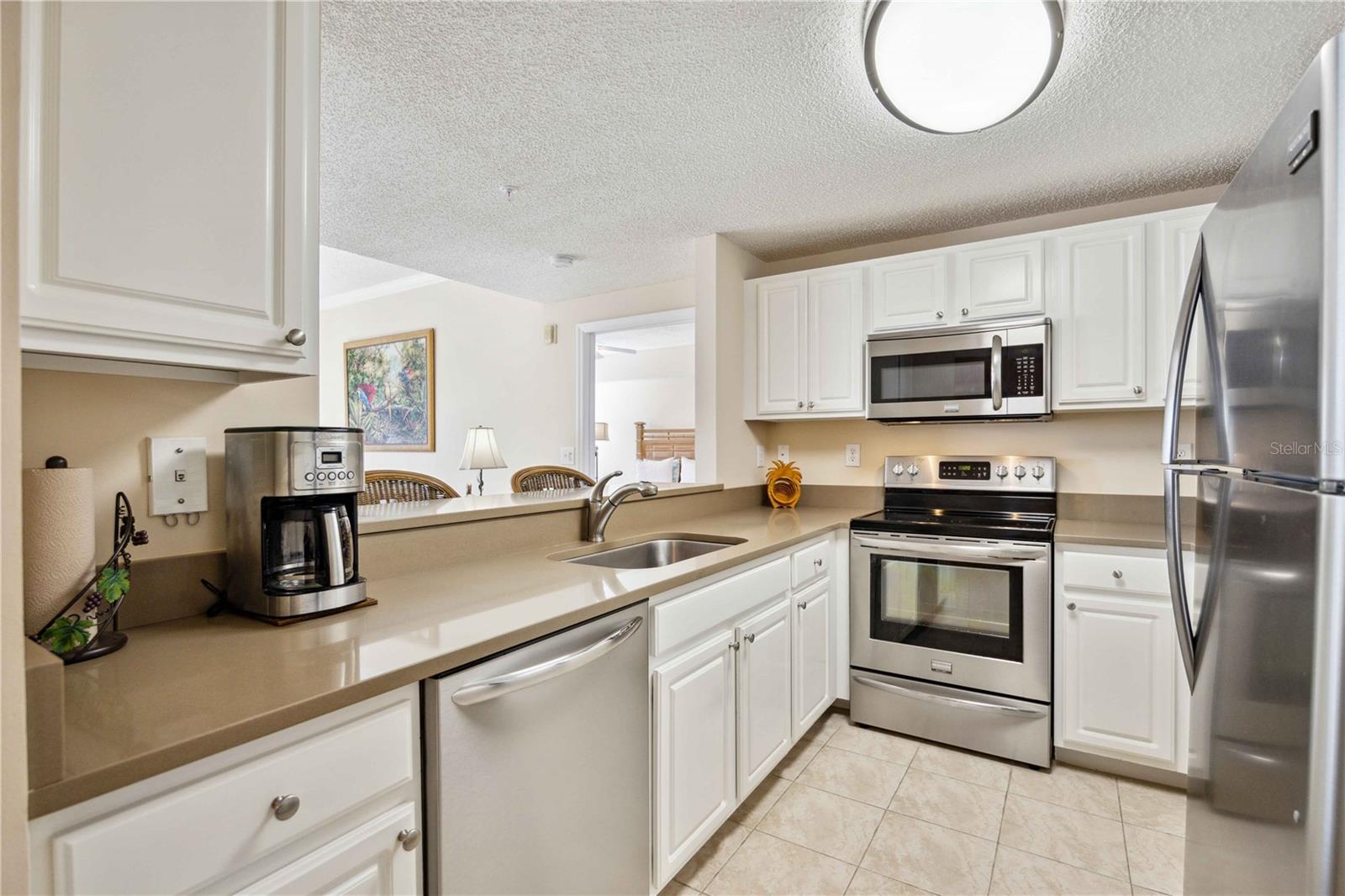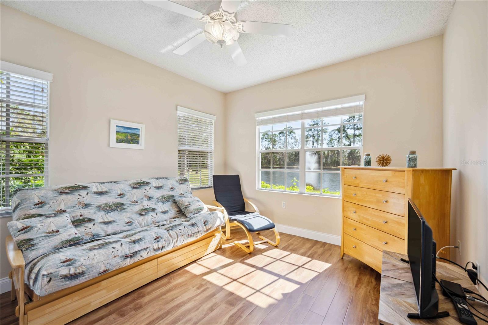 *Motivated seller has now reduced price 20k* FULLY UPDATED and Move in ready, *RARELY available corner unit, located *ALL on the first floor, offers three bedrooms and two bathrooms, with *NO stairs! It also includes an attached single car garage for added convenience. *Larger pets welcome and * Conventional financing available* Every room in the home provides the most ideal view of the pond, complete with a fountain, and the preserve beyond it, ensuring a private and serene environment for nature lovers and bird watchers. As you enter you will notice the entire unit has been fully updated with upgraded baseboards and fresh neutral paint. Off the foyer you will find a split bedroom floor plan leading to two full bedrooms and a shared bathroom with recently FULLY updated walk-in shower and vanity with quartz countertops. Just ahead you will find an airy open layout with the formal dining room on your right and the fully equipped kitchen that has been upgraded with stainless steel appliances, quartz countertops with convenient breakfast bar that overlooks the living area, and includes a built-in pantry and desk work area! Tucked away from it all you will find the primary bedroom which includes pristine views of the pond, a massive walk-in closet and attached en-suite bathroom with shower/tub combo & updated vanity with quartz countertops. Additionally, there is a spacious indoor laundry room, and the unit is completely carpet-free, with high-quality wood laminate & tile flooring throughout. Off the living room is the lovely, screened lanai where you can enjoy privacy and dining al-fresco as you take in the natural beauty surrounding this incredible community. For added peace of mind the air conditioner is only 3 years new, washer and dryer are brand new, and all kitchen appliances are about 5 years new. *Brand NEW tile roof with NO assessment! The Las Palmas community is gated and offers resort-style amenities, including 2 pools and a spa, tennis courts (including pickle-ball lines with an active group) 2 fitness facilities, one with a sauna, RV and boat parking, and direct access to Nathan Benderson Park with walking and biking access galore. The location is just a few minutes from University Town Center (UTC) Whole Foods, downtown Sarasota rich with culture and arts, and the popular sandy beaches of #1 rated Siesta Key and Lido key are under 30 minutes away! Condo can be sold turnkey furnished on a separate bill of sale. You do NOT want to miss out on this rare opportunity, call today to learn more!