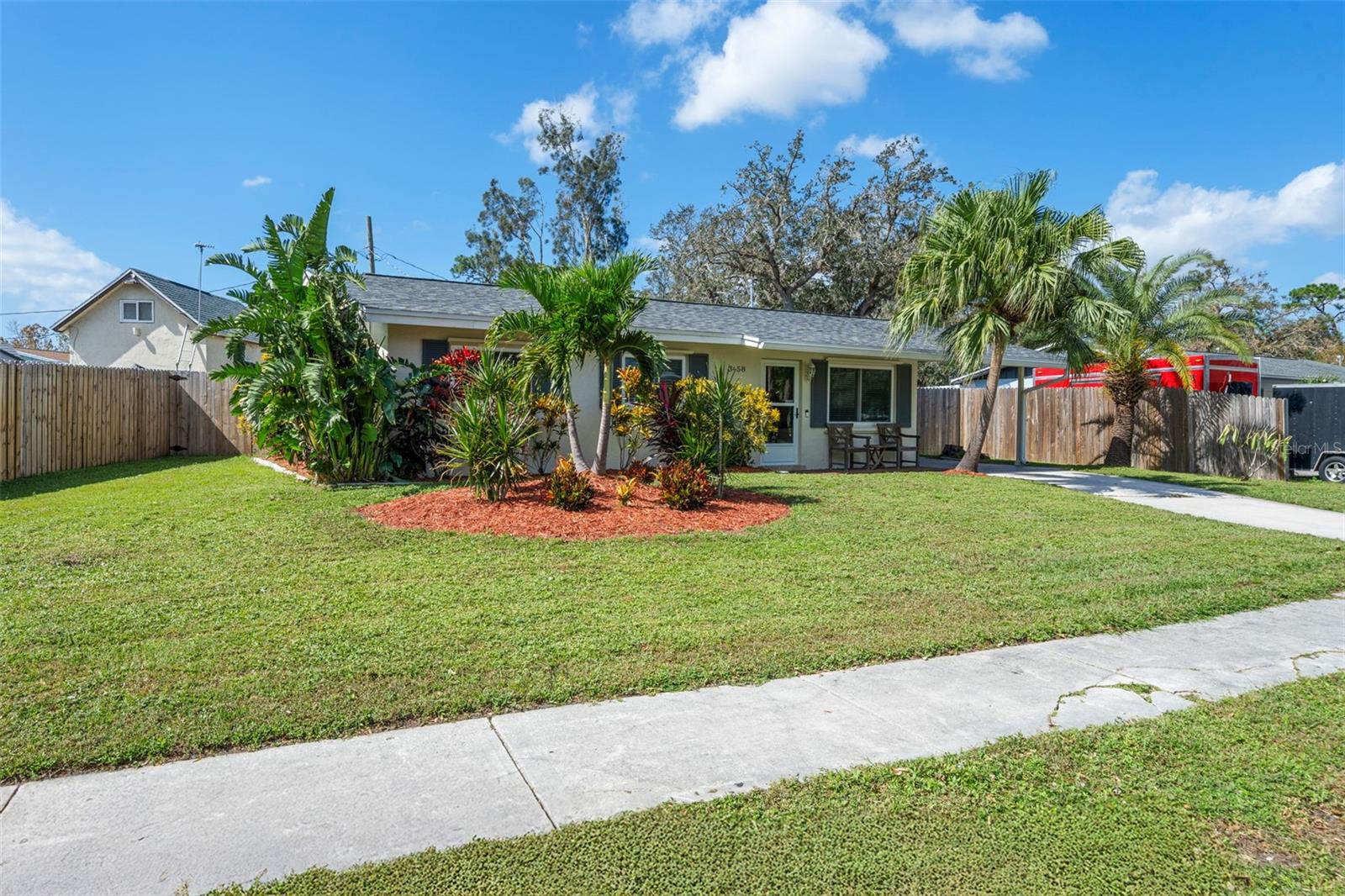 Beautiful starter home or investment property centrally located in the heart of Sarasota, 6 miles from Siesta Key Beach and 5 miles from the downtown area. Great short or long-term rental potential. NO HOA or deed restrictions! NEW ROOF REPLACEMENT 2022. New bathroom vanity. New quartz countertops. Well-manicured landscaping. 2 garden plots in the backyard. Great outdoor area for grilling, gatherings, etc. In ground fire-pit built into the pavers. Shed in the backyard can be utilized as a top notch mancave (shed has electricity) or plenty of extra storage on both sides. Plenty of natural lighting throughout the house. Additional Florida room with French door entry provides a nice space for a family room, office, reading room, etc. Fully gated property provides privacy and safety. Minutes away from plenty of shopping & restaurants. Come check out this slice of Sarasota living!