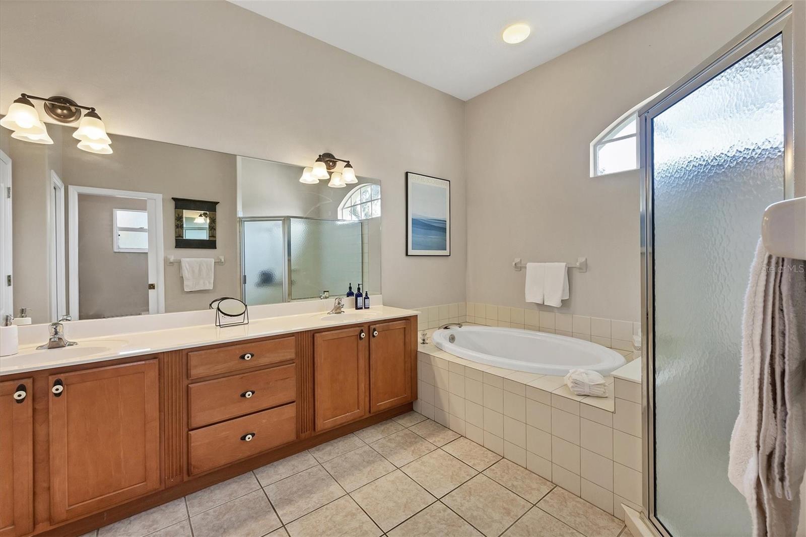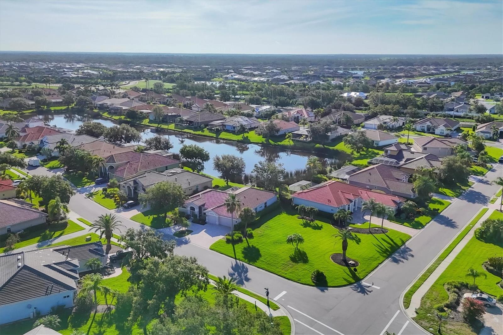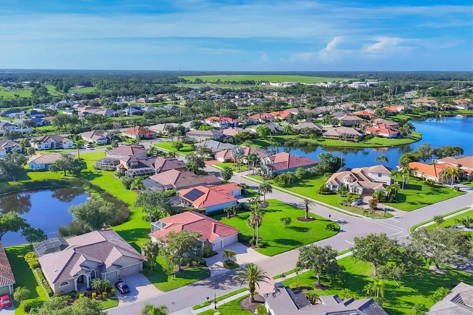 Come live the Florida lifestyle in this split plan, lakefront home with a THREE CAR GARAGE in the desirable gated community of Laurel Lakes. It’s easy living in this ONE LEVEL floor plan with HIGH CEILINGS and MULTIPLE SETS OF 8’ POCKET SLIDERS to the lanai. Tranquil water views visible from all main living areas including the primary bedroom as well as the back guest bedroom. BRAND NEW TILE ROOF INSTALLED NOV. 2024. Pull down attic access in garage for extra storage and a three car garage and paver circular driveway provide ample space for cars. HURRICANE RATED GARAGE DOORS and SHUTTERS for peace of mind and lower insurance costs. An expansive corner lot adds to the privacy and the mature landscaping adds curb appeal. Laurel Lakes is a well-maintained community offering low HOA fees, including a clubhouse with a heated pool, fitness center, pickleball/tennis courts and lots of planned social activities! Located close to everything wonderful Sarasota has to offer. Only 15-20 minutes to Downtown Sarasota, 15 min to University Town Center and Waterside, 5-10 min to hiking in beautiful Celery Fields and Rothenbach park and 25-30 minutes to Lido or Siesta Key beach! Come check it out and make this your new place to call home!