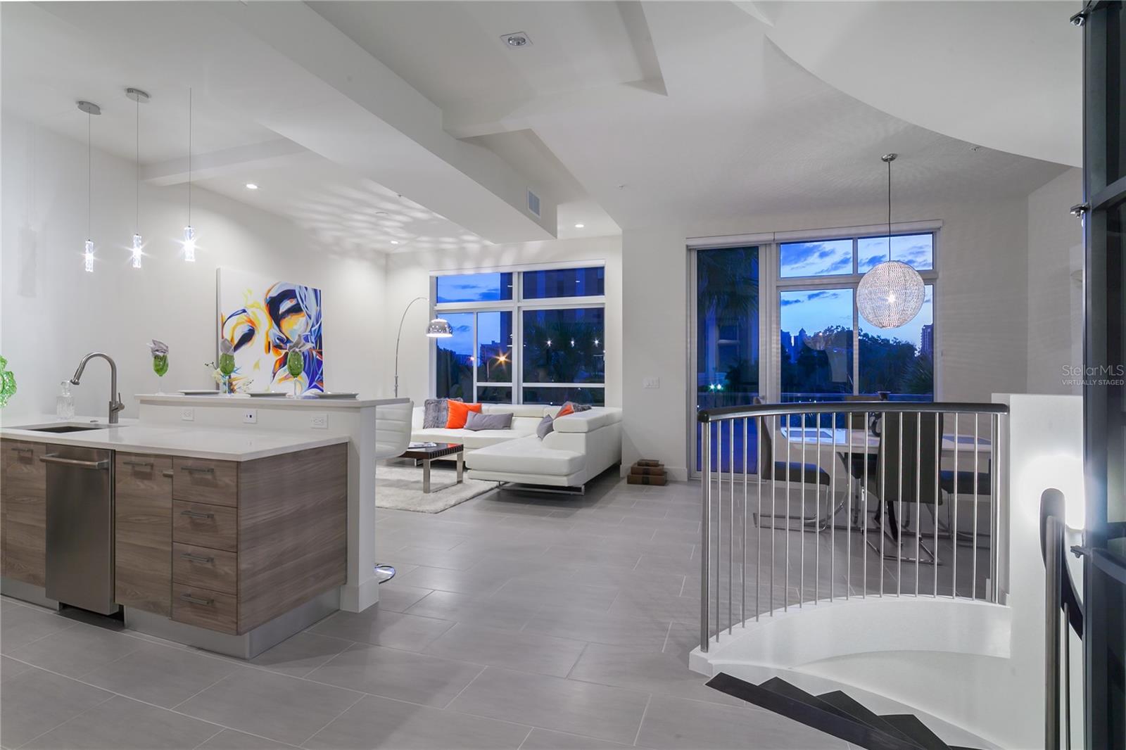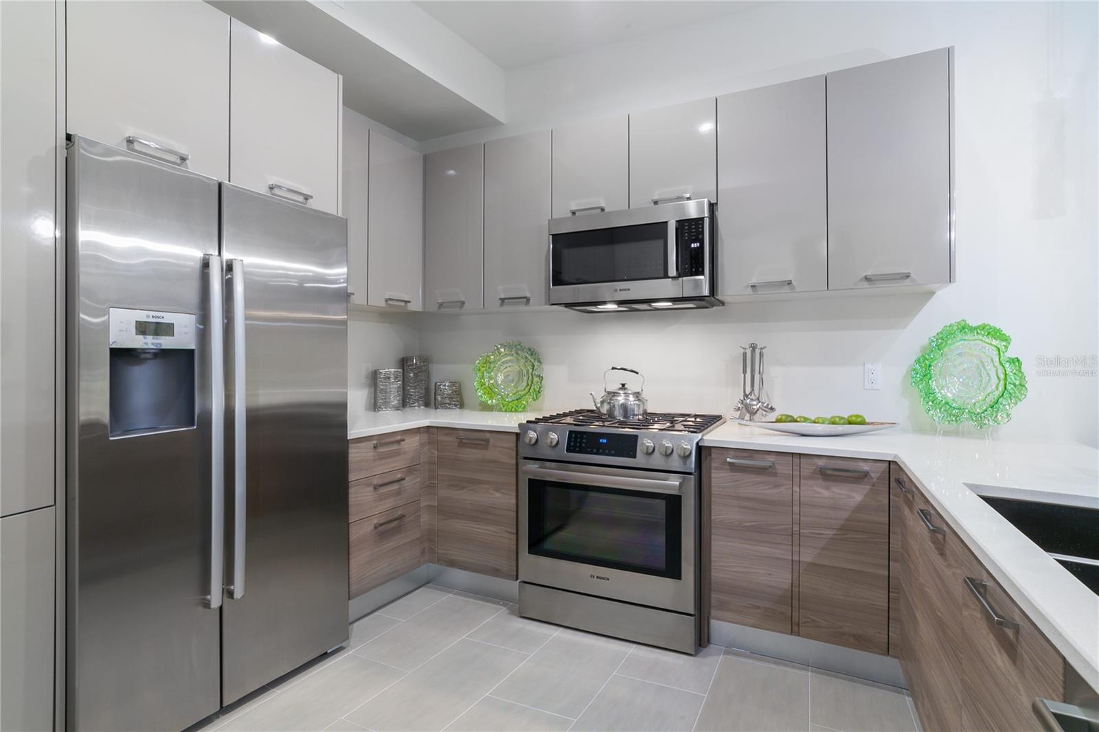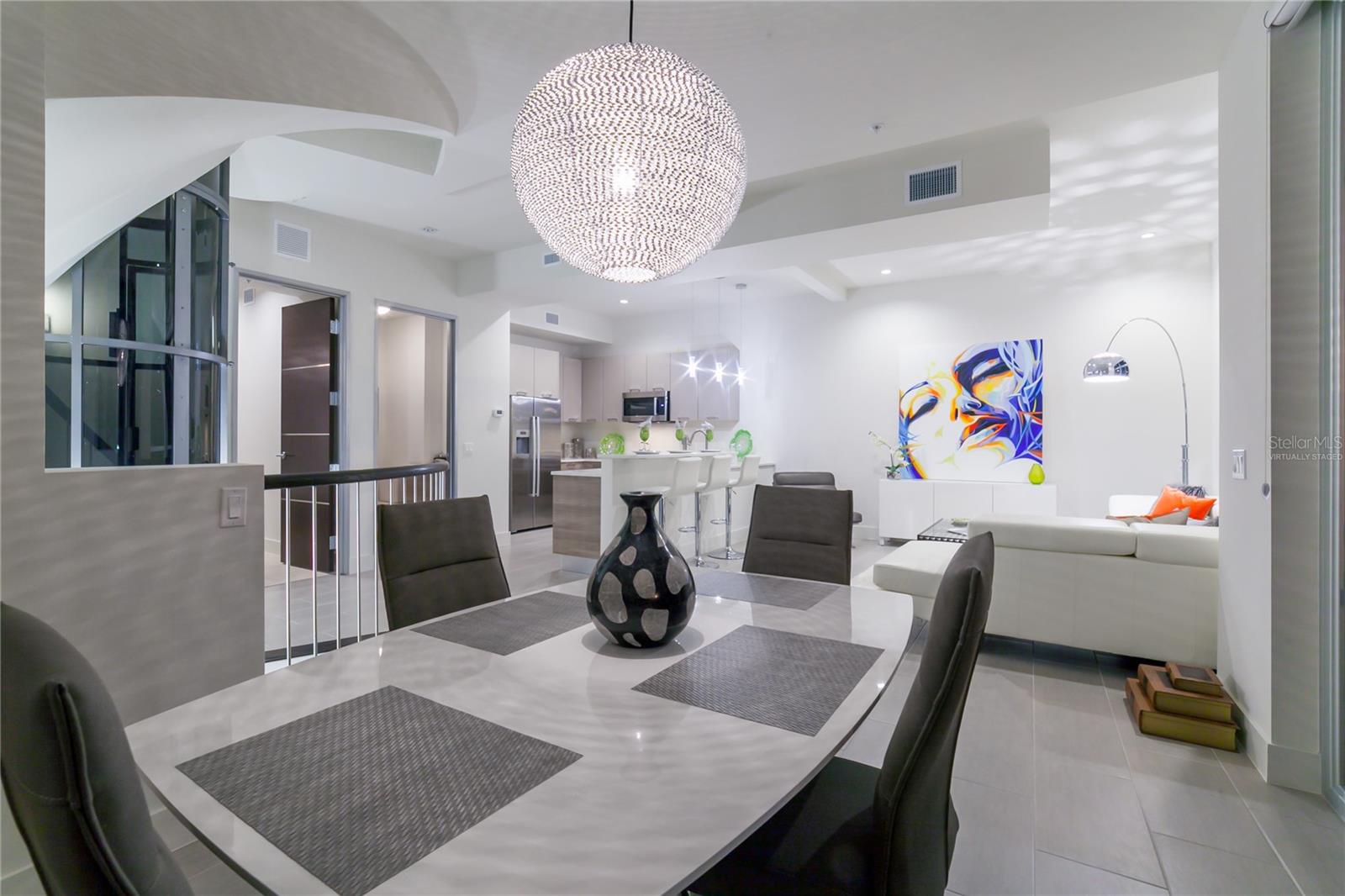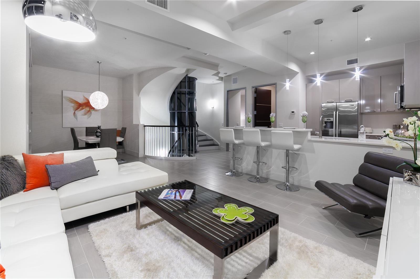 One or more photos have been virtually staged. Cabinet finishes and floor tile may vary. Live on three levels in beautiful downtown Sarasota just near everything the city has to offer. This ultra-contemporary townhouse, which lives like a single-family home, is ideal for relaxing or entertaining, whether you are a full-time or seasonal resident. This unique residence has a private elevator, two-car garage and boasts three bedrooms, 3.5 baths along with a bonus room. Offering stylish urban living and upgraded features throughout, the townhouse includes Miami-Dade impact-rated windows and doors, luxurious Lube Italian kitchen and bath cabinetry, Bosch appliances with natural gas cooktop, Caesarstone quartz countertops and German Hansgrohe plumbing fixtures. You will also discover 8-foot solid core, rosewood-style interior doors, volume ceilings, a stylish freestanding soaking tub, spacious showers and large closets. Premium porcelain tile, multiple terraces, a tankless hot water system and abundant windows are some of the many features. Because the townhouse is titled as fee simple ownership, you own the land your residence is built on, and the monthly fees are some of the lowest downtown at only $505.60 per month. The location is a quick distance to fine restaurants, specialty stores, banks or movie theaters. You are close to Whole Foods Market, downtown Sarasota waterfront, area beaches, a farmers market, a marina and theatrical arts. This property is in zone X, which is not a vulnerable flood zone. Plan a visit to see this three-level luxury townhouse in downtown Sarasota. You’ll be glad you did.