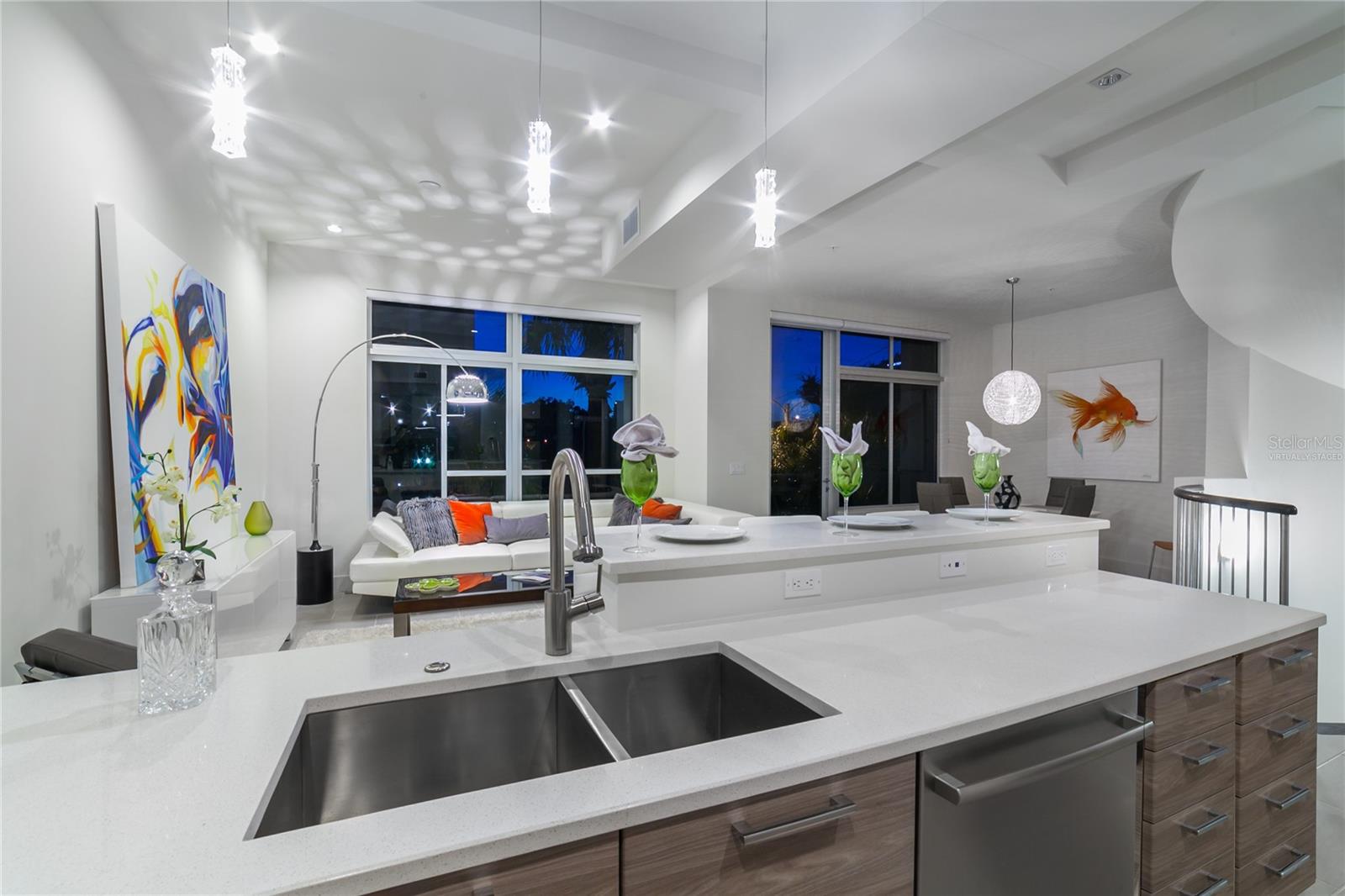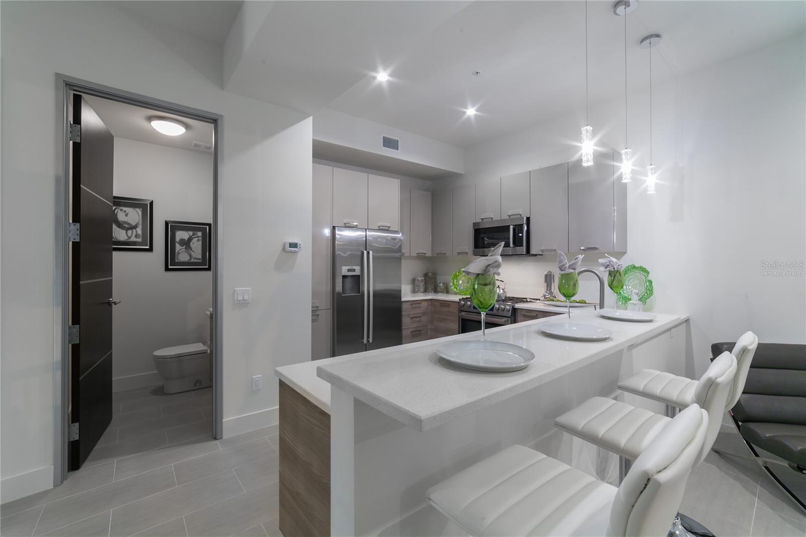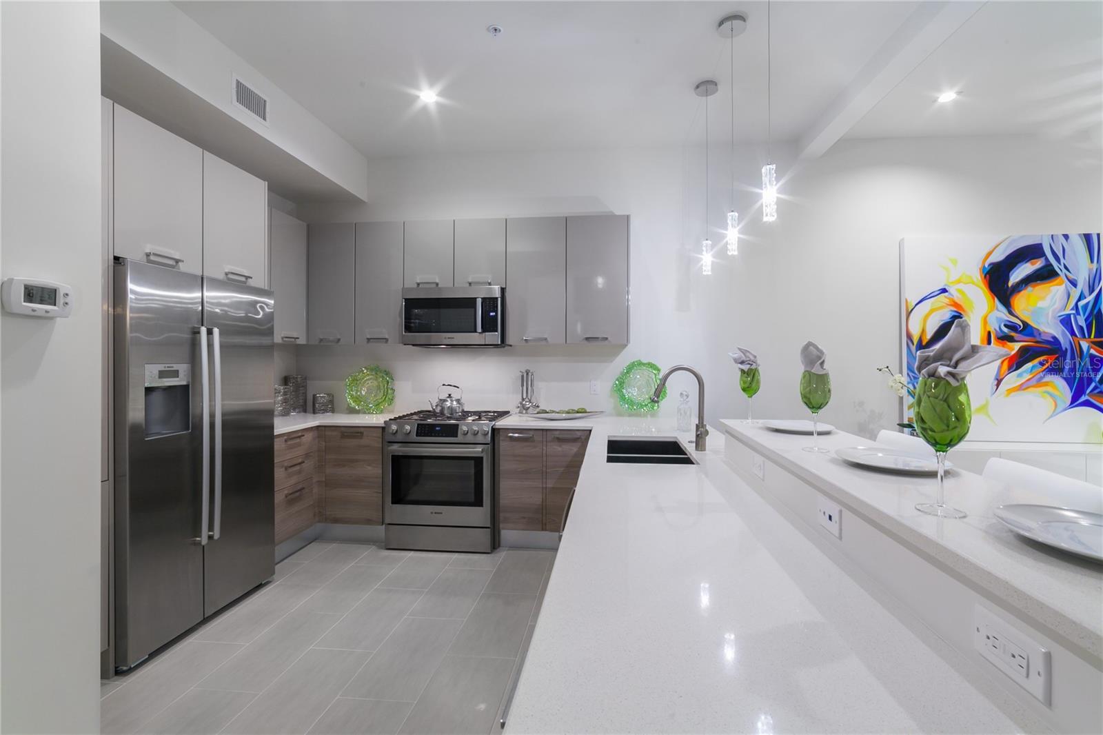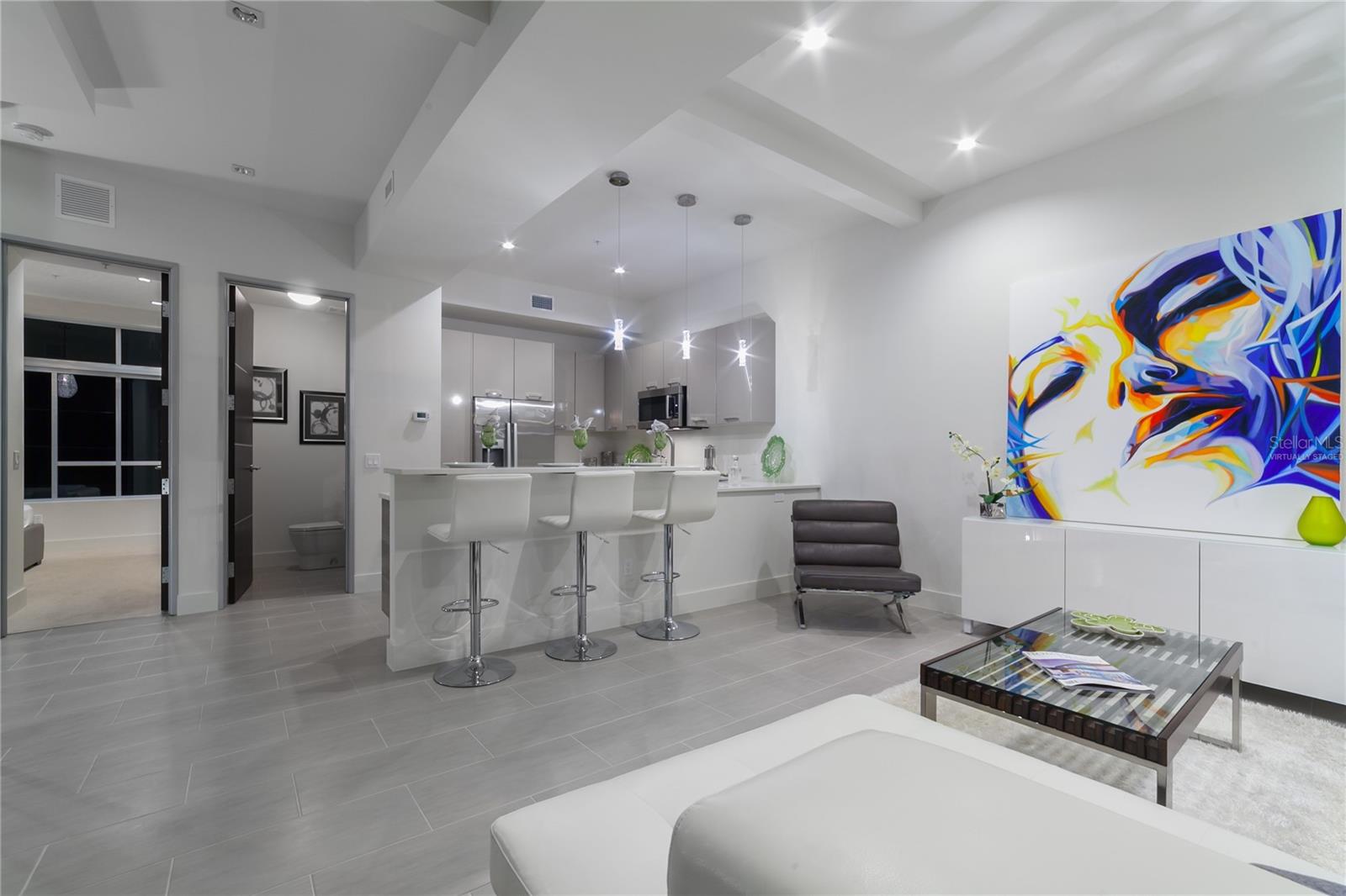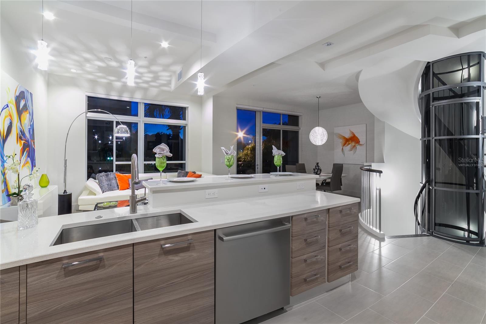 One or more photos have been virtually staged. Cabinet finishes and floor tile may vary. Live on three levels in beautiful downtown Sarasota just near everything the city has to offer. This ultra-contemporary townhouse, which lives like a single-family home, is ideal for relaxing or entertaining, whether you are a full-time or seasonal resident. This unique residence has a private elevator, two-car garage and boasts three bedrooms, 3.5 baths along with a bonus room. Offering stylish urban living and upgraded features throughout, the townhouse includes Miami-Dade impact-rated windows and doors, luxurious Lube Italian kitchen and bath cabinetry, Bosch appliances with natural gas cooktop, Caesarstone quartz countertops and German Hansgrohe plumbing fixtures. You will also discover 8-foot solid core, rosewood-style interior doors, volume ceilings, a stylish freestanding soaking tub, spacious showers and large closets. Premium porcelain tile, multiple terraces, a tankless hot water system and abundant windows are some of the many features. Because the townhouse is titled as fee simple ownership, you own the land your residence is built on, and the monthly fees are some of the lowest downtown at only $505.60 per month. The location is a quick distance to fine restaurants, specialty stores, banks or movie theaters. You are close to Whole Foods Market, downtown Sarasota waterfront, area beaches, a farmers market, a marina and theatrical arts. This property is in zone X, which is not a vulnerable flood zone. Plan a visit to see this three-level luxury townhouse in downtown Sarasota. You’ll be glad you did.