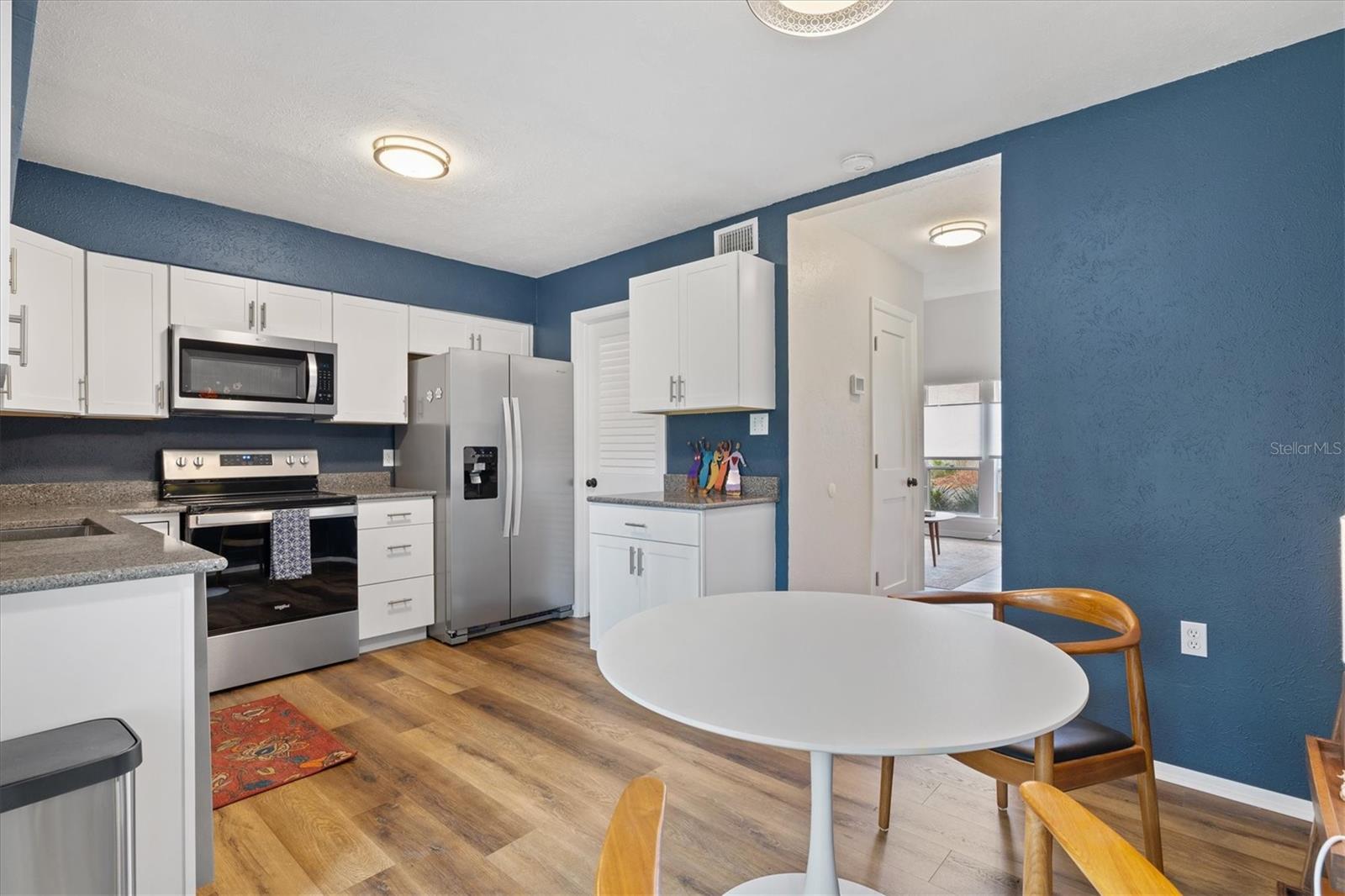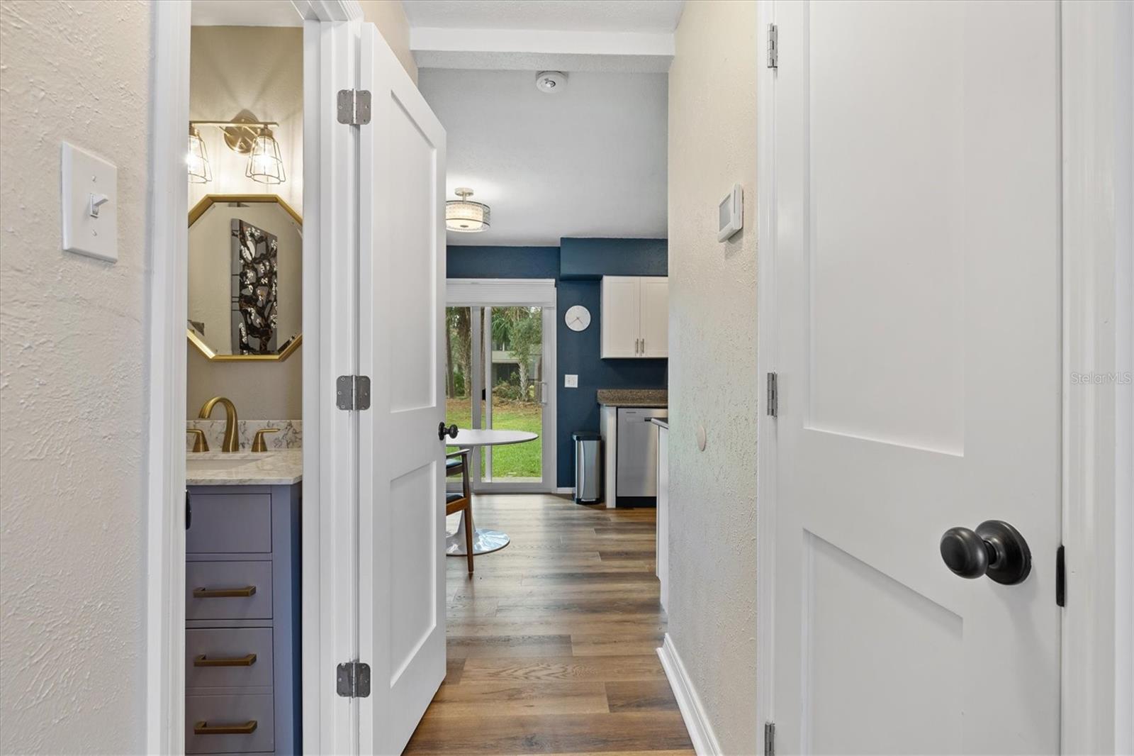 Experience modern living in the Hidden Hollow community of condo-townhomes. This stunning corner unit has been meticulously updated over the last year with no expense spared. As you step inside, you’ll be welcomed by soaring ceilings and high windows that fill the space with natural light, complemented by luxury vinyl plank flooring throughout. The first floor offers a stylish half bathroom with a marble countertop vanity and gold accents—perfect for guests. The eat-in kitchen is a chef’s dream, featuring brand-new granite countertops, stainless steel appliances, and ample white cabinetry. Upstairs, the loft-style primary bedroom currently being used as an Artists dream studio provides a spacious retreat with a fully updated bathroom, complete with a quartz vanity and a sleek glass-enclosed shower. For added convenience, there’s an indoor laundry room with washer/dryer hookups. Enjoy peace of mind for years to come with a brand new roof installed last year, all new hurricane impact sliding glass doors, as well as all interior doors. Hidden Hollow’s amenities enhance your living experience with an Olympic-sized community pool, a tennis court, and a clubhouse equipped with a full kitchen and bar area, available for private events. Monthly association fees are budget-friendly and cover cable, sewer, trash, exterior maintenance, recreational amenities, and more. This cozy yet spacious home is ideally situated near SRQ Airport, Manatee Memorial Hospital, The UTC Mall, dining, and countless conveniences. Schedule your showing today and discover the comfort and style waiting for you at Hidden Hollow!