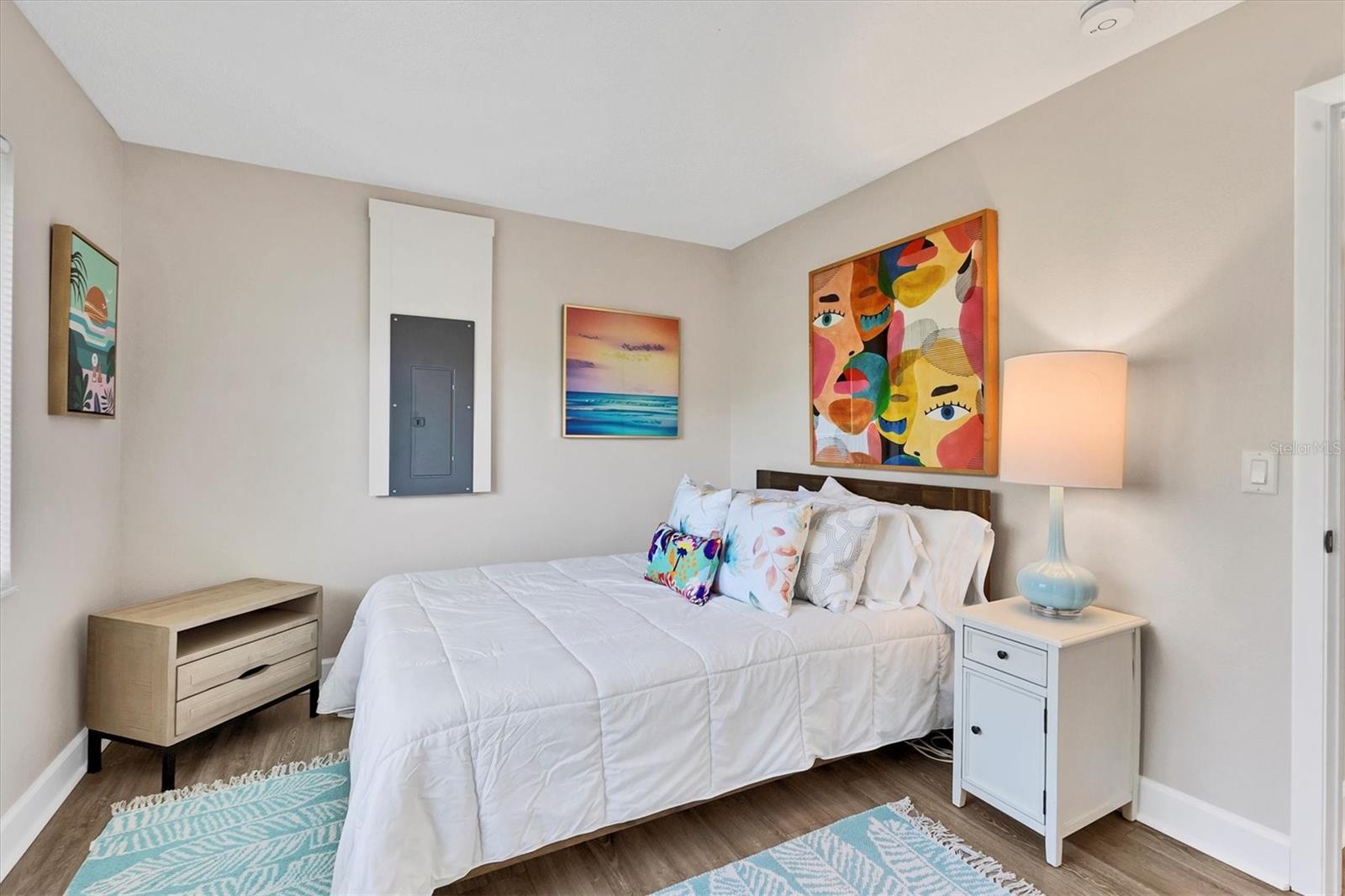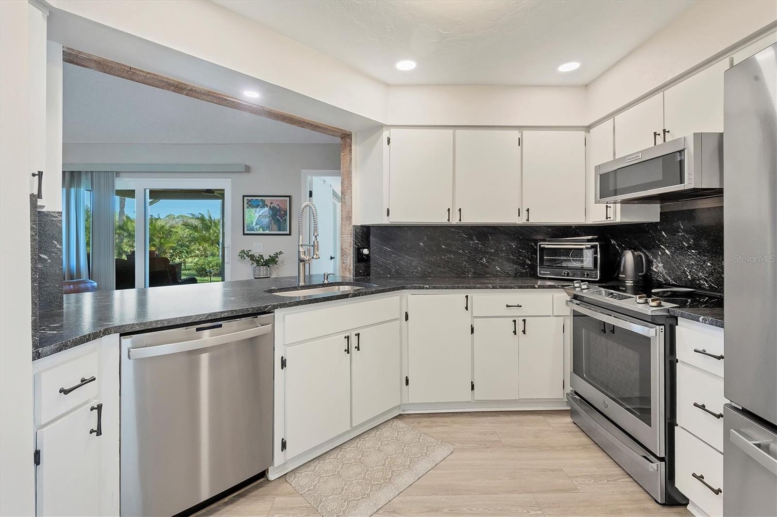 This fabulous UPDATED and RENOVATED home poised on a peaceful homesite at the end of a cul-de-sac is move in ready. This home has been extensively renovated and updated. Notable updates include: Newer roof in 2015, all new hurricane rated windows and doors in 2023, new exterior paint and soffits, lush new landscaping and irrigation and drainage in yard, new AC in 2022 and a newer hot water heater. The open floor plan is perfect for entertaining friends and family and flows effortlessly onto the screened in lanai with new tile flooring. The new luxury vinyl flooring throughout the interior updates this home beautifully giving it a light and bright feel. The kitchen boosts newer stainless-steel appliances and new chic leather finished granite countertops that give the kitchen that designer touch. Both bathrooms were totally renovated and provide that serene and spa like atmosphere. The Meadows is conveniently located just minutes from the UTC mall offering a plethora of shopping and restaurants, Benderson Park, and just a quick drive to downtown Sarasota's lively social scene, world-renown visual and performing arts and award-winning beaches are just 20–30-minute drive. Complimentary amenities include 1,650 park-like acres with 14 miles of hiking and biking trails, pickleball courts and 80 lakes and waterways to enjoy. Country club memberships are optional and offer resort-style amenities including 3 golf courses, 17 Har-Tru tennis courts, a Junior Olympic pool complex, fitness center, and three dining and social venues. Call for your private showing today!