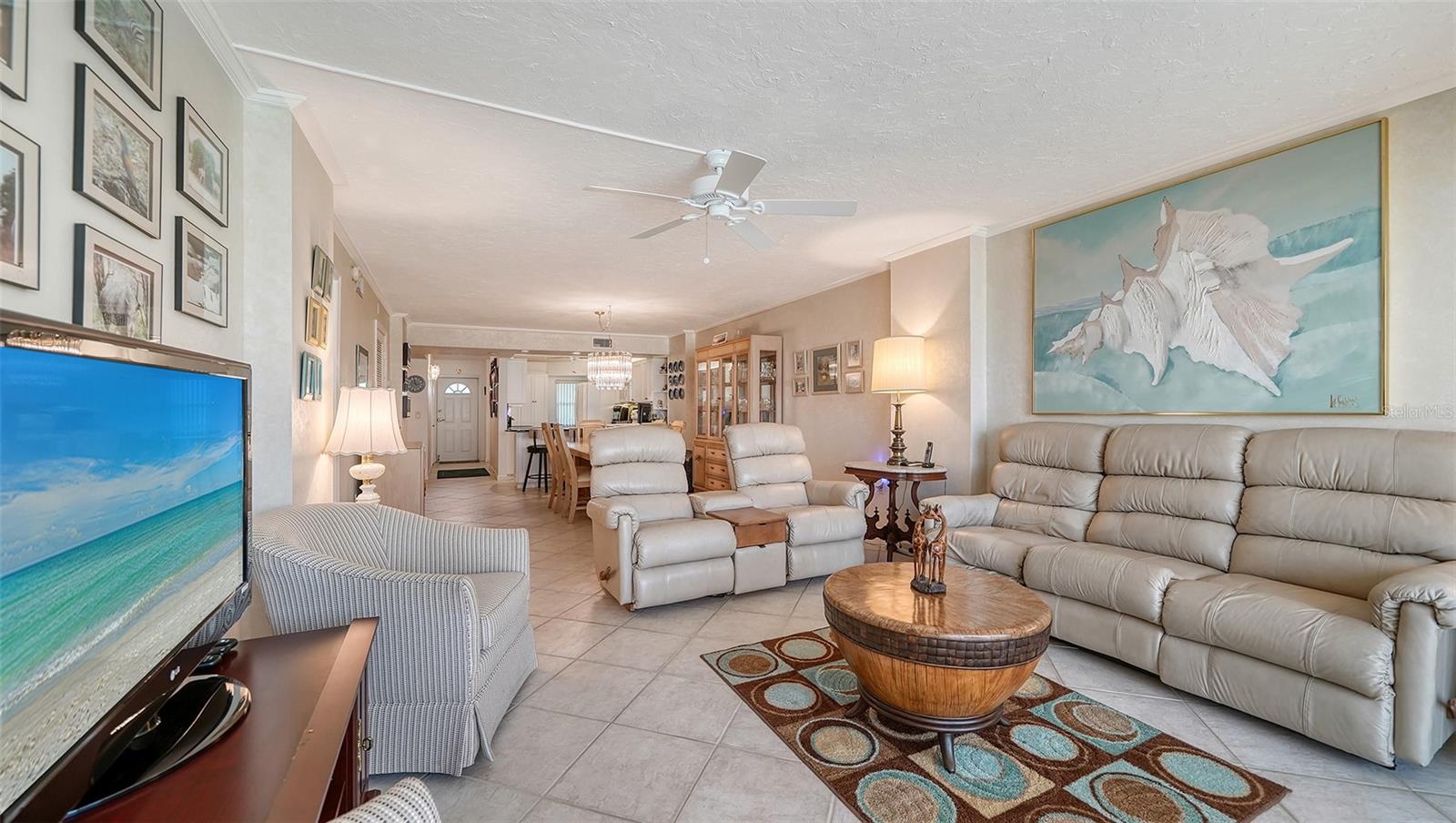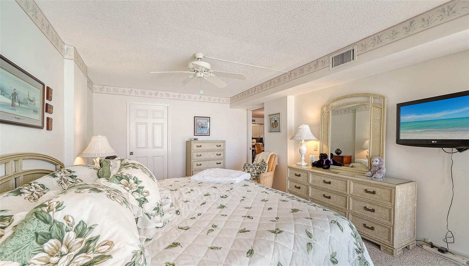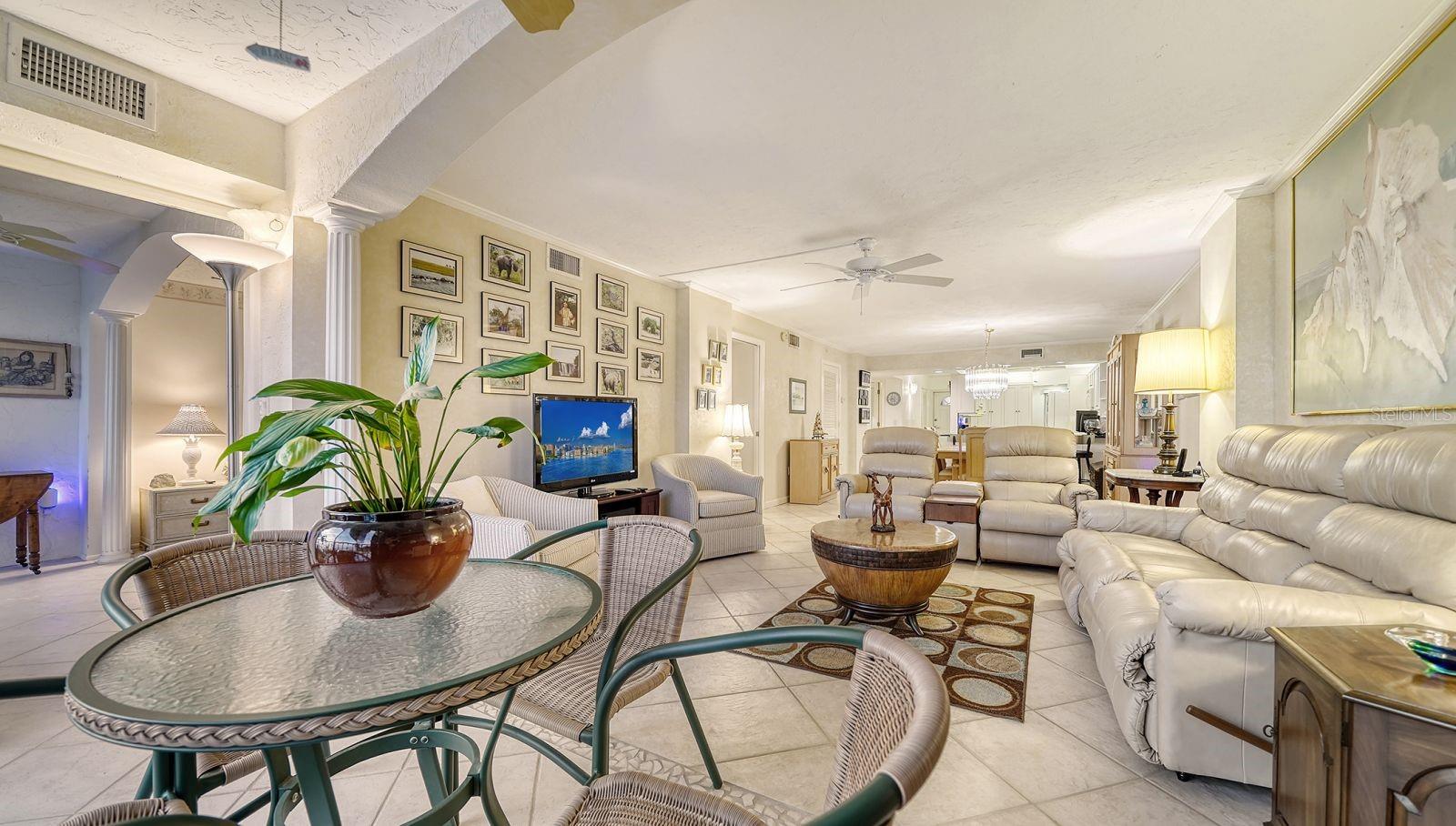 GREAT NEW PRICE! This beautiful, REMODELED, 2 bed/2 bath GULF FRONT tower residence in the premiere property of Whispering Sands is the perfect combination of comfort and convenience! Immediately upon entry, you’re greeted with spectacular, unobstructed 180 degree views of the sparkling Gulf of America! Along with its direct FULL GULF VIEWS, this unit is just one floor away from the beachside pool and Whispering Sands' own private beach. It's also conveniently located on the same floor as the Tower Lounge, reserved for the exclusive use of tower owners and their guests outside of community wide events. An entertainer’s dream, this unit welcomes you into the nicely REMODELED kitchen and great OPEN CONCEPT floor plan, enabling easy interaction between you and your guests. The kitchen features granite countertops & backsplash, an 8’ breakfast bar that seats 4, a new 2024 refrigerator and 2024 dishwasher, recessed LED & under cabinet lighting, an abundance of cabinet storage, and a convenient built-in desk with granite. Experience true Florida living by opening the floor to ceiling sliders in both the living room and primary bedroom and take in the fresh salt breezes and the gentle sound of the surf. Both sets of sliders include remote controlled shades. The primary bedroom includes a custom walk-in closet, large vanity area, and an ensuite bath with marble countertops, glassed walk-in shower, and linen closet with pullout drawers. A set of glassed French doors with privacy shades opens into the guest bedroom, which is currently set up as both an office and bedroom with a fantastic SICO wall bed, desk, and built-ins. Flooring consists of ceramic tile placed on the diagonal in the living areas & carpeted bedrooms. Beautifully textured ceilings and walls. Selected furniture is also included. Whispering Sands is a premiere 55+ Gulf front community offering beautifully landscaped grounds, security, onsite management, 2 heated pools, Tower Lounge and Clubhouse, beachside Tiki hut, grills, shuffleboard, canoe/kayak storage racks, and 800’ of private beach on the Gulf of America. Best of all, you are just around the corner from the colorful boutiques and restaurants of Siesta Key Village and a short drive across the North Bridge to Sarasota’s wealth of visual and performing arts, theatre, and cultural attractions!
