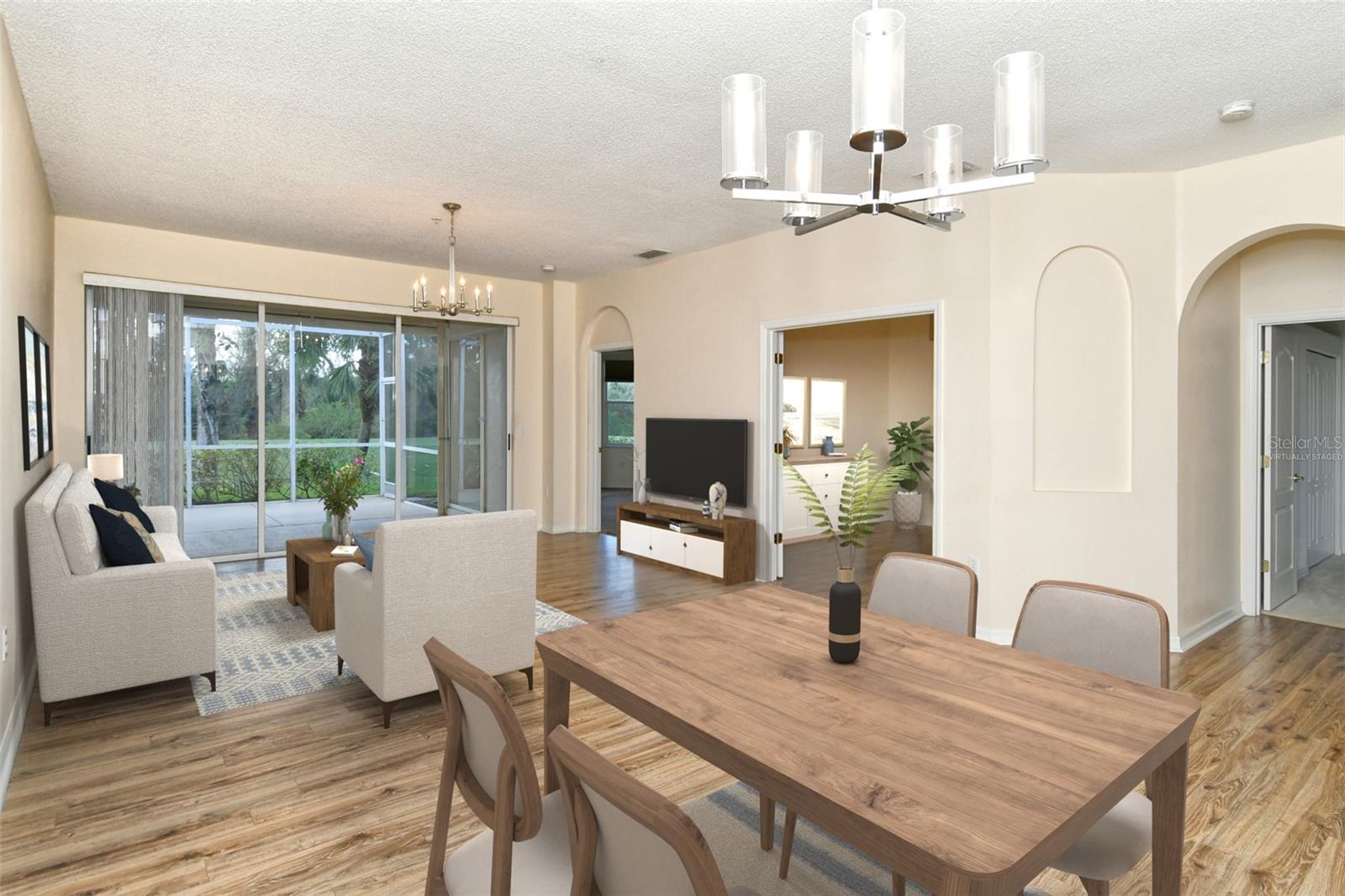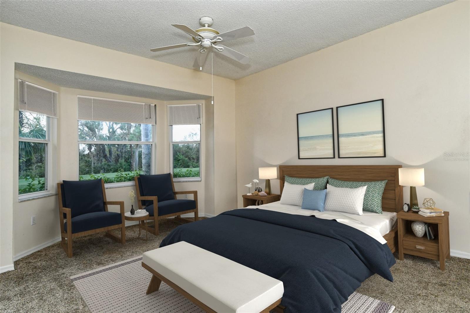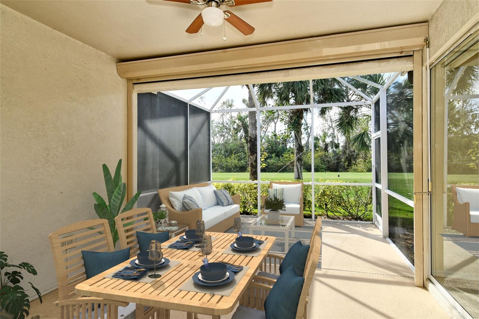 One or more photo(s) has been virtually staged. Welcome to Heritage Oaks Golf & Country Club. This stunning Buttonwood Club Home features 2 bedrooms, 2 bathrooms, a den/study that's perfect as a flex room or even a third bedroom, and a sizable 2 car garage. As you enter the property, you are greeted by a bright and airy open floor plan, featuring high ceilings and windows that fill the space with natural light. The spacious living room flows seamlessly into the kitchen, complete with granite countertops, an ample amount of cabinetry and a nice size bar area for casual dining or entertaining friends and family. The adjoining dining room area provides a central setting for gatherings and dinner parties. The property includes a lovely primary suite and en-suite bath complete with dual vanities, walk-in shower, and a large walk-in closet. The additional bedroom is located on the opposite side of the home giving privacy for guests. Step outside onto your private lanai where you can enjoy picturesque views of the 17th tee box and fairway of the golf course. The space is ideal to enjoy your morning coffee or to take in the gorgeous sunsets that can be seen from this club home. The sellers have also installed a roll down hurricane shutter on the lanai for added security. Enjoy the views and abundance of wildlife that call this Certified Audubon Neighborhood their home. Heritage Oaks is known for its pristine 18-hole golf course, har-tru tennis courts, fitness center, 24-hour security, an impressive clubhouse with 2 restaurants including the sensational 19th Hole Lounge, 5 heated swimming pools, and a calendar of events packed with activities. Whether you're seeking a year-round residence or a seasonal retreat, this home is a perfect place to create lasting memories. Take a tour today!