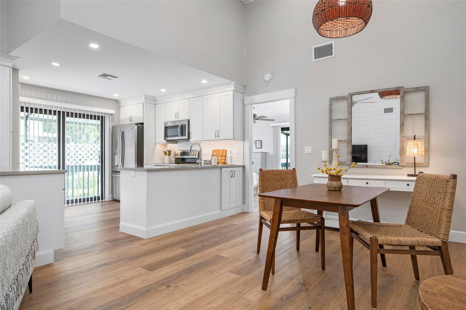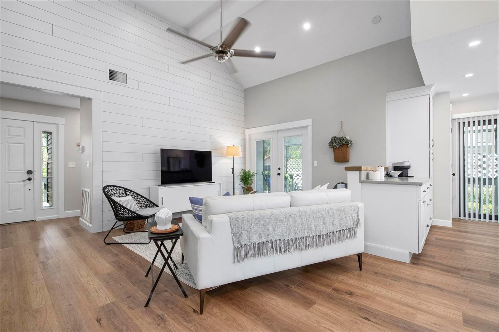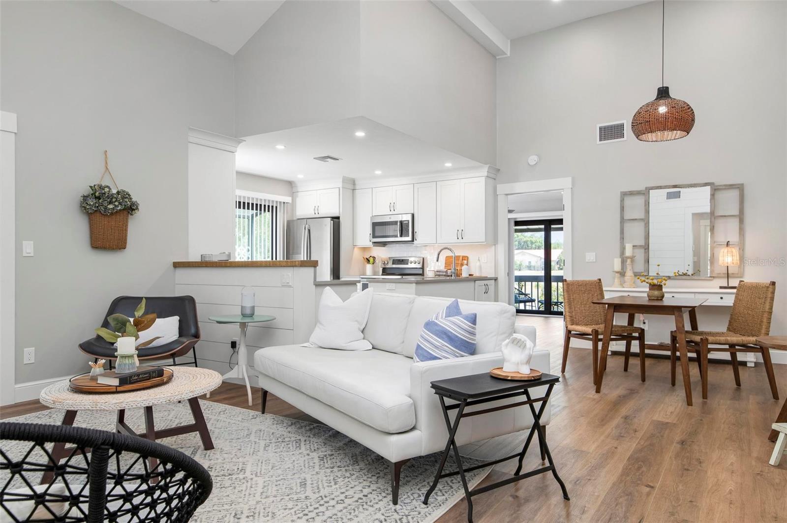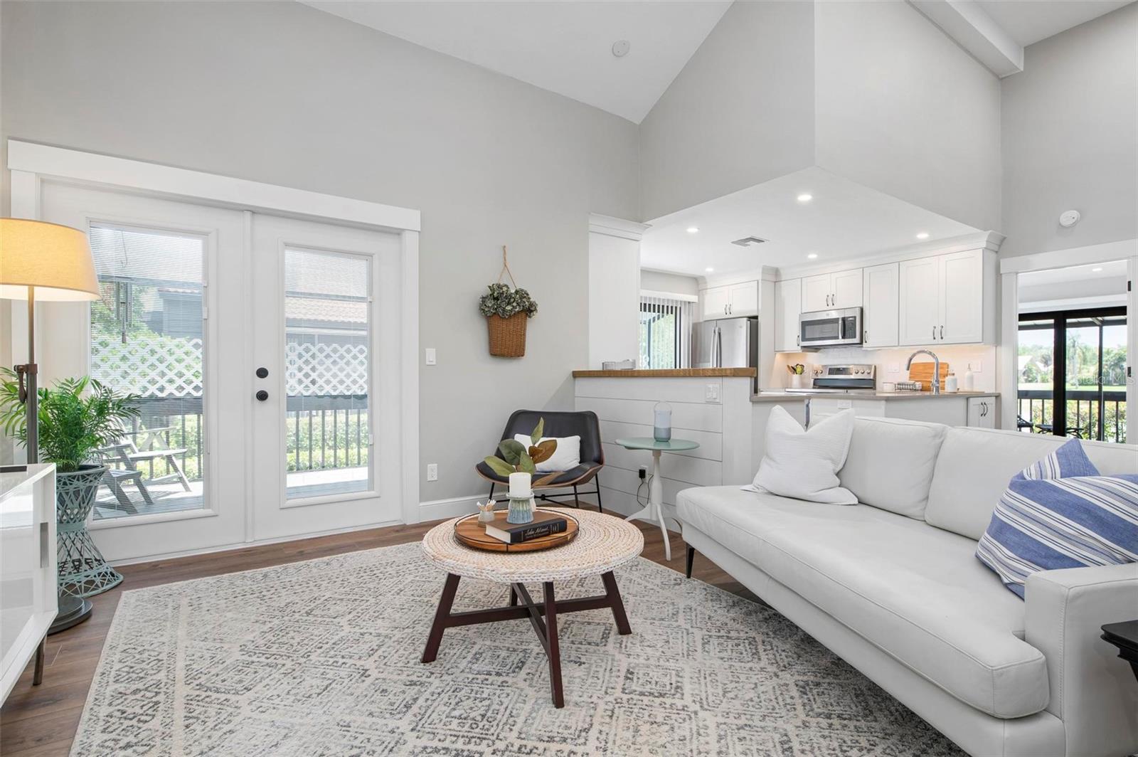 Don't miss out on the opportunity to make this stunning remodeled villa with lake views your new home! In December 2019, the space was completely transformed with over $137,000 in renovations. Features include a gorgeous new kitchen, all new bathrooms, closet systems were added, new full-size washer/dryer, new water heater, new air conditioner, and new luxury laminate flooring throughout. IMPACT GLASS WINDOWS & DOORS were added to give you peace of mind knowing the home is quiet and secure. The entry foyer opens up to a spacious living room, dining room, and kitchen, all with access to the large exterior screened lanais overlooking the scenic eight-acre lake. The kitchen boasts stainless steel GE Profile appliances, granite countertops, a pantry with pull-out wood shelves as well as a laundry closet equipped with that full-size washer and dryer. The villa includes a one car garage with a storage closet, as well as a carport. PETS are welcome and all of the GORGEOUS FURNITURE is negotiable. The Lakes of Sarasota is a maintenance-free community offering amazing amenities such as two community pools (one is heated during the winter months), a clubhouse which can be rented out for private events, a fitness center, a playground, two lit tennis courts, a basketball court, and a walking path. The monthly condo fee covers the ROOFS, landscaping, private roads, exterior painting, and exterior insurance. Located close to beaches, shopping, dining, and entertainment options, this villa is perfect for enjoying the Florida lifestyle.