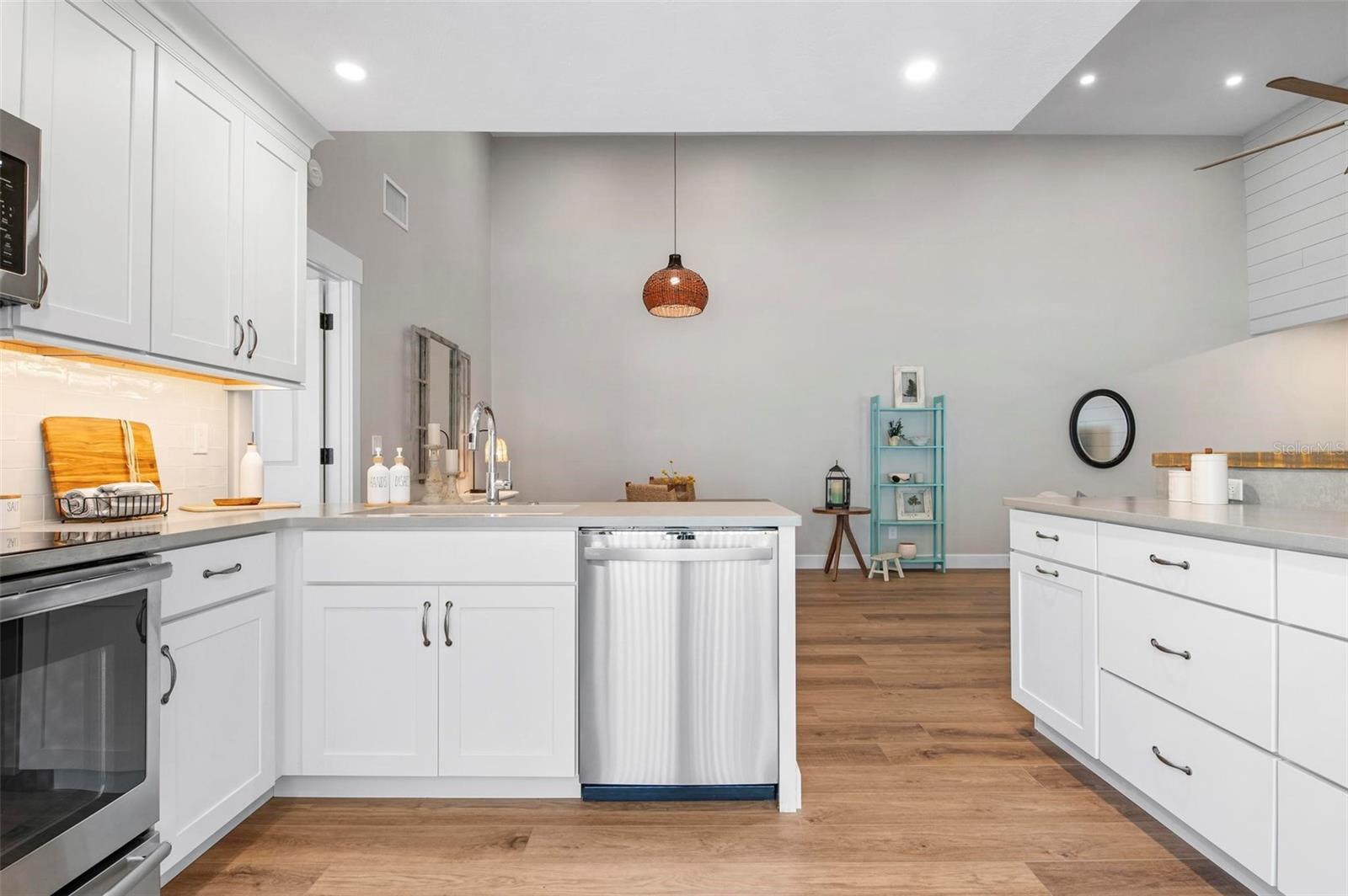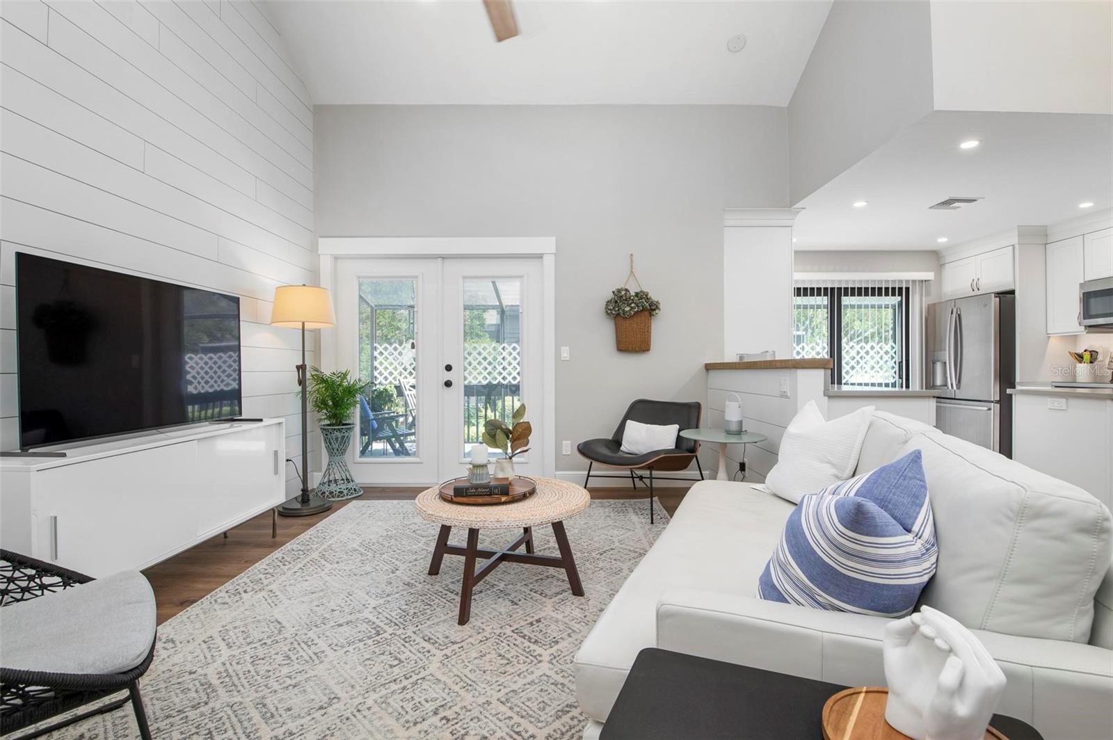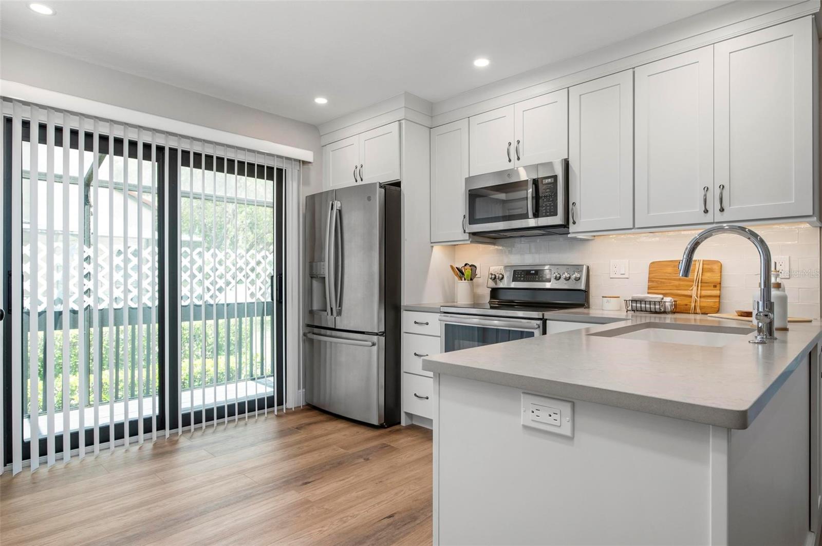 Don't miss out on the opportunity to make this stunning remodeled villa with lake views your new home! In December 2019, the space was completely transformed with over $137,000 in renovations. Features include a gorgeous new kitchen, all new bathrooms, closet systems were added, new full-size washer/dryer, new water heater, new air conditioner, and new luxury laminate flooring throughout. IMPACT GLASS WINDOWS & DOORS were added to give you peace of mind knowing the home is quiet and secure. The entry foyer opens up to a spacious living room, dining room, and kitchen, all with access to the large exterior screened lanais overlooking the scenic eight-acre lake. The kitchen boasts stainless steel GE Profile appliances, granite countertops, a pantry with pull-out wood shelves as well as a laundry closet equipped with that full-size washer and dryer. The villa includes a one car garage with a storage closet, as well as a carport. PETS are welcome and all of the GORGEOUS FURNITURE is negotiable. The Lakes of Sarasota is a maintenance-free community offering amazing amenities such as two community pools (one is heated during the winter months), a clubhouse which can be rented out for private events, a fitness center, a playground, two lit tennis courts, a basketball court, and a walking path. The monthly condo fee covers the ROOFS, landscaping, private roads, exterior painting, and exterior insurance. Located close to beaches, shopping, dining, and entertainment options, this villa is perfect for enjoying the Florida lifestyle.