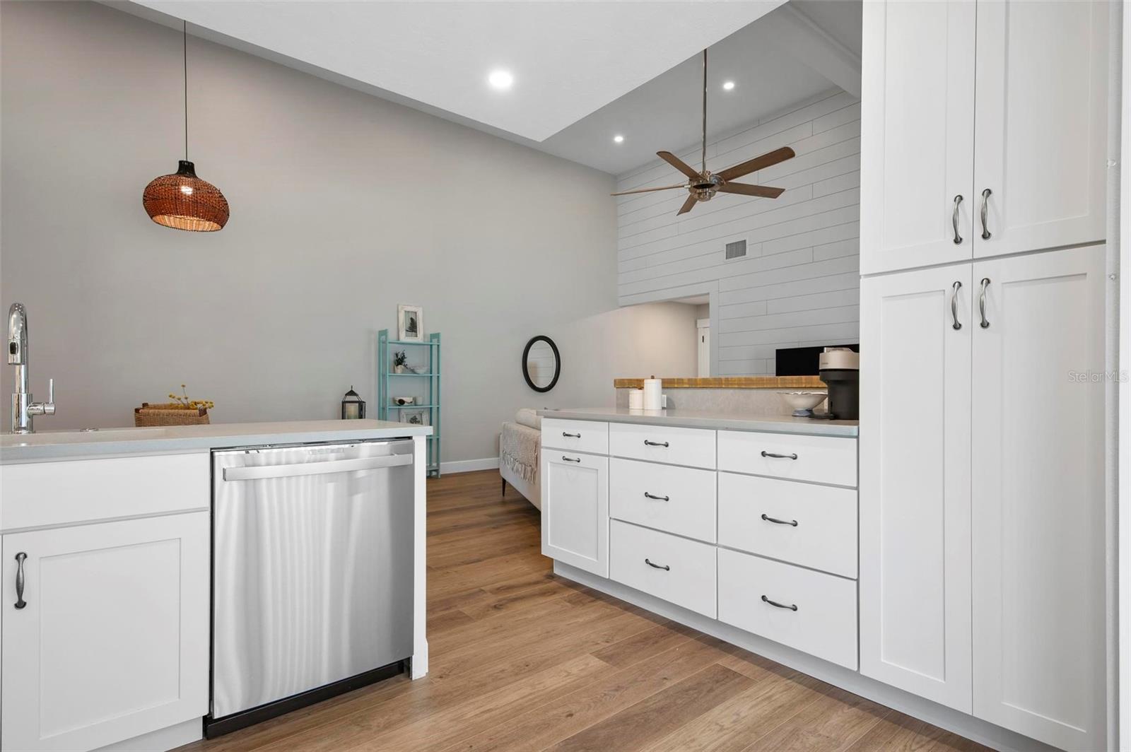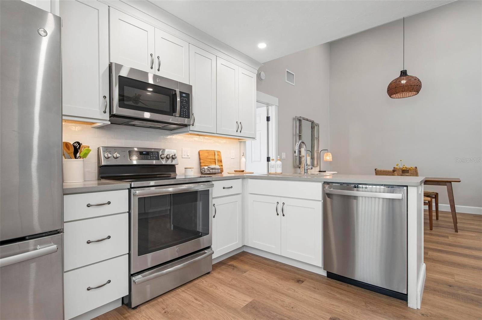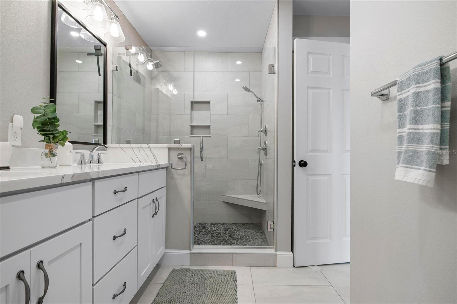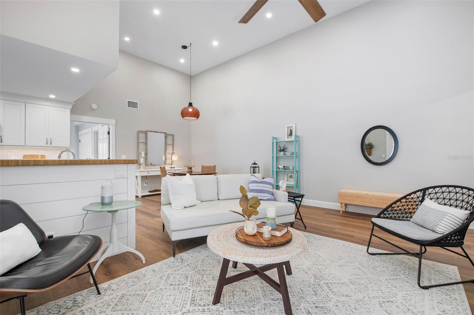 Don't miss out on the opportunity to make this stunning remodeled villa with lake views your new home! In December 2019, the space was completely transformed with over $137,000 in renovations. Features include a gorgeous new kitchen, all new bathrooms, closet systems were added, new full-size washer/dryer, new water heater, new air conditioner, and new luxury laminate flooring throughout. IMPACT GLASS WINDOWS & DOORS were added to give you peace of mind knowing the home is quiet and secure. The entry foyer opens up to a spacious living room, dining room, and kitchen, all with access to the large exterior screened lanais overlooking the scenic eight-acre lake. The kitchen boasts stainless steel GE Profile appliances, granite countertops, a pantry with pull-out wood shelves as well as a laundry closet equipped with that full-size washer and dryer. The villa includes a one car garage with a storage closet, as well as a carport. PETS are welcome and all of the GORGEOUS FURNITURE is negotiable. The Lakes of Sarasota is a maintenance-free community offering amazing amenities such as two community pools (one is heated during the winter months), a clubhouse which can be rented out for private events, a fitness center, a playground, two lit tennis courts, a basketball court, and a walking path. The monthly condo fee covers the ROOFS, landscaping, private roads, exterior painting, and exterior insurance. Located close to beaches, shopping, dining, and entertainment options, this villa is perfect for enjoying the Florida lifestyle.