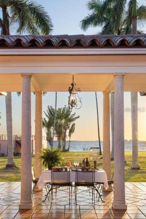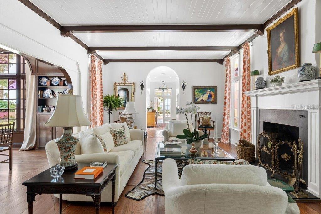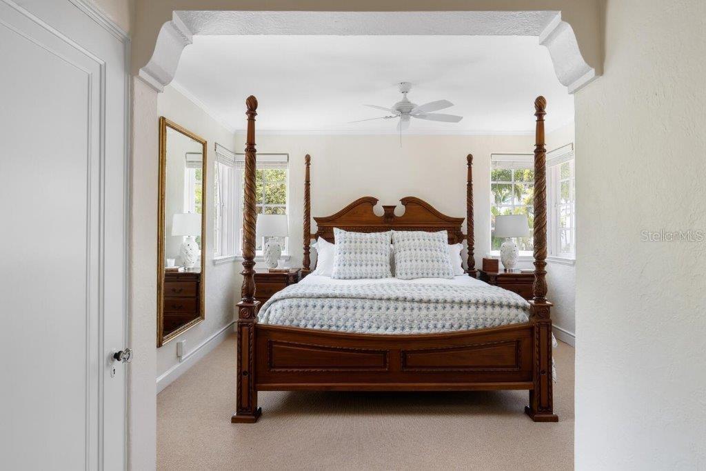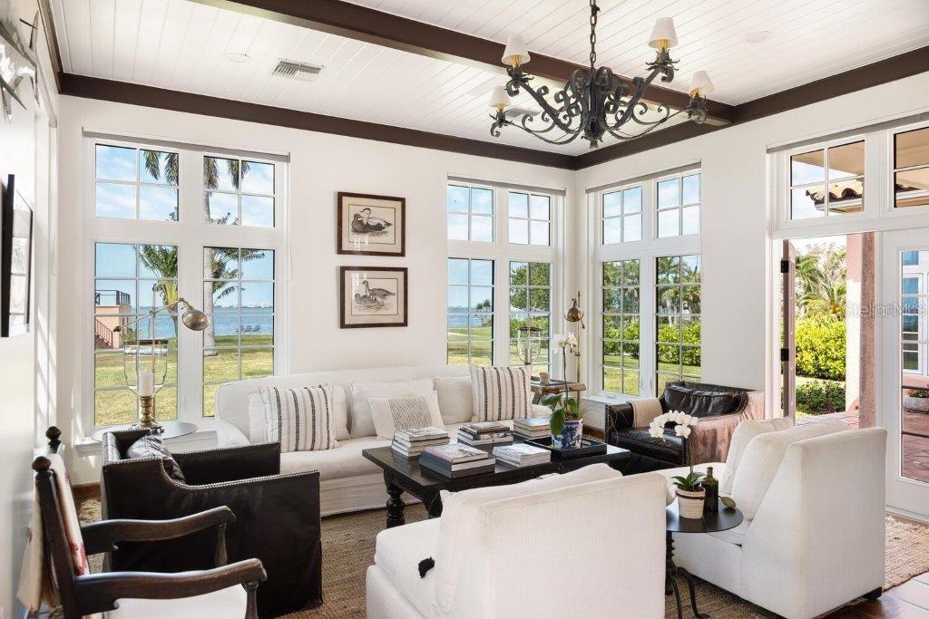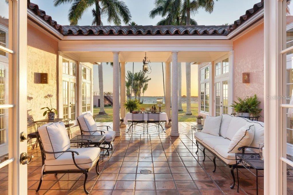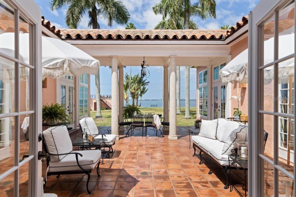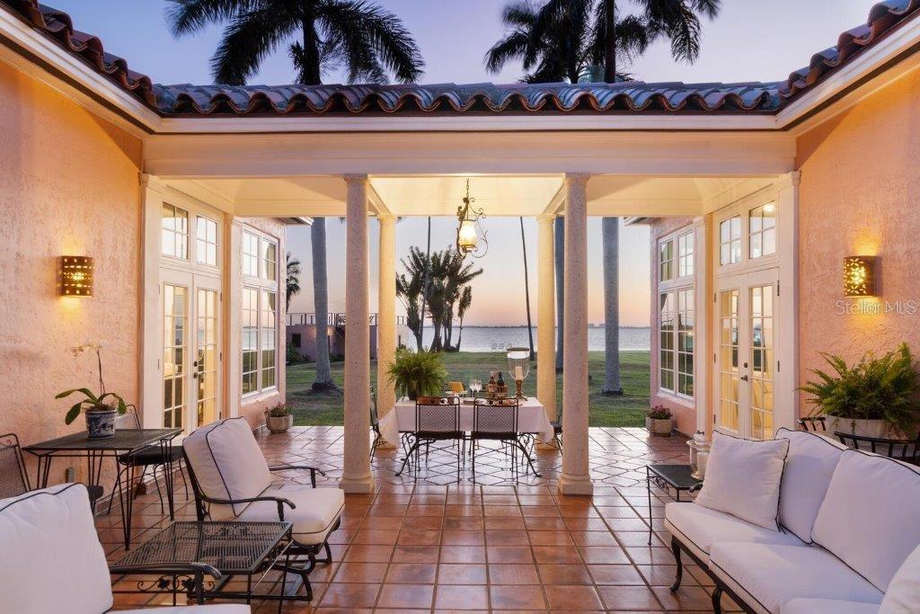 Nestled on 1.1 acres of pristine bayfront along Sarasota Bay, Etowah stands as a timeless icon of Sarasota's rich heritage. Originally built in 1925, this two-story Mediterranean revival estate spans over 6,500 square feet, offering captivating views of the bay while being 10-minutes away from Sarasota's downtown. Following an extensive year-long renovation, Etowah has been meticulously restored to its former glory, honoring its storied past with an unparalleled attention to detail. Previously in 1992, local architect Frank Folson Smith added a large extension to the West-side of the home, including an extensive master bedroom, bar-area and great room. The historic portion of the home, which features the formal living room, dining room, eat-in kitchen and additional bedrooms had been left untouched since then. Stepping inside, the entryway welcomes you with a vaulted ceiling, leading gracefully to the formal living room which features the homes original fireplace. Adjacent, the dining room, surrounded by windows crafted from original glass sourced from the nearby Ringling Bros. and Barnum & Bailey, sets the stage for entertaining, comfortably accommodating a table for 12 guests. For the culinary enthusiast, the modern kitchen has been thoughtfully designed with top-of-the-line Thermador appliances, a SubZero refrigerator, and every amenity required for a master chef. Plus, the eat-in kitchen makes the perfect spot to enjoy your morning coffee. Moving to the west-side of the home, the owners suite and great room are flanked on either side of a spacious courtyard. Making this a true destination for indoor and outdoor living and entertaining. The owners suite features his and hers walk-in closets, bay views and a spacious bath. The second-level of the home features a second primary bedroom with a wood burning fireplace, views of the bay and plenty of closet space. The additional 3-bedrooms on this level offers generous sized-rooms with a sunken office space/ den at the end of the hall. Completing this exceptional home is an original garage, connected to a workshop, gardening space, laundry facility, and additional private guest quarters. Etowah, is a one-of-a-kind property bridging historic Florida and modern living, overlooking the unparalleled beauty of Sarasota Bay.