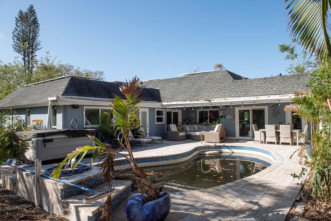 This North Siesta Key property is a prime opportunity for buyers looking for a serene canal lot. Spanning .43 acres, the oversized lot measures 114x160x80 and is enveloped by a lush tropical landscape. Located in the Harmony subdivision, you’re just minutes from Siesta Village and Out-of-Door Academy. Enjoy easy access to water activities—launch your kayak from your backyard or take your boat to the nearby sandbar. The neighborhood's tranquil vibe is complemented by the convenience of being close to Siesta Key Village’s Saturday’s farmers market and dining venues. While the property has suffered extensive storm damage and is being sold as-is, it offers significant potential for a remodel or new build. Key features include 80 feet of canal frontage with an undamaged composite dock, a recently renovated pool and pool deck, new windows and doors, and a full solar electric system with two Tesla batteries, all of which remain undamaged. This is a fantastic opportunity to create your dream home in a prime location! ***Please note that most of pictures 1-36 show current condition, pictures 1,2,6,7,11,13,15,17,19 and 21 as well as 37-91 are pre storm.***
