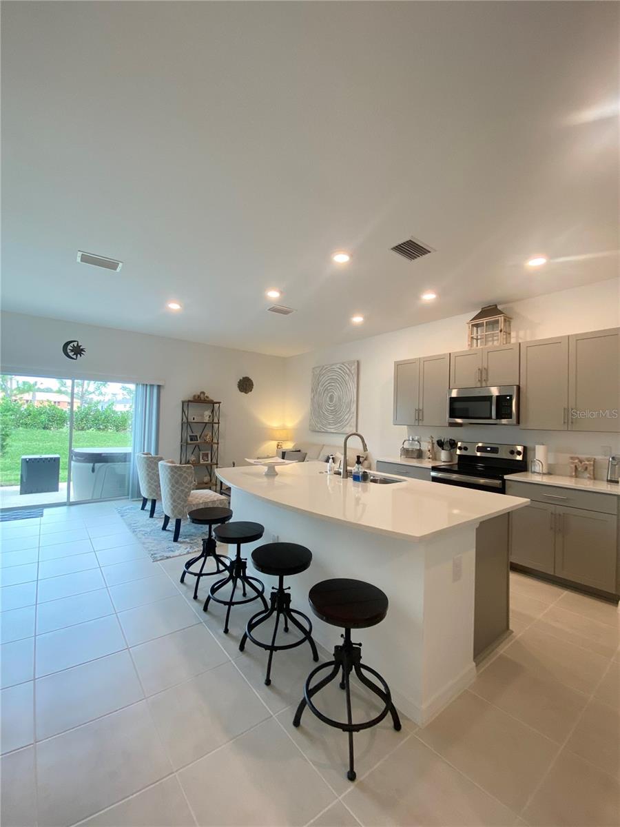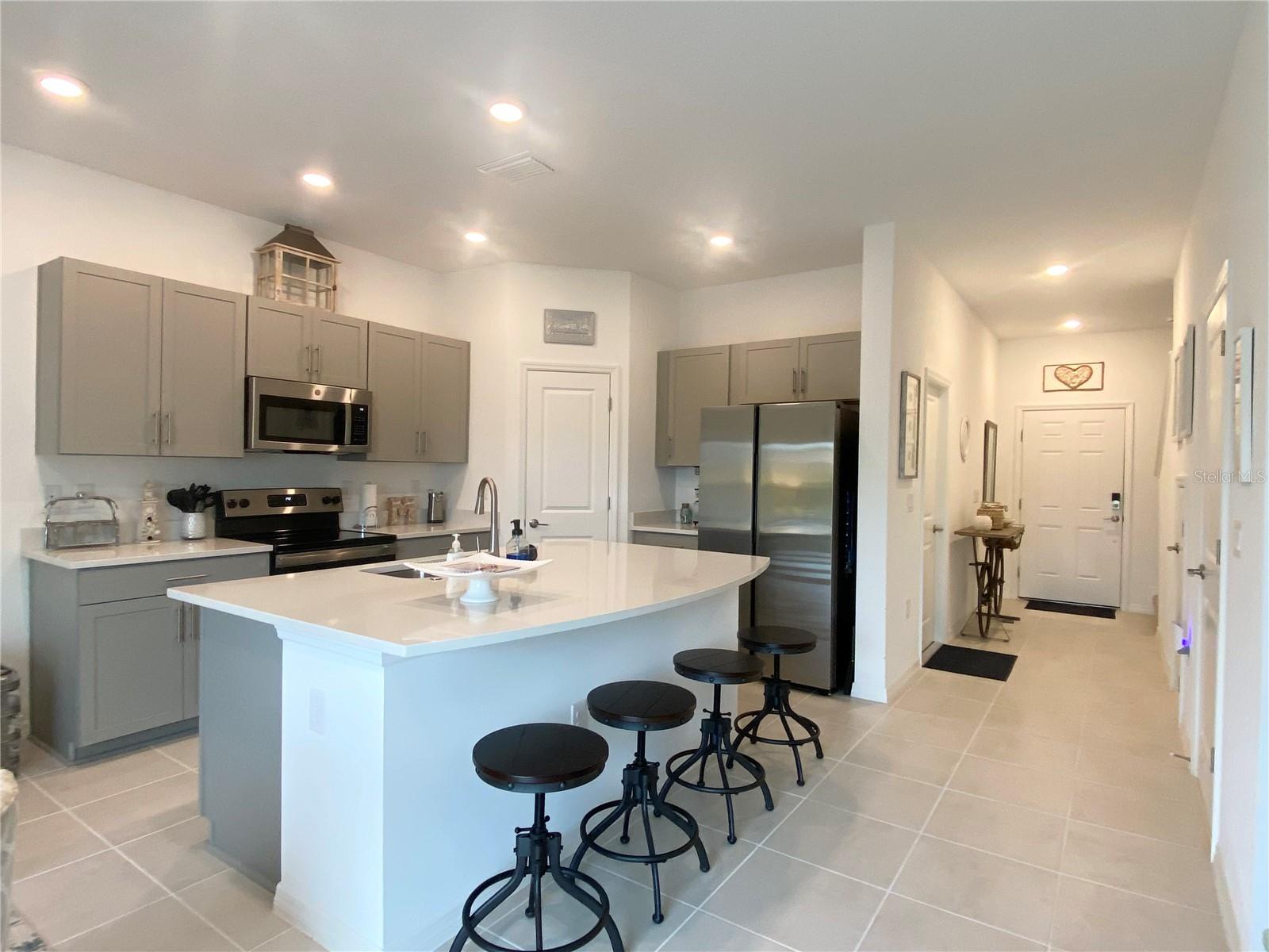 MOTIVATED SELLERS!!!!! This gently lived in 3-bedroom, 2.5-bathroom townhome in the highly desirable Skye Ranch community offers a blend of modern style and comfort. Step into a bright, open floor plan featuring a soothing color palette, with cozy carpet in the bedrooms and sleek tile throughout the rest of the home. The well-equipped kitchen boasts quartz countertops, stainless steel appliances (including a newer refrigerator), a large island, and a spacious walk-in pantry. The property is filled with thoughtful details, like dimmer switches, a garage opener pad, and sealed grout for durability. Extra storage under the stairs and hurricane shutters offer added convenience and protection. The upstairs laundry room is perfectly situated for easy access to all bedrooms. Enjoy the private back patio, with a landscaped buffer for added privacy. Plus, the community offers two pools (one just steps away), a grilling area, and walking trails. Conveniently located near shopping, beaches, Sarasota Airport, and more, this townhome is a fantastic opportunity to enjoy Florida living at its finest. Don’t miss your chance to make it yours!