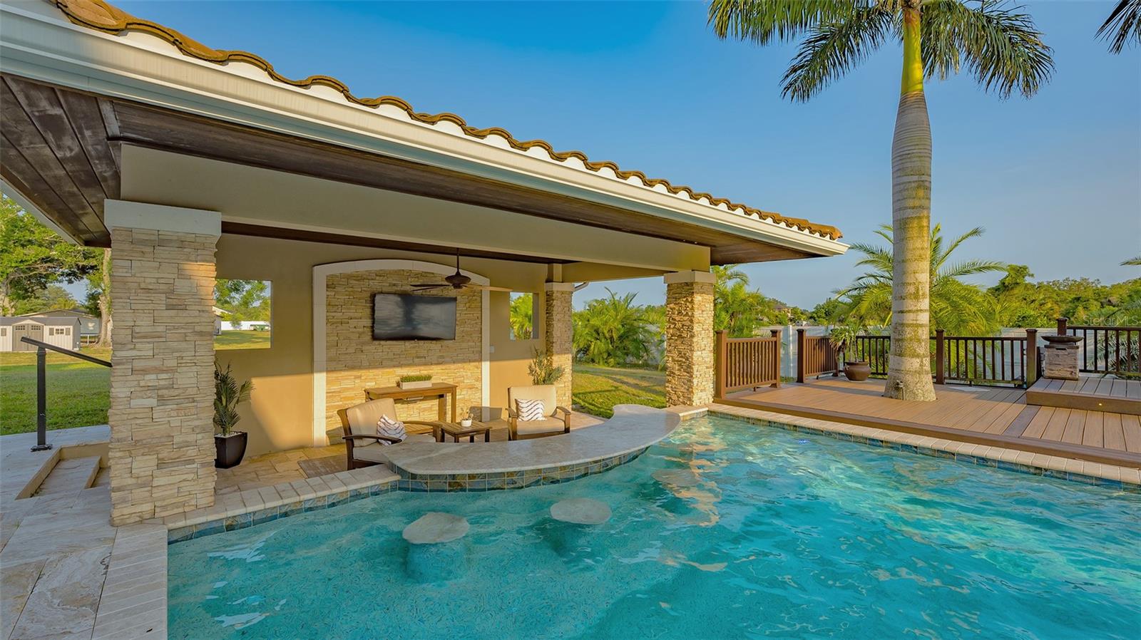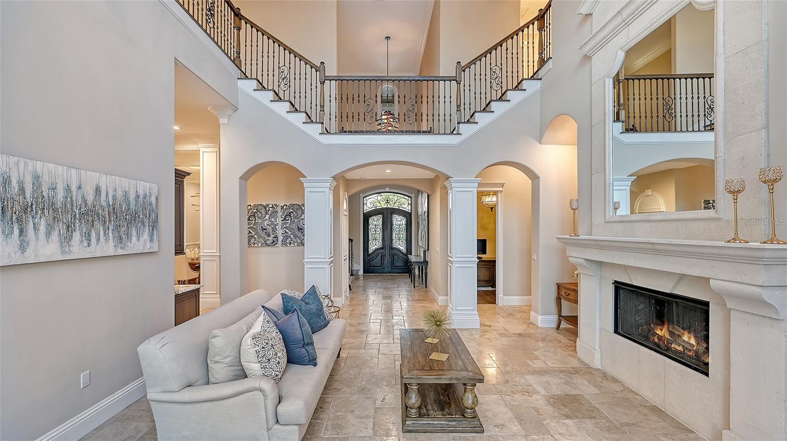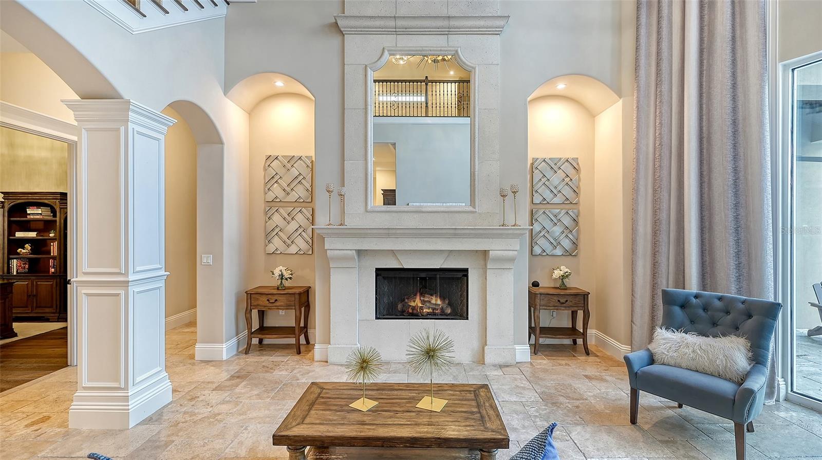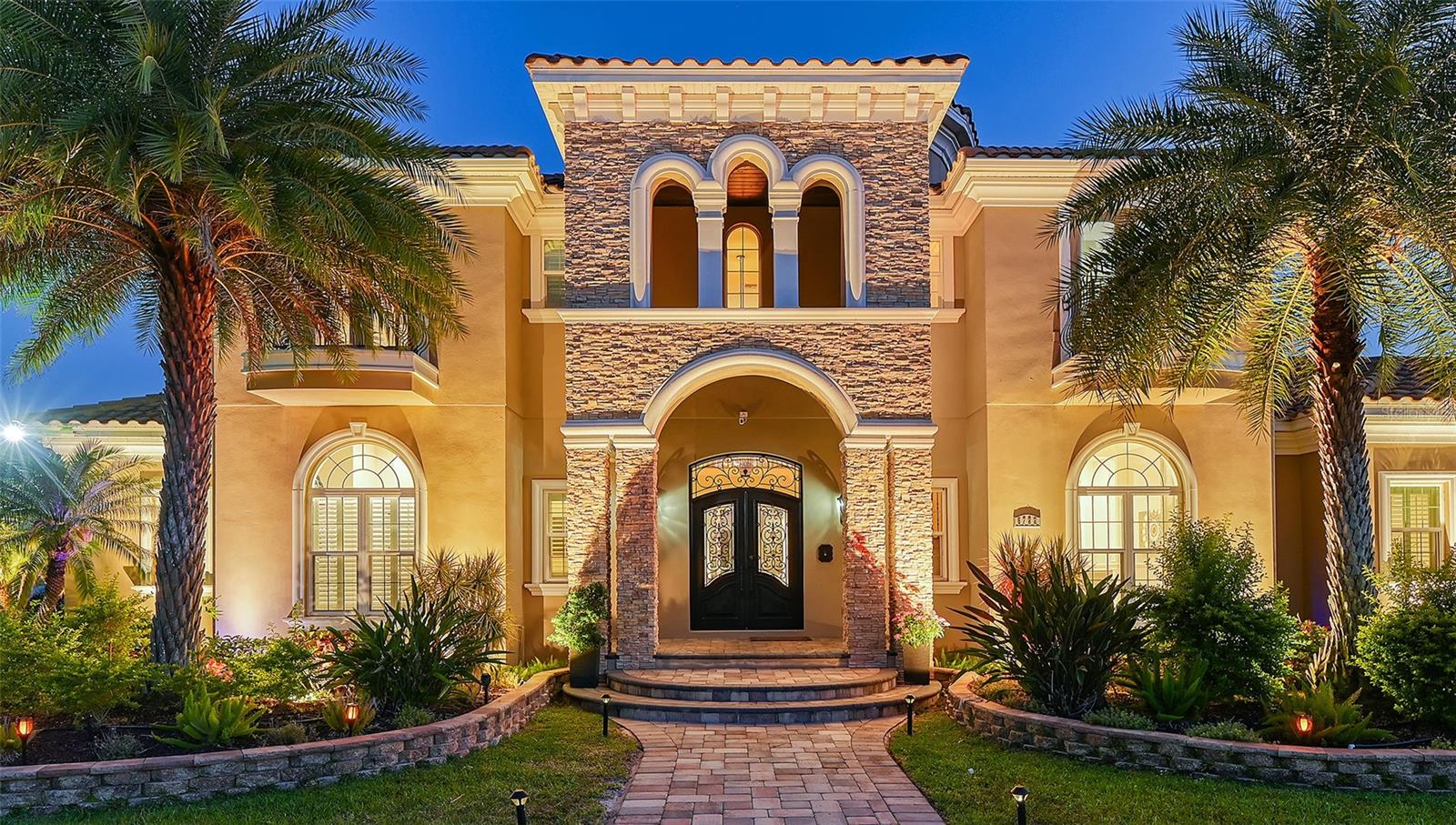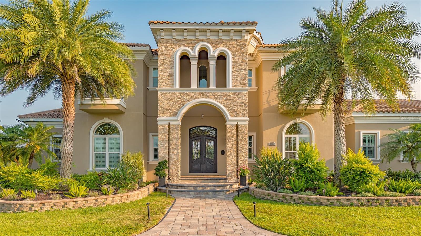 Amid six acres of meticulously landscaped grounds, this estate is a masterpiece, seamlessly blending opulence with tranquility. Beyond the grand iron gate, a sweeping circular driveway beckons, guiding you past enchanting features such as a charming gazebo and a picturesque bridge over a serene koi pond, setting a tone of elegance from the outset. Meticulous attention to detail defines every aspect of this home, from the imposing double iron front doors to the soaring 26-foot living room ceiling enveloped by floor-to-ceiling windows. Architectural marvels await indoors, with a stone gas fireplace serving as a focal point, a winding staircase exuding timeless grandeur and bespoke finishes adding a touch of refinement to every corner. Productivity awaits in the stately office, where rich wood floors bask in natural light, fostering an ambiance of creativity. Entertaining becomes an art form with the sophisticated built-in bar area, replete with an ice maker and glass cabinetry, seamlessly flowing into the dining space adorned with exquisite custom wood beams. Here, a climate-controlled wine room stands ready to cater to the most discerning connoisseurs, featuring a built-in dispenser for indulgence at any hour. The primary suite epitomizes serenity, boasting a spacious seating room with tranquil pool views, and luxurious amenities including custom closets and a spa-worthy primary bath boasting separate sinks, a walk-in shower and a sumptuous soaking tub. Culinary delights await in the gourmet kitchen, outfitted with top-tier appliances including Thermador double ovens and cooktop, Wolf grill and griddle, built-in 48-inch refrigerator, and a convenient pot filler. Exquisite finishes, from exotic stone countertops to custom wood cabinetry, elevate the culinary experience to new heights. Adjacent to the kitchen lies the family room, seamlessly blending indoor and outdoor living through corner pocket sliders that lead to the inviting lounge area. Step outside, and a resort-style oasis unfolds, complete with a sparkling pool, outdoor kitchen and bar-top seating, while an adjacent casita offers further options for relaxation and entertainment. Ascend the staircase to discover an additional bonus room and bar, ideal for intimate gatherings or leisurely evenings. For cinema enthusiasts, the state-of-the-art movie room promises an immersive viewing experience, while three guest suites ensure comfort and privacy for visitors. A built-in library offers a tranquil retreat, complete with a captivating array of books accessible via an attached wooden ladder. Modern conveniences abound, including a comprehensive water purification system with state-of-the-art reverse osmosis technology delivering over 4,000 gallons of pristine water daily from a 2,500-gallon primary tank and two secondary 500-gallon tanks, equipped with filters. A separate garage apartment offers versatility, with an additional bath, covered parking and a kitchenette. An adjacent RV garage, with a full electrical package and a 10-foot fan, provides ample space for recreational vehicles. With its elevated garden, additional shed and a large pond connected by a charming bridge to the koi pond, this estate is a testament to meticulous craftsmanship and unparalleled luxury. In every detail, from the meticulously manicured grounds to the luxurious interiors, this estate is the pinnacle of luxury living. Welcome home to a realm of unparalleled sophistication and refinement.