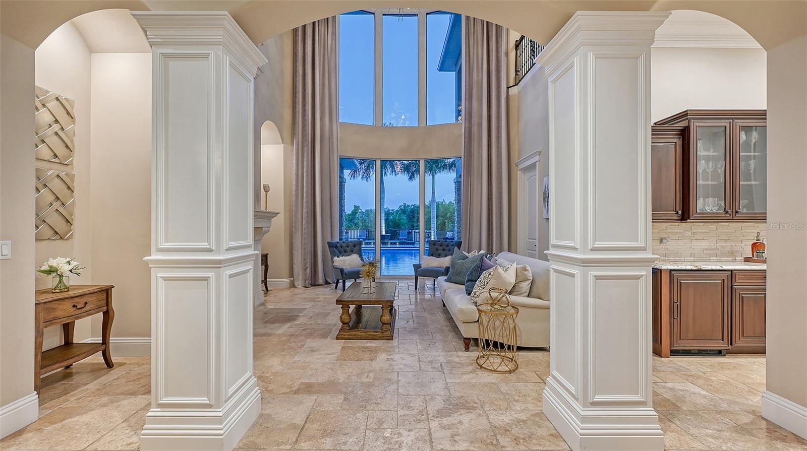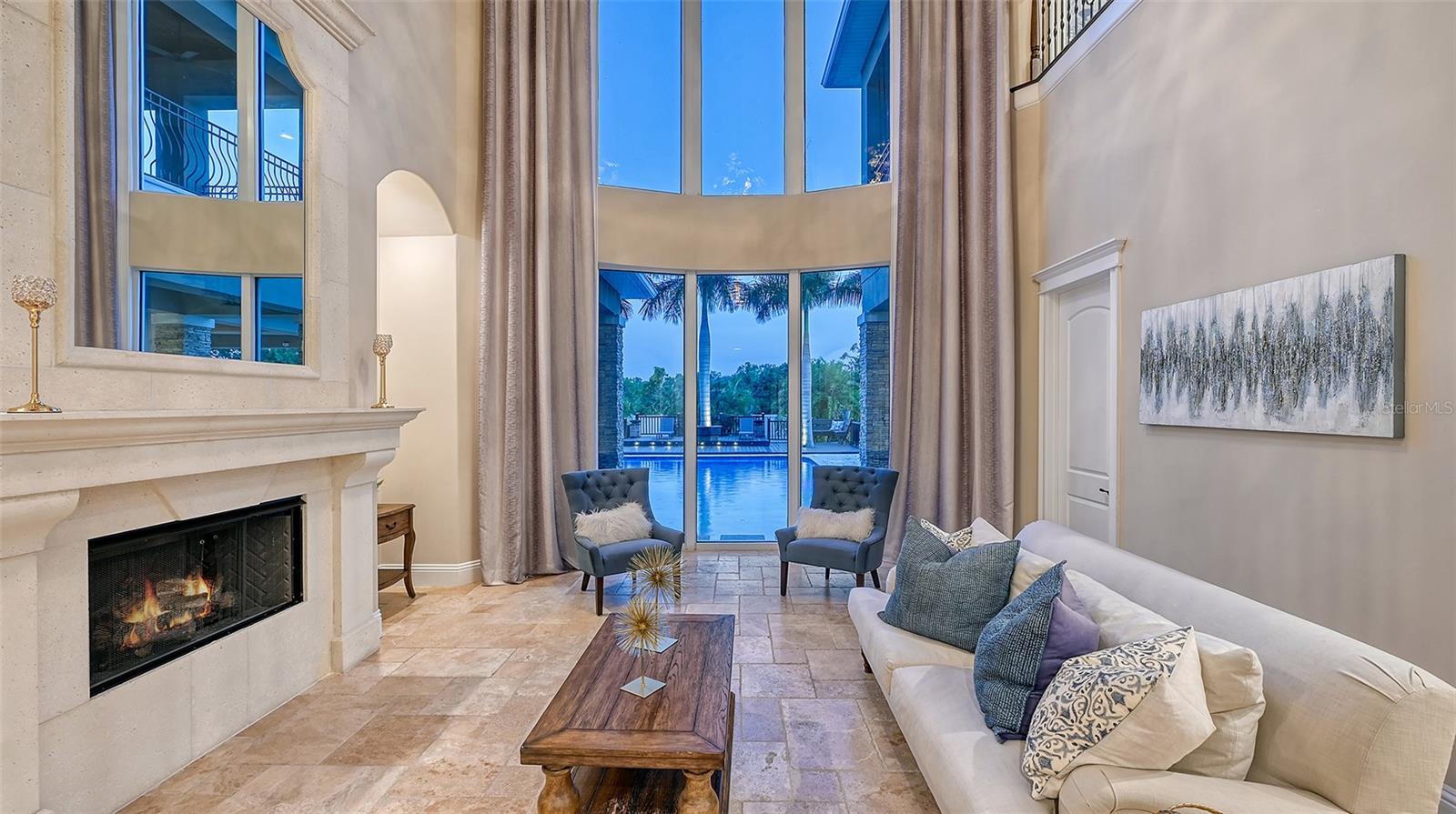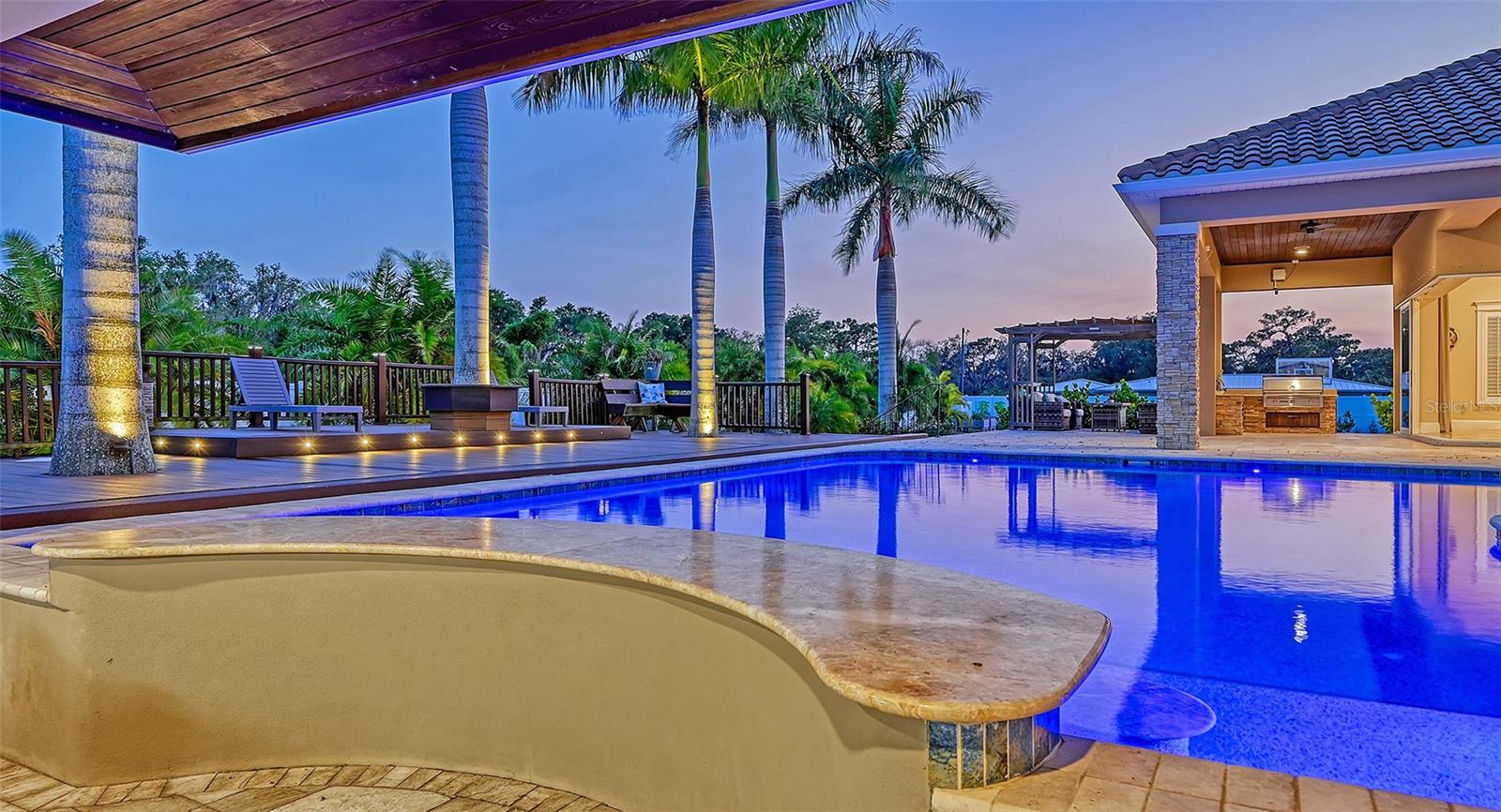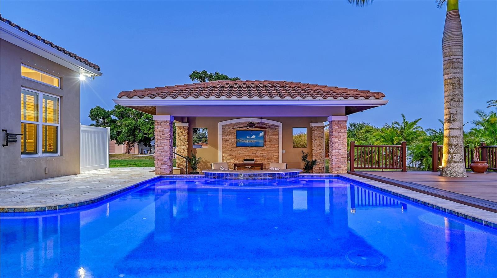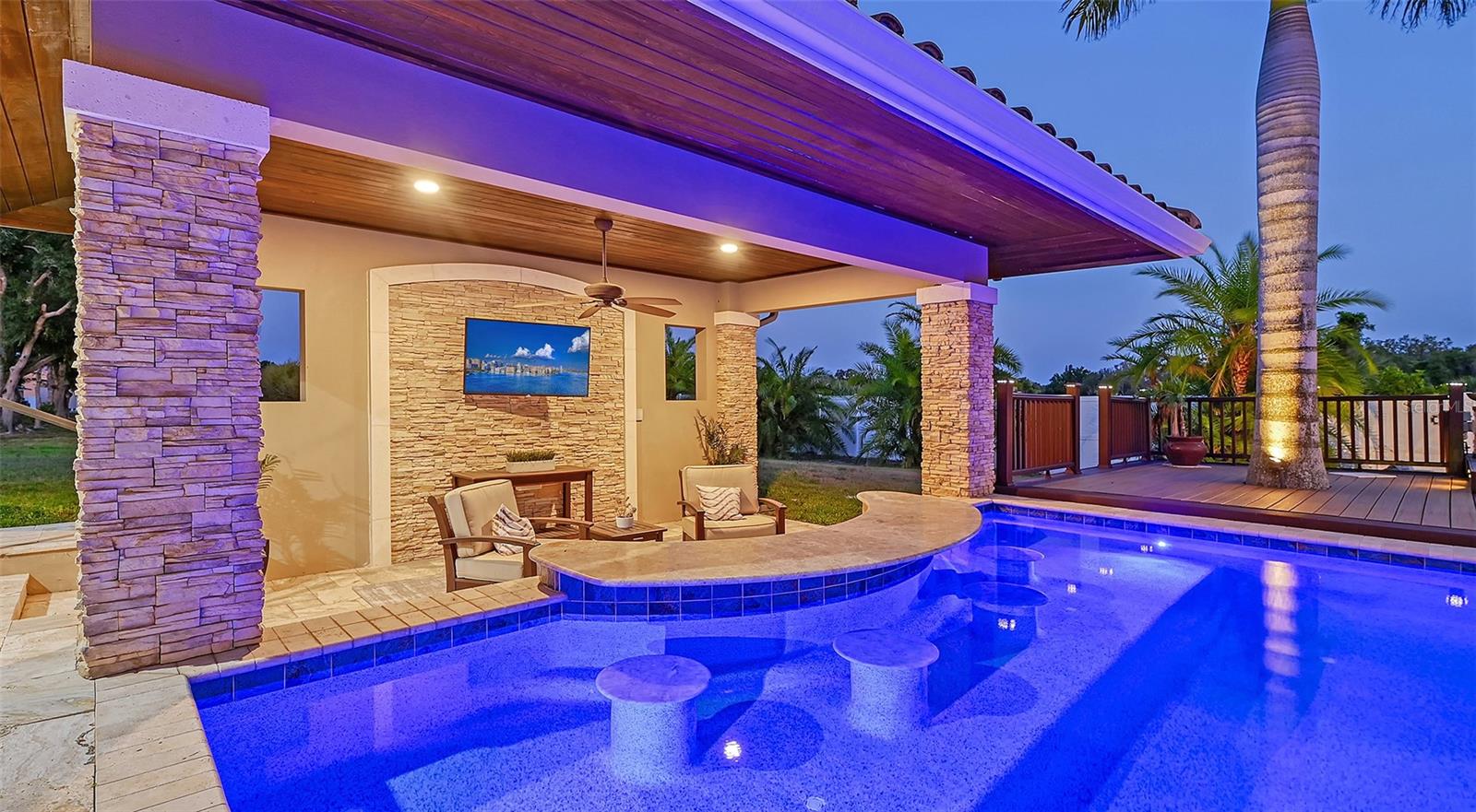 Amid six acres of meticulously landscaped grounds, this estate is a masterpiece, seamlessly blending opulence with tranquility. Beyond the grand iron gate, a sweeping circular driveway beckons, guiding you past enchanting features such as a charming gazebo and a picturesque bridge over a serene koi pond, setting a tone of elegance from the outset. Meticulous attention to detail defines every aspect of this home, from the imposing double iron front doors to the soaring 26-foot living room ceiling enveloped by floor-to-ceiling windows. Architectural marvels await indoors, with a stone gas fireplace serving as a focal point, a winding staircase exuding timeless grandeur and bespoke finishes adding a touch of refinement to every corner. Productivity awaits in the stately office, where rich wood floors bask in natural light, fostering an ambiance of creativity. Entertaining becomes an art form with the sophisticated built-in bar area, replete with an ice maker and glass cabinetry, seamlessly flowing into the dining space adorned with exquisite custom wood beams. Here, a climate-controlled wine room stands ready to cater to the most discerning connoisseurs, featuring a built-in dispenser for indulgence at any hour. The primary suite epitomizes serenity, boasting a spacious seating room with tranquil pool views, and luxurious amenities including custom closets and a spa-worthy primary bath boasting separate sinks, a walk-in shower and a sumptuous soaking tub. Culinary delights await in the gourmet kitchen, outfitted with top-tier appliances including Thermador double ovens and cooktop, Wolf grill and griddle, built-in 48-inch refrigerator, and a convenient pot filler. Exquisite finishes, from exotic stone countertops to custom wood cabinetry, elevate the culinary experience to new heights. Adjacent to the kitchen lies the family room, seamlessly blending indoor and outdoor living through corner pocket sliders that lead to the inviting lounge area. Step outside, and a resort-style oasis unfolds, complete with a sparkling pool, outdoor kitchen and bar-top seating, while an adjacent casita offers further options for relaxation and entertainment. Ascend the staircase to discover an additional bonus room and bar, ideal for intimate gatherings or leisurely evenings. For cinema enthusiasts, the state-of-the-art movie room promises an immersive viewing experience, while three guest suites ensure comfort and privacy for visitors. A built-in library offers a tranquil retreat, complete with a captivating array of books accessible via an attached wooden ladder. Modern conveniences abound, including a comprehensive water purification system with state-of-the-art reverse osmosis technology delivering over 4,000 gallons of pristine water daily from a 2,500-gallon primary tank and two secondary 500-gallon tanks, equipped with filters. A separate garage apartment offers versatility, with an additional bath, covered parking and a kitchenette. An adjacent RV garage, with a full electrical package and a 10-foot fan, provides ample space for recreational vehicles. With its elevated garden, additional shed and a large pond connected by a charming bridge to the koi pond, this estate is a testament to meticulous craftsmanship and unparalleled luxury. In every detail, from the meticulously manicured grounds to the luxurious interiors, this estate is the pinnacle of luxury living. Welcome home to a realm of unparalleled sophistication and refinement.