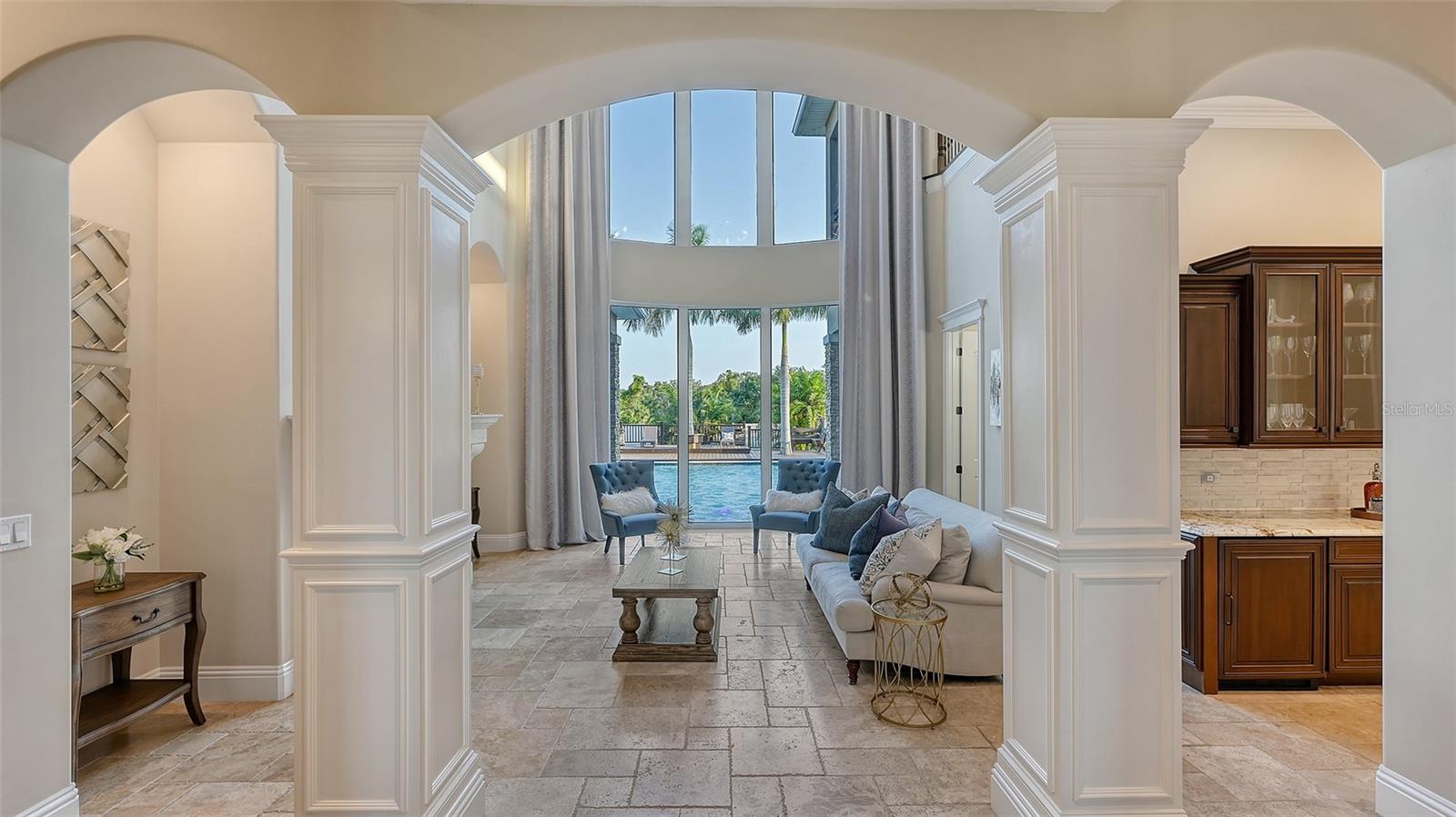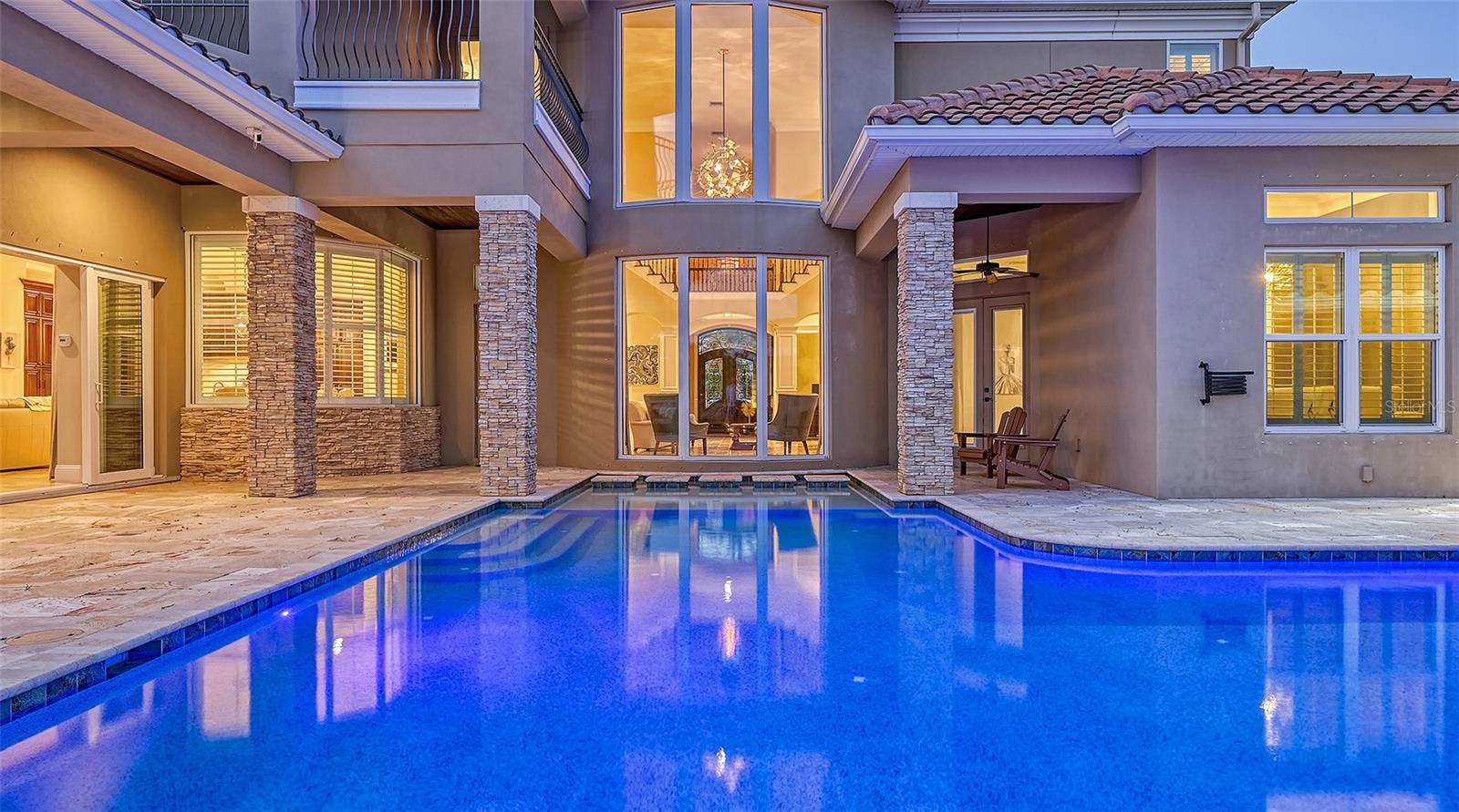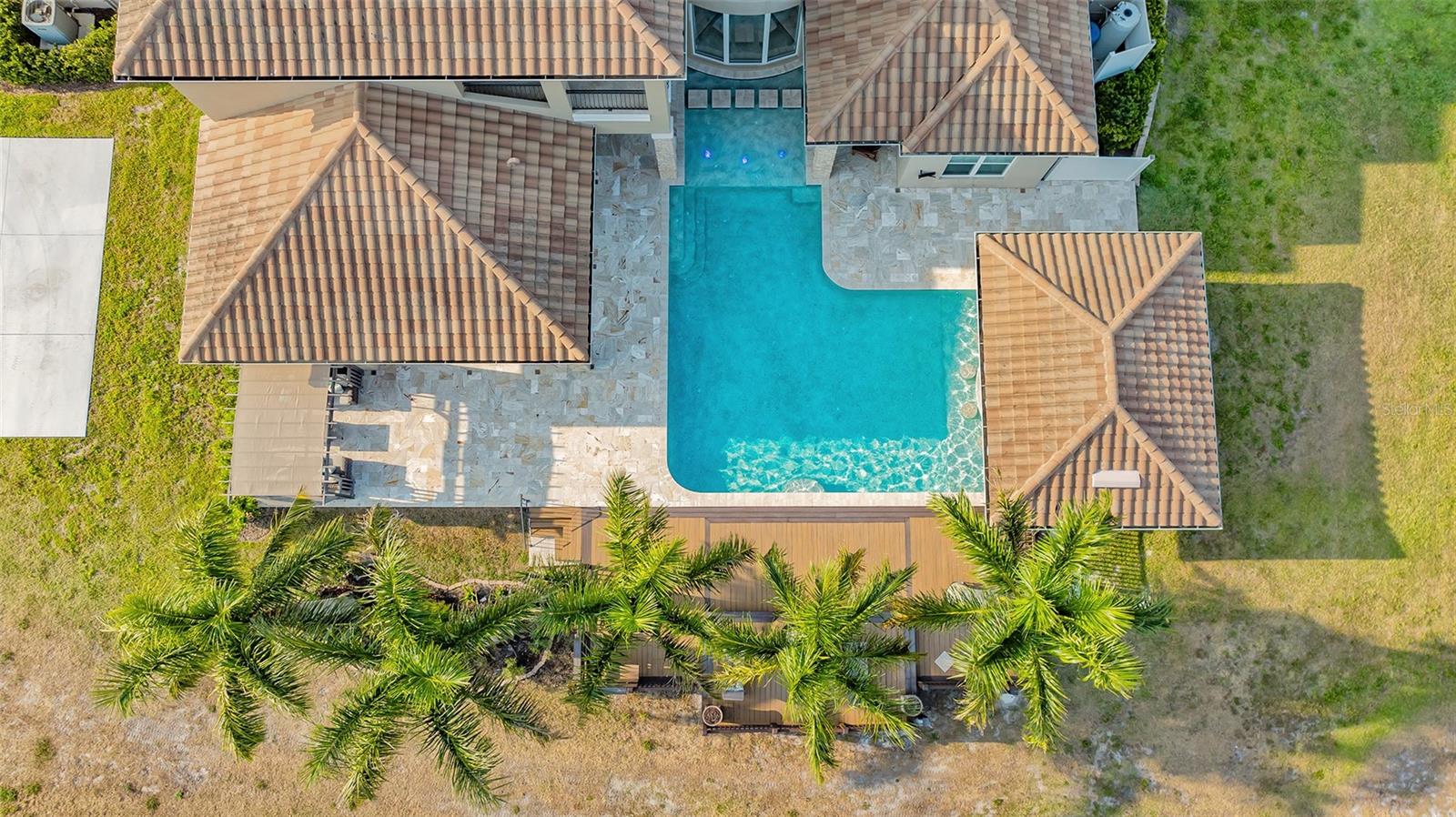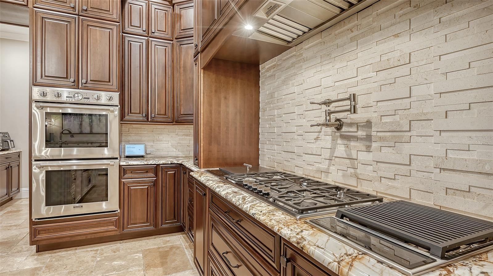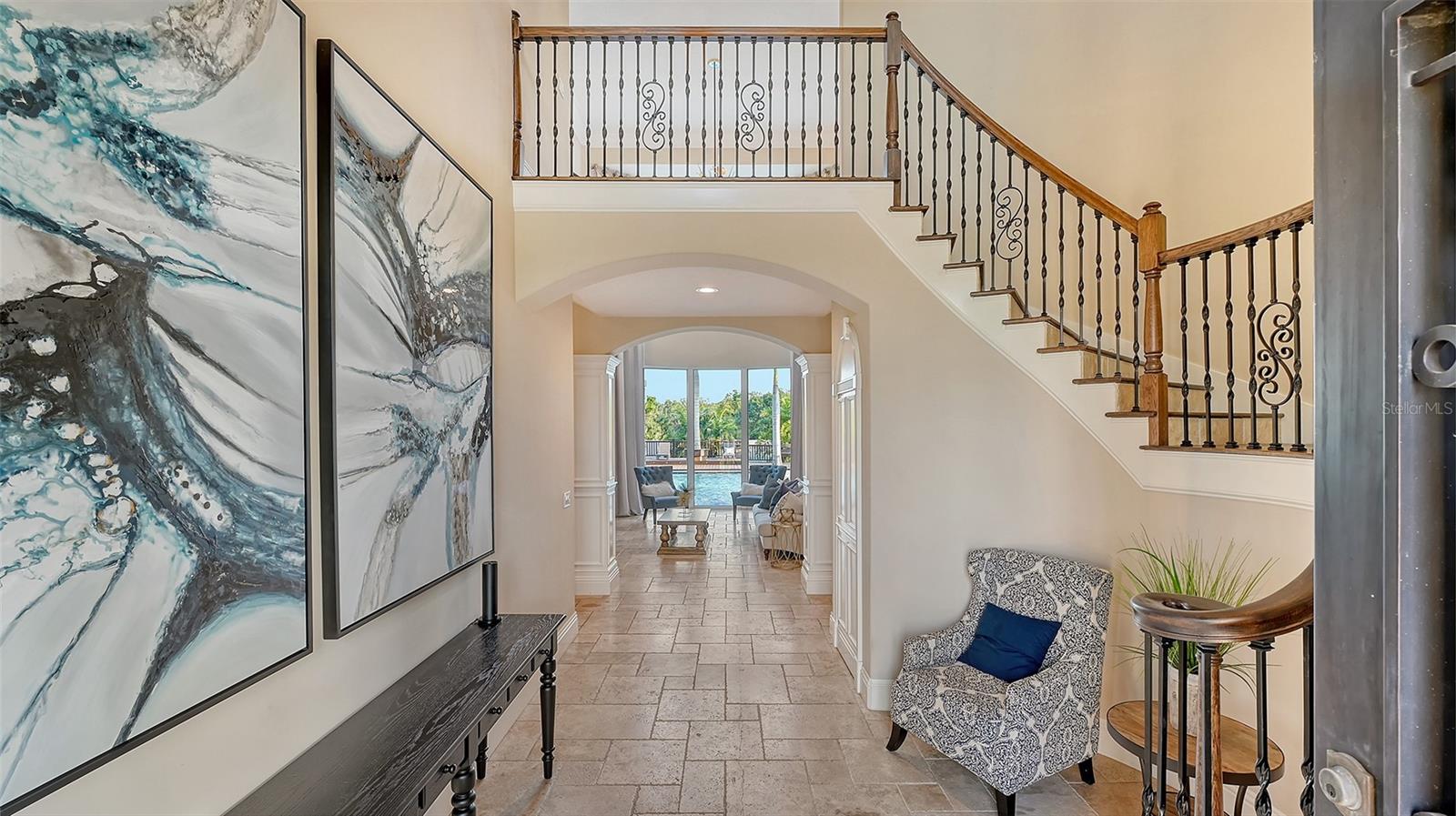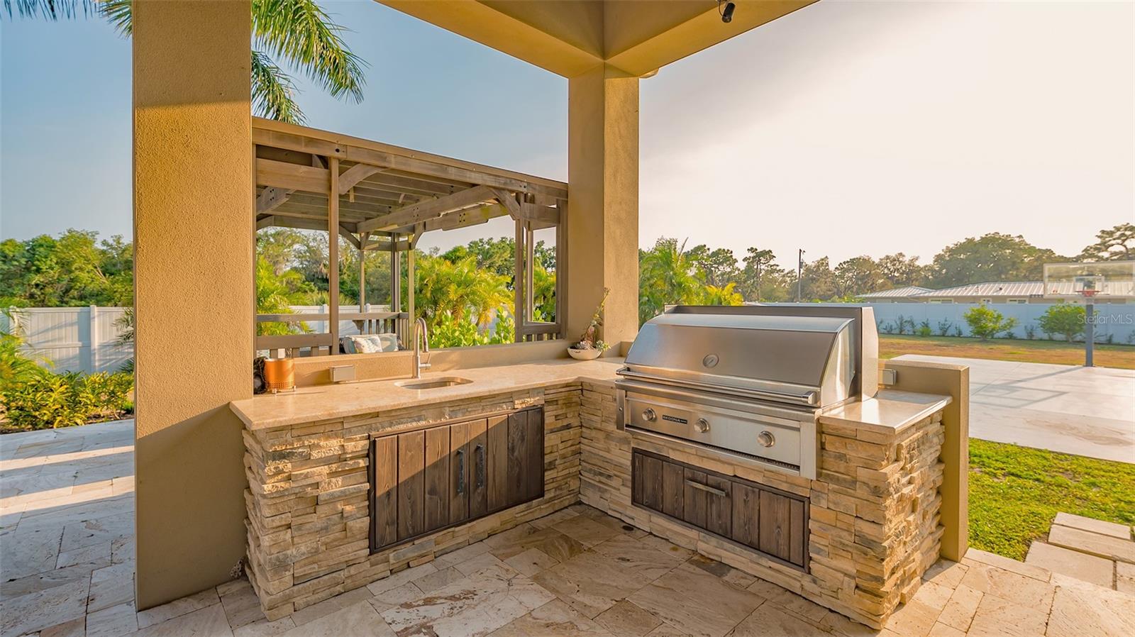 Amid six acres of meticulously landscaped grounds, this estate is a masterpiece, seamlessly blending opulence with tranquility. Beyond the grand iron gate, a sweeping circular driveway beckons, guiding you past enchanting features such as a charming gazebo and a picturesque bridge over a serene koi pond, setting a tone of elegance from the outset. Meticulous attention to detail defines every aspect of this home, from the imposing double iron front doors to the soaring 26-foot living room ceiling enveloped by floor-to-ceiling windows. Architectural marvels await indoors, with a stone gas fireplace serving as a focal point, a winding staircase exuding timeless grandeur and bespoke finishes adding a touch of refinement to every corner. Productivity awaits in the stately office, where rich wood floors bask in natural light, fostering an ambiance of creativity. Entertaining becomes an art form with the sophisticated built-in bar area, replete with an ice maker and glass cabinetry, seamlessly flowing into the dining space adorned with exquisite custom wood beams. Here, a climate-controlled wine room stands ready to cater to the most discerning connoisseurs, featuring a built-in dispenser for indulgence at any hour. The primary suite epitomizes serenity, boasting a spacious seating room with tranquil pool views, and luxurious amenities including custom closets and a spa-worthy primary bath boasting separate sinks, a walk-in shower and a sumptuous soaking tub. Culinary delights await in the gourmet kitchen, outfitted with top-tier appliances including Thermador double ovens and cooktop, Wolf grill and griddle, built-in 48-inch refrigerator, and a convenient pot filler. Exquisite finishes, from exotic stone countertops to custom wood cabinetry, elevate the culinary experience to new heights. Adjacent to the kitchen lies the family room, seamlessly blending indoor and outdoor living through corner pocket sliders that lead to the inviting lounge area. Step outside, and a resort-style oasis unfolds, complete with a sparkling pool, outdoor kitchen and bar-top seating, while an adjacent casita offers further options for relaxation and entertainment. Ascend the staircase to discover an additional bonus room and bar, ideal for intimate gatherings or leisurely evenings. For cinema enthusiasts, the state-of-the-art movie room promises an immersive viewing experience, while three guest suites ensure comfort and privacy for visitors. A built-in library offers a tranquil retreat, complete with a captivating array of books accessible via an attached wooden ladder. Modern conveniences abound, including a comprehensive water purification system with state-of-the-art reverse osmosis technology delivering over 4,000 gallons of pristine water daily from a 2,500-gallon primary tank and two secondary 500-gallon tanks, equipped with filters. A separate garage apartment offers versatility, with an additional bath, covered parking and a kitchenette. An adjacent RV garage, with a full electrical package and a 10-foot fan, provides ample space for recreational vehicles. With its elevated garden, additional shed and a large pond connected by a charming bridge to the koi pond, this estate is a testament to meticulous craftsmanship and unparalleled luxury. In every detail, from the meticulously manicured grounds to the luxurious interiors, this estate is the pinnacle of luxury living. Welcome home to a realm of unparalleled sophistication and refinement.