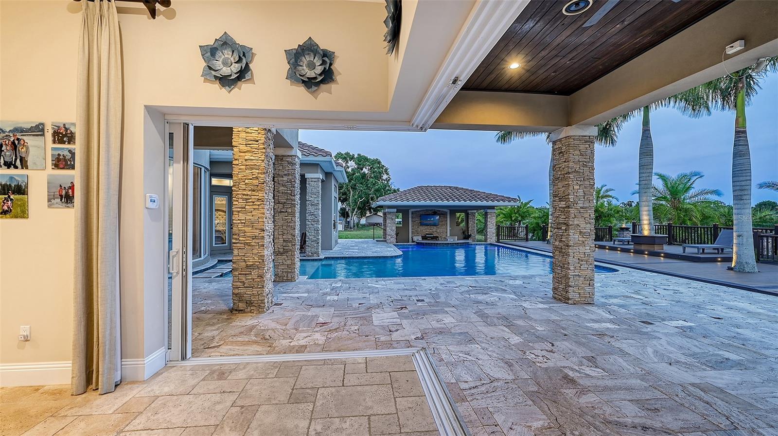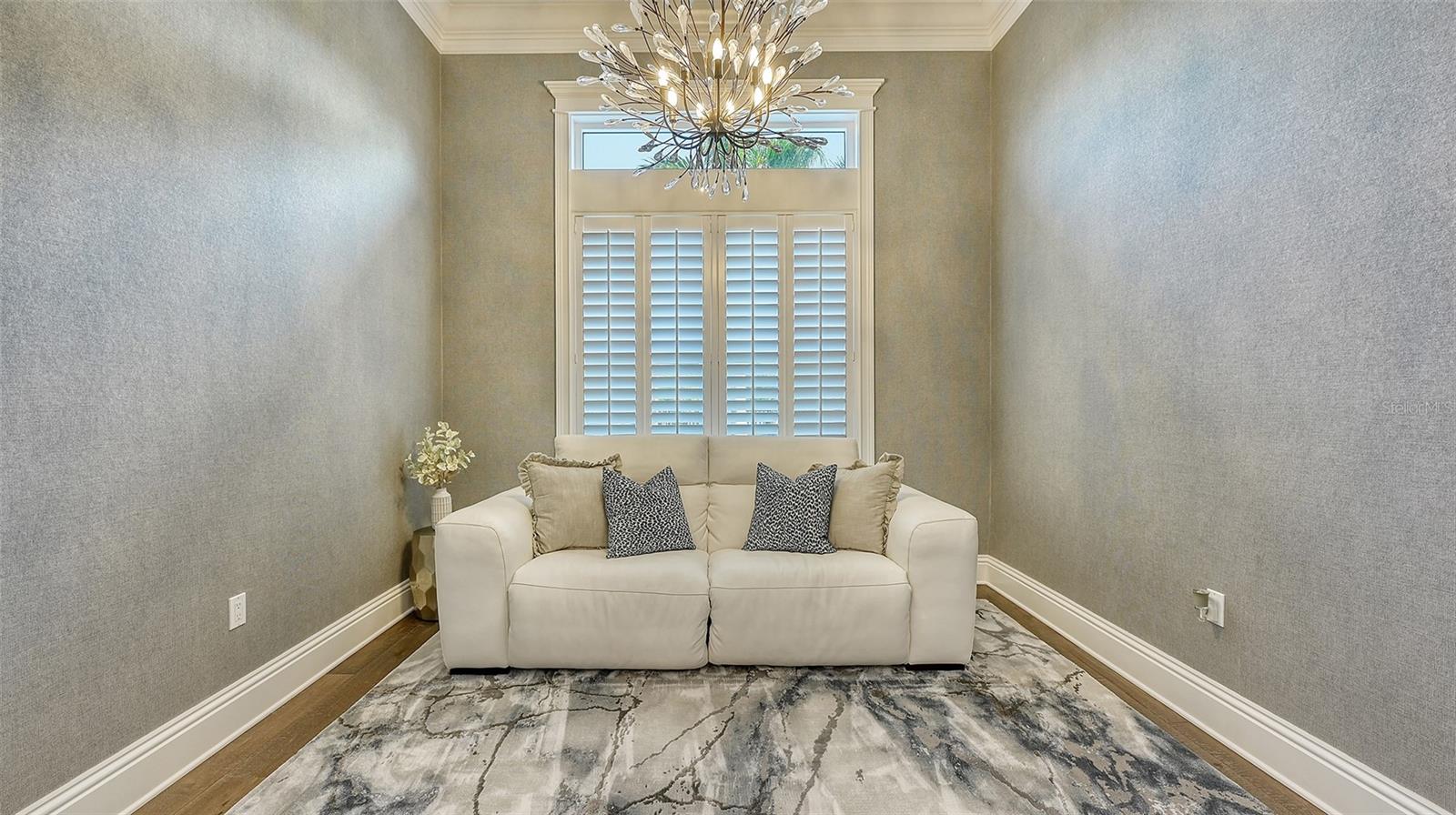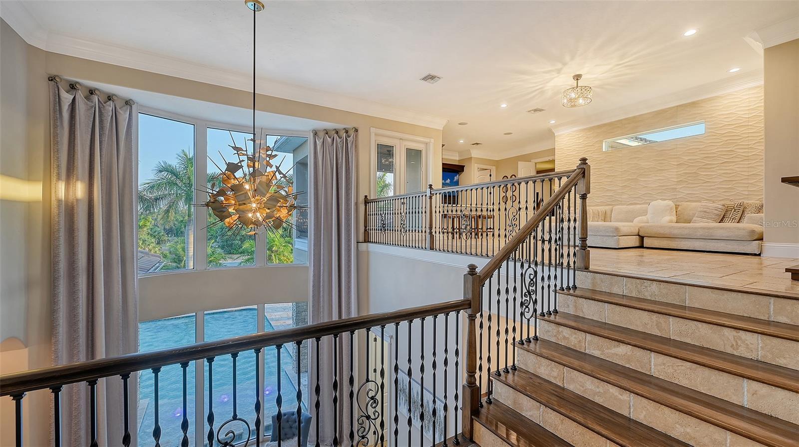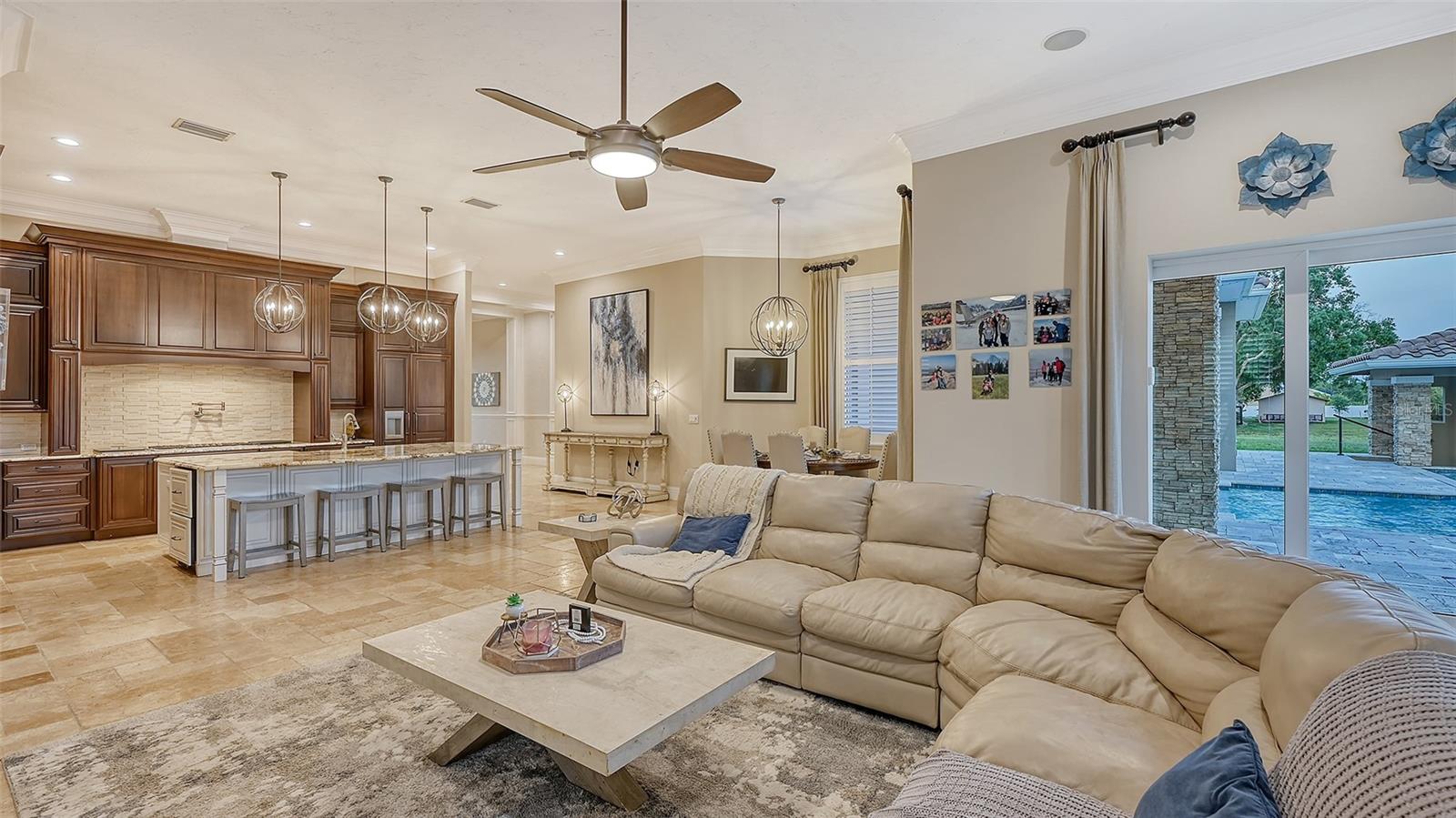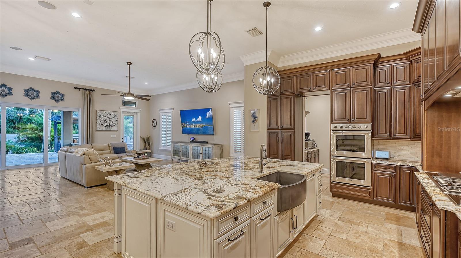 Amid six acres of meticulously landscaped grounds, this estate is a masterpiece, seamlessly blending opulence with tranquility. Beyond the grand iron gate, a sweeping circular driveway beckons, guiding you past enchanting features such as a charming gazebo and a picturesque bridge over a serene koi pond, setting a tone of elegance from the outset. Meticulous attention to detail defines every aspect of this home, from the imposing double iron front doors to the soaring 26-foot living room ceiling enveloped by floor-to-ceiling windows. Architectural marvels await indoors, with a stone gas fireplace serving as a focal point, a winding staircase exuding timeless grandeur and bespoke finishes adding a touch of refinement to every corner. Productivity awaits in the stately office, where rich wood floors bask in natural light, fostering an ambiance of creativity. Entertaining becomes an art form with the sophisticated built-in bar area, replete with an ice maker and glass cabinetry, seamlessly flowing into the dining space adorned with exquisite custom wood beams. Here, a climate-controlled wine room stands ready to cater to the most discerning connoisseurs, featuring a built-in dispenser for indulgence at any hour. The primary suite epitomizes serenity, boasting a spacious seating room with tranquil pool views, and luxurious amenities including custom closets and a spa-worthy primary bath boasting separate sinks, a walk-in shower and a sumptuous soaking tub. Culinary delights await in the gourmet kitchen, outfitted with top-tier appliances including Thermador double ovens and cooktop, Wolf grill and griddle, built-in 48-inch refrigerator, and a convenient pot filler. Exquisite finishes, from exotic stone countertops to custom wood cabinetry, elevate the culinary experience to new heights. Adjacent to the kitchen lies the family room, seamlessly blending indoor and outdoor living through corner pocket sliders that lead to the inviting lounge area. Step outside, and a resort-style oasis unfolds, complete with a sparkling pool, outdoor kitchen and bar-top seating, while an adjacent casita offers further options for relaxation and entertainment. Ascend the staircase to discover an additional bonus room and bar, ideal for intimate gatherings or leisurely evenings. For cinema enthusiasts, the state-of-the-art movie room promises an immersive viewing experience, while three guest suites ensure comfort and privacy for visitors. A built-in library offers a tranquil retreat, complete with a captivating array of books accessible via an attached wooden ladder. Modern conveniences abound, including a comprehensive water purification system with state-of-the-art reverse osmosis technology delivering over 4,000 gallons of pristine water daily from a 2,500-gallon primary tank and two secondary 500-gallon tanks, equipped with filters. A separate garage apartment offers versatility, with an additional bath, covered parking and a kitchenette. An adjacent RV garage, with a full electrical package and a 10-foot fan, provides ample space for recreational vehicles. With its elevated garden, additional shed and a large pond connected by a charming bridge to the koi pond, this estate is a testament to meticulous craftsmanship and unparalleled luxury. In every detail, from the meticulously manicured grounds to the luxurious interiors, this estate is the pinnacle of luxury living. Welcome home to a realm of unparalleled sophistication and refinement.