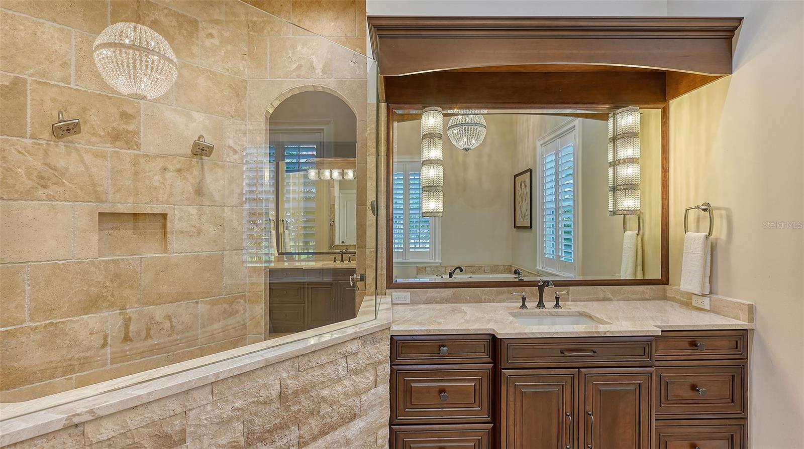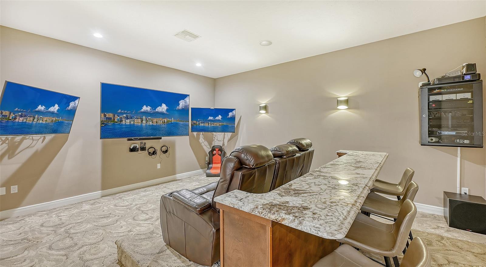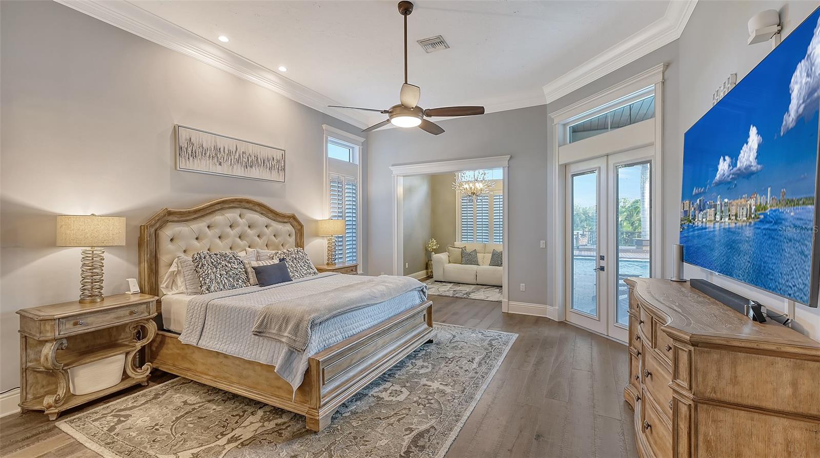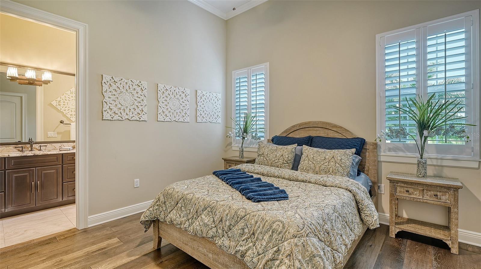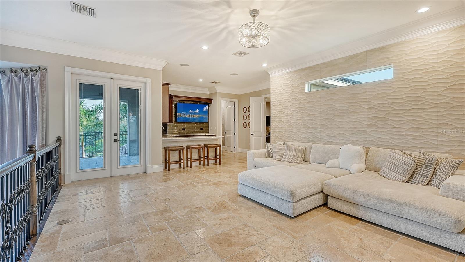 Amid six acres of meticulously landscaped grounds, this estate is a masterpiece, seamlessly blending opulence with tranquility. Beyond the grand iron gate, a sweeping circular driveway beckons, guiding you past enchanting features such as a charming gazebo and a picturesque bridge over a serene koi pond, setting a tone of elegance from the outset. Meticulous attention to detail defines every aspect of this home, from the imposing double iron front doors to the soaring 26-foot living room ceiling enveloped by floor-to-ceiling windows. Architectural marvels await indoors, with a stone gas fireplace serving as a focal point, a winding staircase exuding timeless grandeur and bespoke finishes adding a touch of refinement to every corner. Productivity awaits in the stately office, where rich wood floors bask in natural light, fostering an ambiance of creativity. Entertaining becomes an art form with the sophisticated built-in bar area, replete with an ice maker and glass cabinetry, seamlessly flowing into the dining space adorned with exquisite custom wood beams. Here, a climate-controlled wine room stands ready to cater to the most discerning connoisseurs, featuring a built-in dispenser for indulgence at any hour. The primary suite epitomizes serenity, boasting a spacious seating room with tranquil pool views, and luxurious amenities including custom closets and a spa-worthy primary bath boasting separate sinks, a walk-in shower and a sumptuous soaking tub. Culinary delights await in the gourmet kitchen, outfitted with top-tier appliances including Thermador double ovens and cooktop, Wolf grill and griddle, built-in 48-inch refrigerator, and a convenient pot filler. Exquisite finishes, from exotic stone countertops to custom wood cabinetry, elevate the culinary experience to new heights. Adjacent to the kitchen lies the family room, seamlessly blending indoor and outdoor living through corner pocket sliders that lead to the inviting lounge area. Step outside, and a resort-style oasis unfolds, complete with a sparkling pool, outdoor kitchen and bar-top seating, while an adjacent casita offers further options for relaxation and entertainment. Ascend the staircase to discover an additional bonus room and bar, ideal for intimate gatherings or leisurely evenings. For cinema enthusiasts, the state-of-the-art movie room promises an immersive viewing experience, while three guest suites ensure comfort and privacy for visitors. A built-in library offers a tranquil retreat, complete with a captivating array of books accessible via an attached wooden ladder. Modern conveniences abound, including a comprehensive water purification system with state-of-the-art reverse osmosis technology delivering over 4,000 gallons of pristine water daily from a 2,500-gallon primary tank and two secondary 500-gallon tanks, equipped with filters. A separate garage apartment offers versatility, with an additional bath, covered parking and a kitchenette. An adjacent RV garage, with a full electrical package and a 10-foot fan, provides ample space for recreational vehicles. With its elevated garden, additional shed and a large pond connected by a charming bridge to the koi pond, this estate is a testament to meticulous craftsmanship and unparalleled luxury. In every detail, from the meticulously manicured grounds to the luxurious interiors, this estate is the pinnacle of luxury living. Welcome home to a realm of unparalleled sophistication and refinement.
