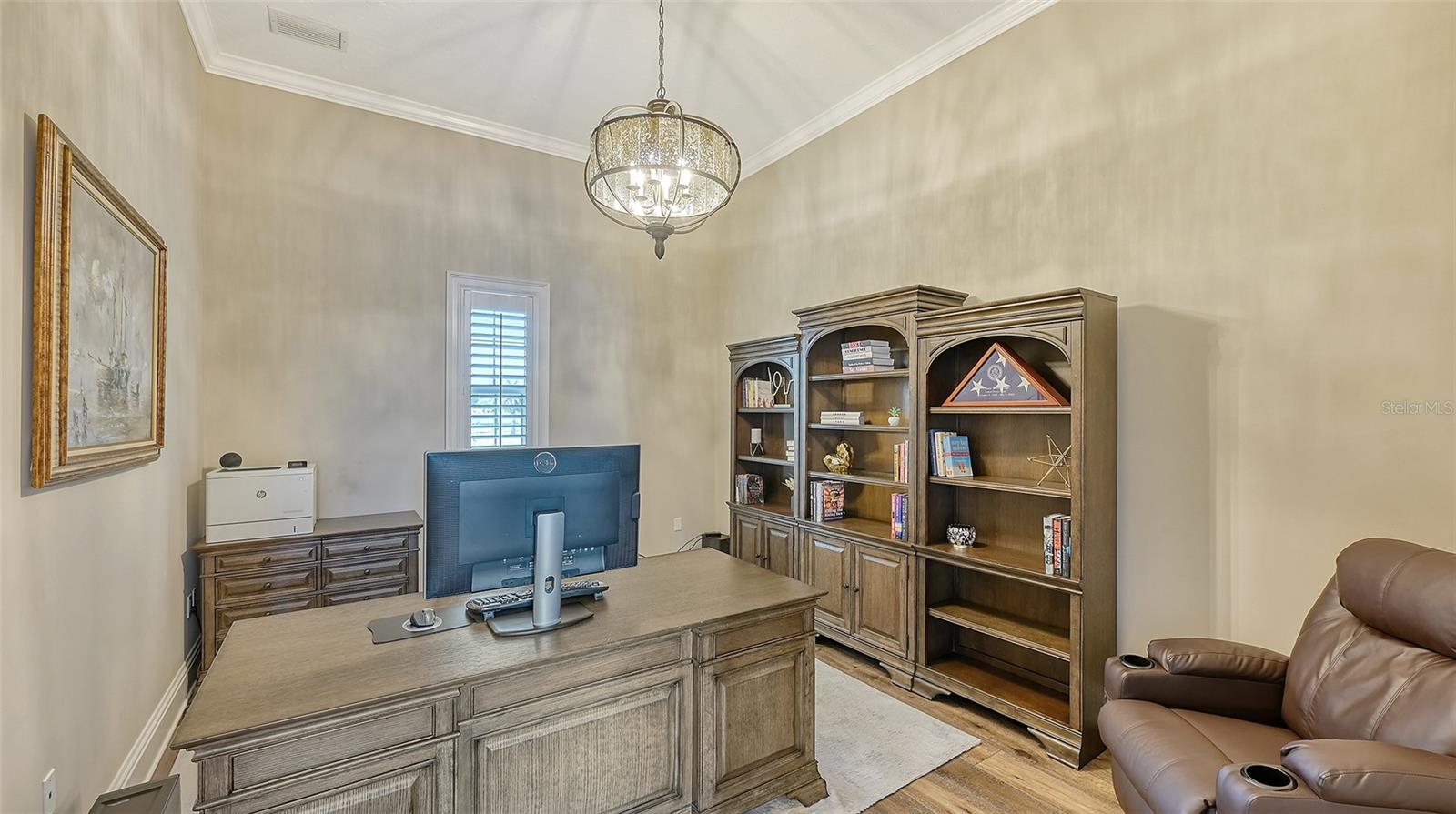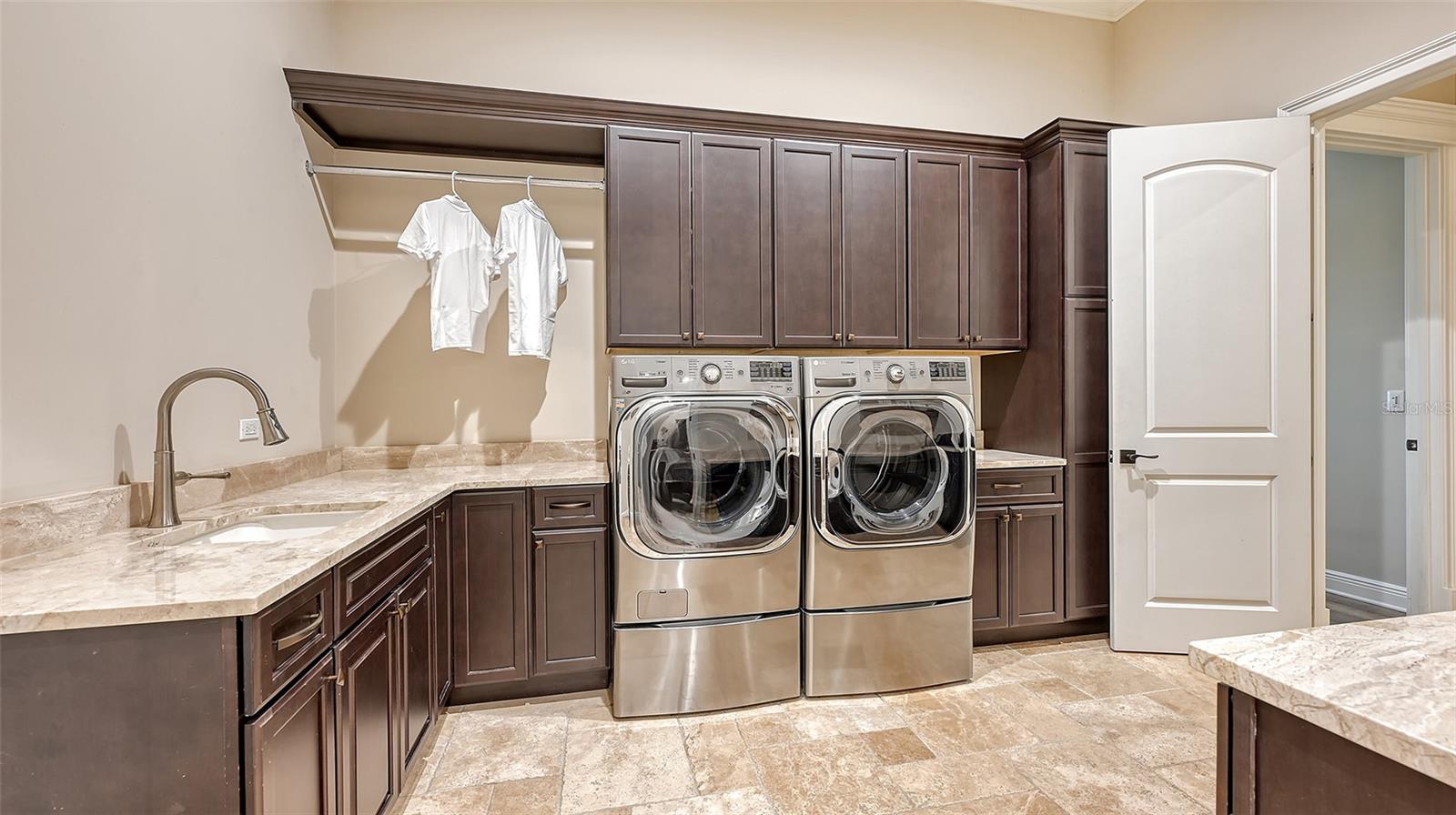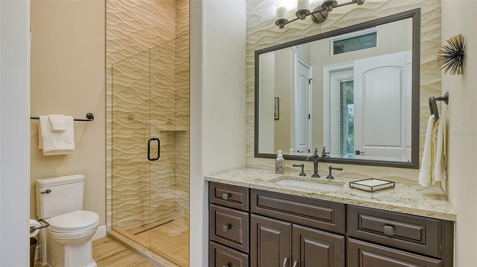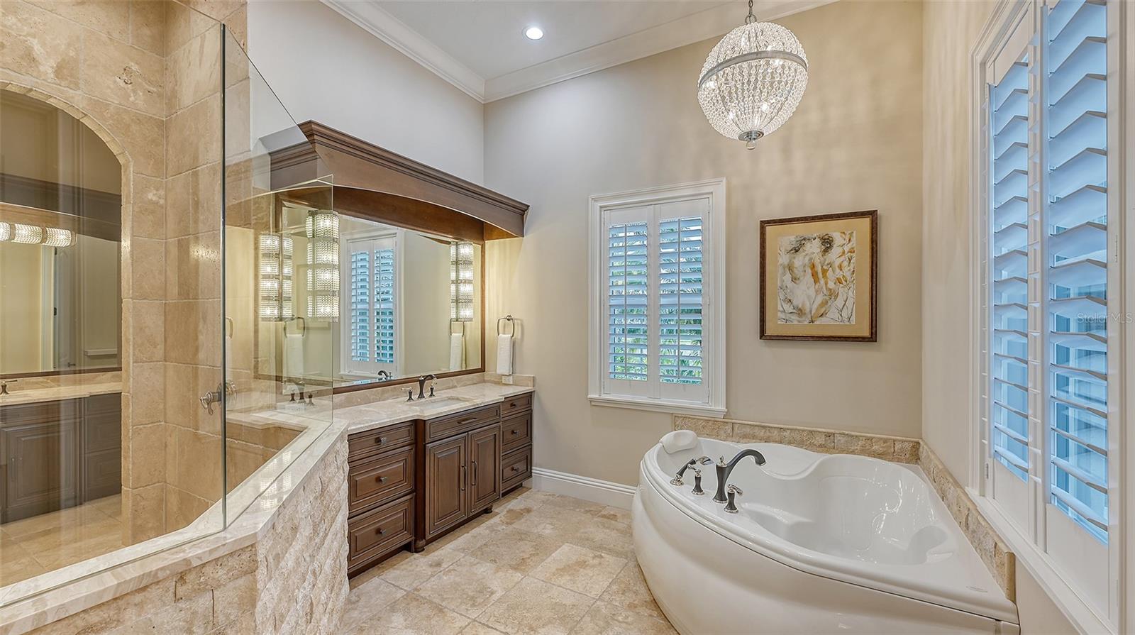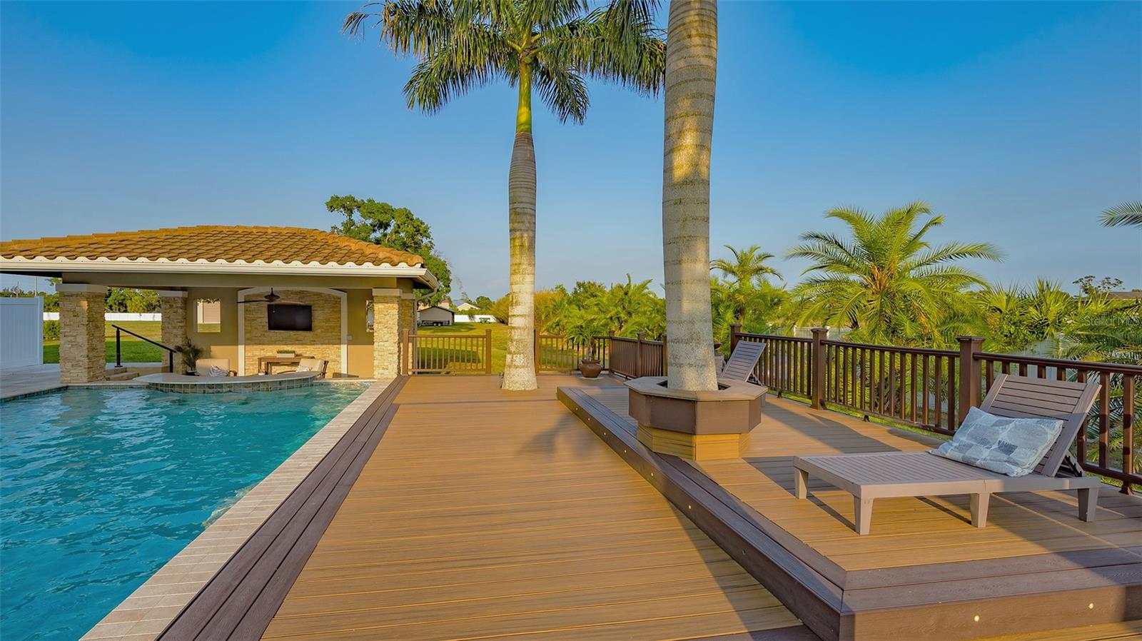 Amid six acres of meticulously landscaped grounds, this estate is a masterpiece, seamlessly blending opulence with tranquility. Beyond the grand iron gate, a sweeping circular driveway beckons, guiding you past enchanting features such as a charming gazebo and a picturesque bridge over a serene koi pond, setting a tone of elegance from the outset. Meticulous attention to detail defines every aspect of this home, from the imposing double iron front doors to the soaring 26-foot living room ceiling enveloped by floor-to-ceiling windows. Architectural marvels await indoors, with a stone gas fireplace serving as a focal point, a winding staircase exuding timeless grandeur and bespoke finishes adding a touch of refinement to every corner. Productivity awaits in the stately office, where rich wood floors bask in natural light, fostering an ambiance of creativity. Entertaining becomes an art form with the sophisticated built-in bar area, replete with an ice maker and glass cabinetry, seamlessly flowing into the dining space adorned with exquisite custom wood beams. Here, a climate-controlled wine room stands ready to cater to the most discerning connoisseurs, featuring a built-in dispenser for indulgence at any hour. The primary suite epitomizes serenity, boasting a spacious seating room with tranquil pool views, and luxurious amenities including custom closets and a spa-worthy primary bath boasting separate sinks, a walk-in shower and a sumptuous soaking tub. Culinary delights await in the gourmet kitchen, outfitted with top-tier appliances including Thermador double ovens and cooktop, Wolf grill and griddle, built-in 48-inch refrigerator, and a convenient pot filler. Exquisite finishes, from exotic stone countertops to custom wood cabinetry, elevate the culinary experience to new heights. Adjacent to the kitchen lies the family room, seamlessly blending indoor and outdoor living through corner pocket sliders that lead to the inviting lounge area. Step outside, and a resort-style oasis unfolds, complete with a sparkling pool, outdoor kitchen and bar-top seating, while an adjacent casita offers further options for relaxation and entertainment. Ascend the staircase to discover an additional bonus room and bar, ideal for intimate gatherings or leisurely evenings. For cinema enthusiasts, the state-of-the-art movie room promises an immersive viewing experience, while three guest suites ensure comfort and privacy for visitors. A built-in library offers a tranquil retreat, complete with a captivating array of books accessible via an attached wooden ladder. Modern conveniences abound, including a comprehensive water purification system with state-of-the-art reverse osmosis technology delivering over 4,000 gallons of pristine water daily from a 2,500-gallon primary tank and two secondary 500-gallon tanks, equipped with filters. A separate garage apartment offers versatility, with an additional bath, covered parking and a kitchenette. An adjacent RV garage, with a full electrical package and a 10-foot fan, provides ample space for recreational vehicles. With its elevated garden, additional shed and a large pond connected by a charming bridge to the koi pond, this estate is a testament to meticulous craftsmanship and unparalleled luxury. In every detail, from the meticulously manicured grounds to the luxurious interiors, this estate is the pinnacle of luxury living. Welcome home to a realm of unparalleled sophistication and refinement.