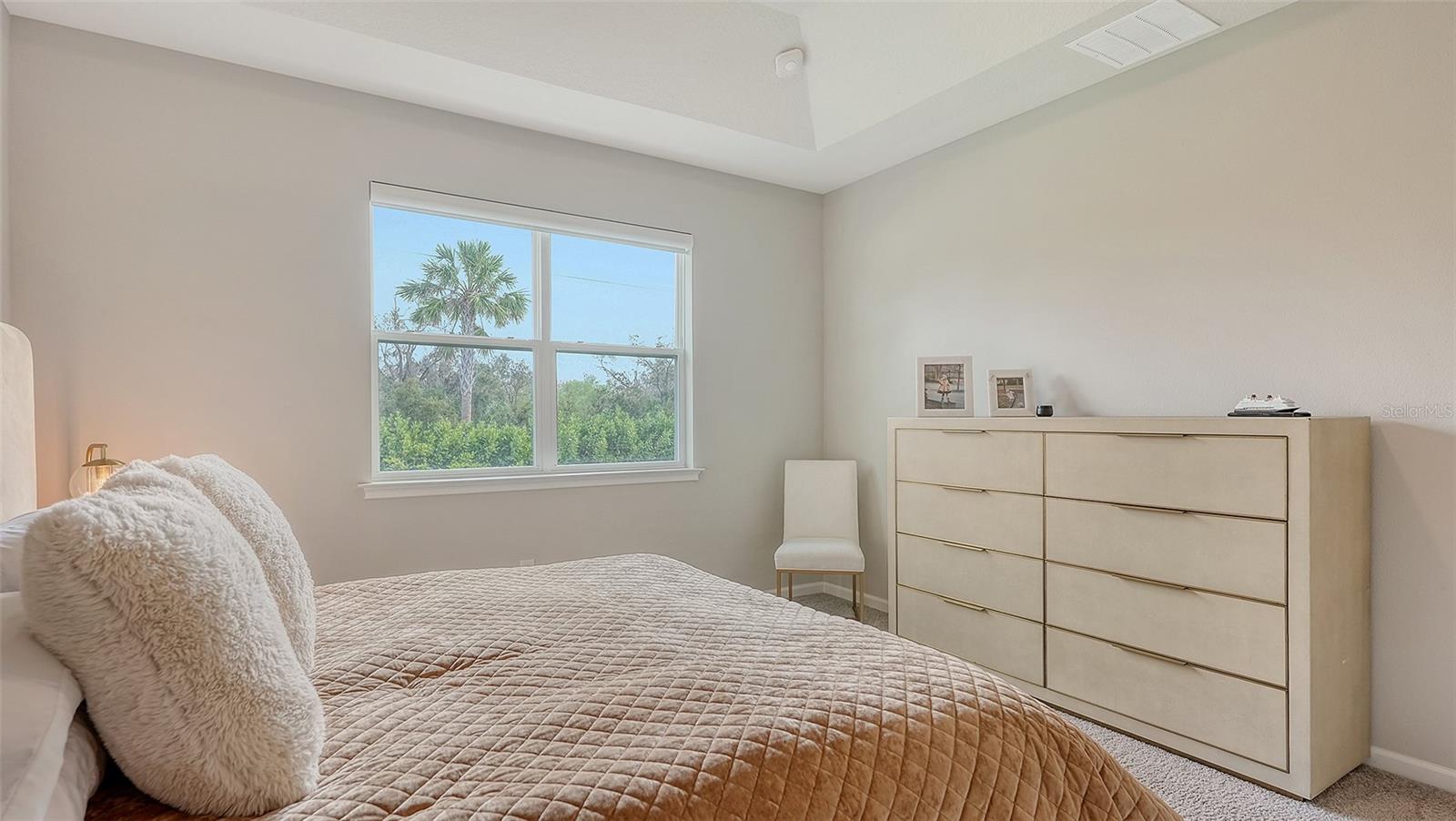 Stunning Paired Villa in Sunrise Preserve – Ideal Location Near Siesta Key! This gorgeous 2-bedroom, 2-bathroom paired villa with a versatile bonus room (currently used as a 3rd bedroom) offers a spacious, split bedroom floor plan and modern upgrades throughout. Built in 2022, this home meets the latest building codes, providing excellent insurance rates and peace of mind. Located just 15 minutes from Siesta Key Beach and 20 minutes to downtown Sarasota, you’re perfectly positioned between the vibrant culture of Sarasota and the serene beauty of Venice. Key Features: Open, Split Bedroom Layout with soaring ceilings and ceramic tile flooring throughout Gourmet Kitchen: Gas range, quartz countertops, custom cabinetry, and a walk-in pantry. Primary Suite: Tray ceiling, large walk-in closet, en-suite bath with double vanity and walk-in shower with tile surround and glass enclosure. Bonus Room: Currently configured as a 3rd bedroom, offering flexible space for your needs. Outdoor Living: Screened lanai with serene nature views. Community Amenities: Sunrise Preserve is an active, gated community with a wealth of amenities including a 5,000 sq. ft. clubhouse, fully-equipped fitness center, resort-style zero-entry pool and spa, two tennis courts, two pickleball courts, two bocce courts, and outdoor grilling and firepit areas. The neighborhood is also adjacent to Palmer Ranch, with easy access to Siesta Key, the Legacy Trail, shopping, dining, and entertainment options. Convenience & Location: Just minutes to nearby shopping, dining, and grocery stores. Close proximity to downtown Sarasota and Venice. This is a rare opportunity to enjoy a luxurious lifestyle in one of Sarasota's most sought-after communities. Don’t miss your chance to make this beautiful home yours!