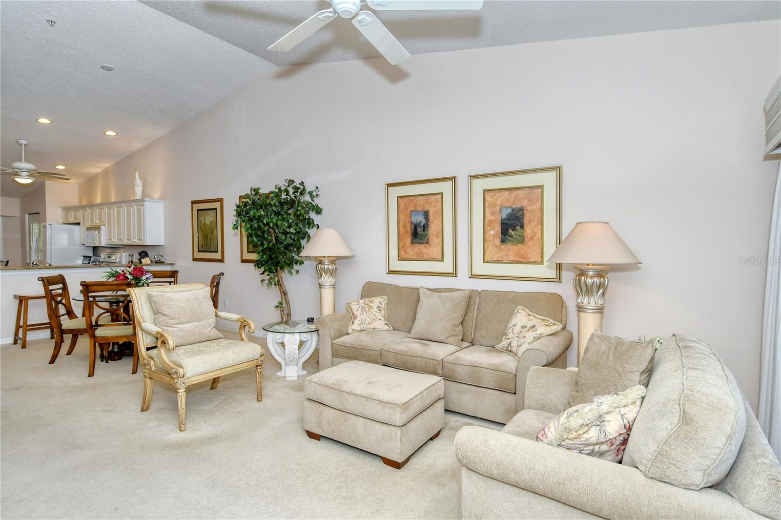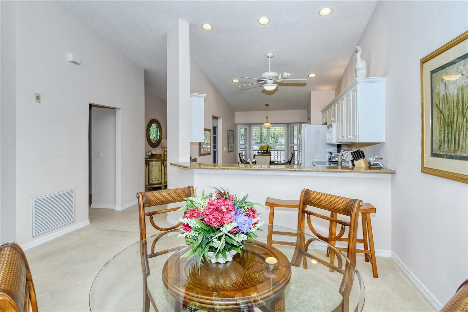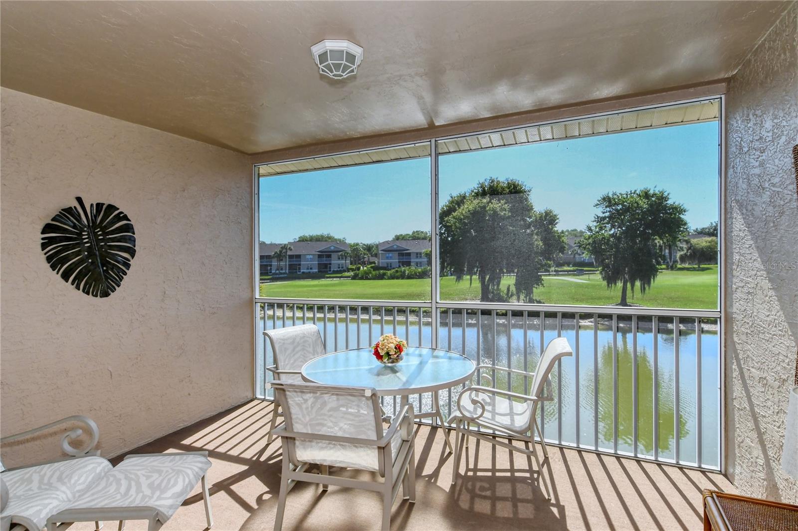 Welcome to Heritage Oaks Golf & Country Club! This exceptionally maintained, second floor Abbey Veranda features some of the most spectacular views of water and the golf course in the entire neighborhood and is being sold Turn-Key Furnished! The property has been lovingly cared for and it shows! The owners just installed a new A/C system in 2023. This wonderful unit has 2 bedrooms, 2 full bathrooms, and a den/study with pocket doors that allow the space to be used as a third bedroom. With over 1,600 square feet, the open floor plan and vaulted ceilings provide tons of natural light while the split layout provides privacy for owners and guests alike. Enjoy a cup of coffee in the morning on your private screened lanai and take in some of the amazing wildlife that call this Certified Audubon Neighborhood their home. Easily entertain guests from the kitchen as it overlooks the dining and living spaces and features beautiful solid surface counter tops and newer appliances. Both bathrooms have been updated with gorgeous countertops, new light fixtures and faucets. The primary bedroom is located towards the rear of the home and has more than enough room for furniture and a king size bed. Heritage Oaks is known for its pristine 18-hole golf course, har-tru tennis courts, fitness center, 24-hour security, an impressive clubhouse with 2 restaurants including the sensational 19th Hole Lounge, 5 heated swimming pools, and a calendar of events packed with activities. Schedule your private showing today!