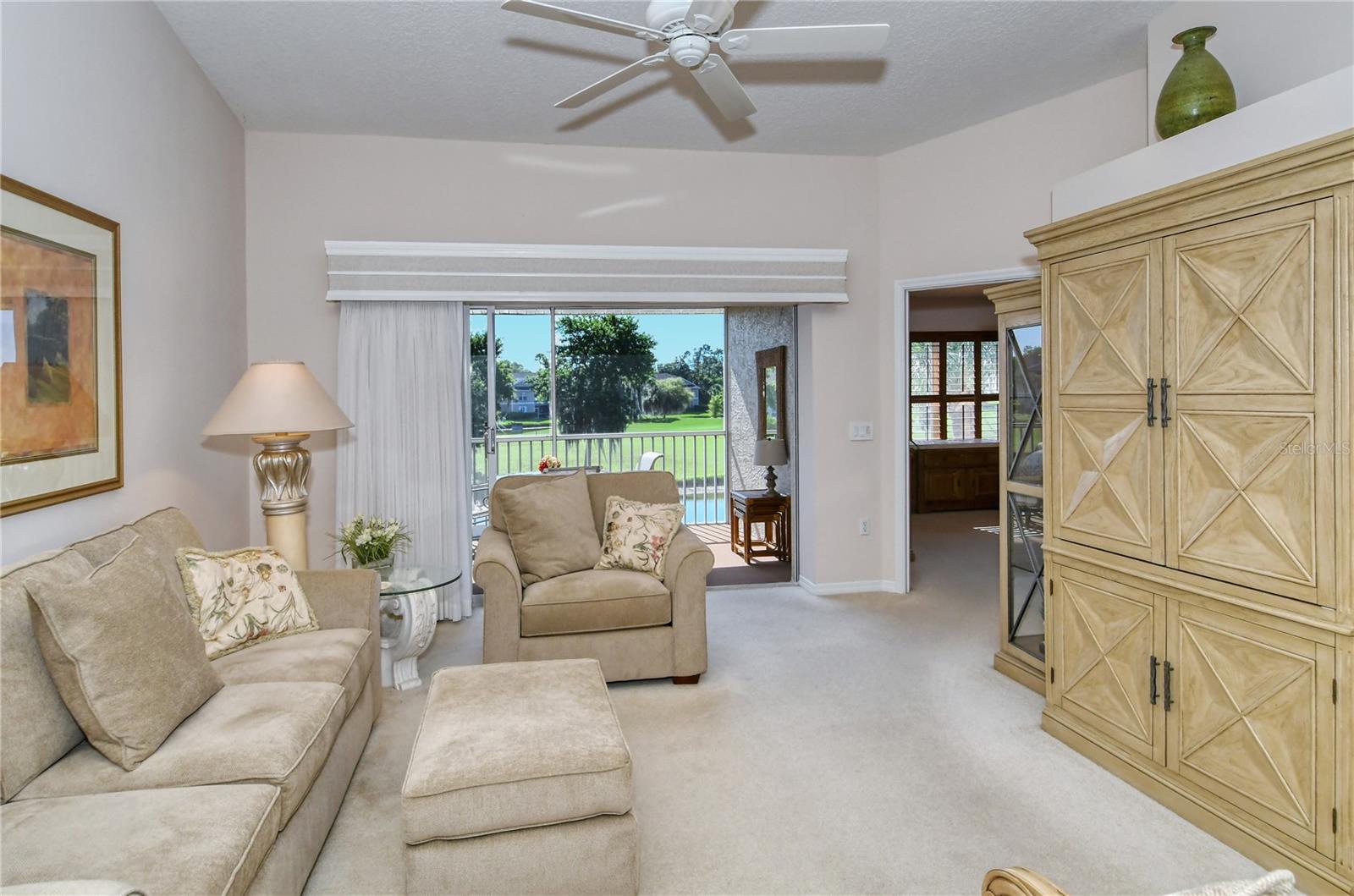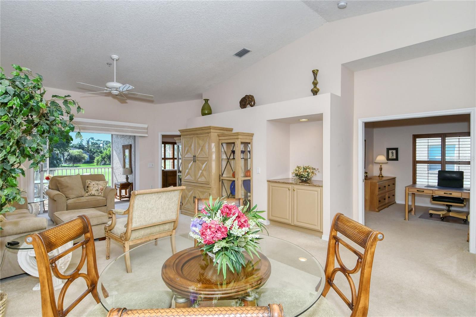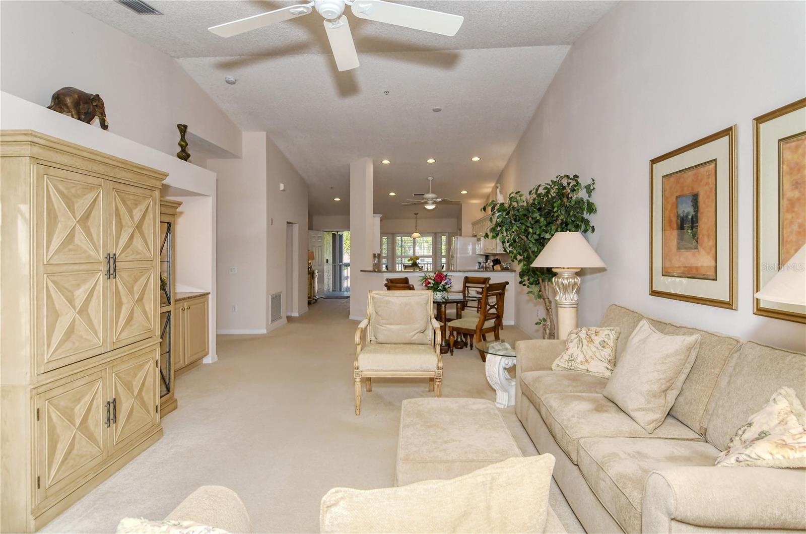 Welcome to Heritage Oaks Golf & Country Club! This exceptionally maintained, second floor Abbey Veranda features some of the most spectacular views of water and the golf course in the entire neighborhood and is being sold Turn-Key Furnished! The property has been lovingly cared for and it shows! The owners just installed a new A/C system in 2023. This wonderful unit has 2 bedrooms, 2 full bathrooms, and a den/study with pocket doors that allow the space to be used as a third bedroom. With over 1,600 square feet, the open floor plan and vaulted ceilings provide tons of natural light while the split layout provides privacy for owners and guests alike. Enjoy a cup of coffee in the morning on your private screened lanai and take in some of the amazing wildlife that call this Certified Audubon Neighborhood their home. Easily entertain guests from the kitchen as it overlooks the dining and living spaces and features beautiful solid surface counter tops and newer appliances. Both bathrooms have been updated with gorgeous countertops, new light fixtures and faucets. The primary bedroom is located towards the rear of the home and has more than enough room for furniture and a king size bed. Heritage Oaks is known for its pristine 18-hole golf course, har-tru tennis courts, fitness center, 24-hour security, an impressive clubhouse with 2 restaurants including the sensational 19th Hole Lounge, 5 heated swimming pools, and a calendar of events packed with activities. Schedule your private showing today!
