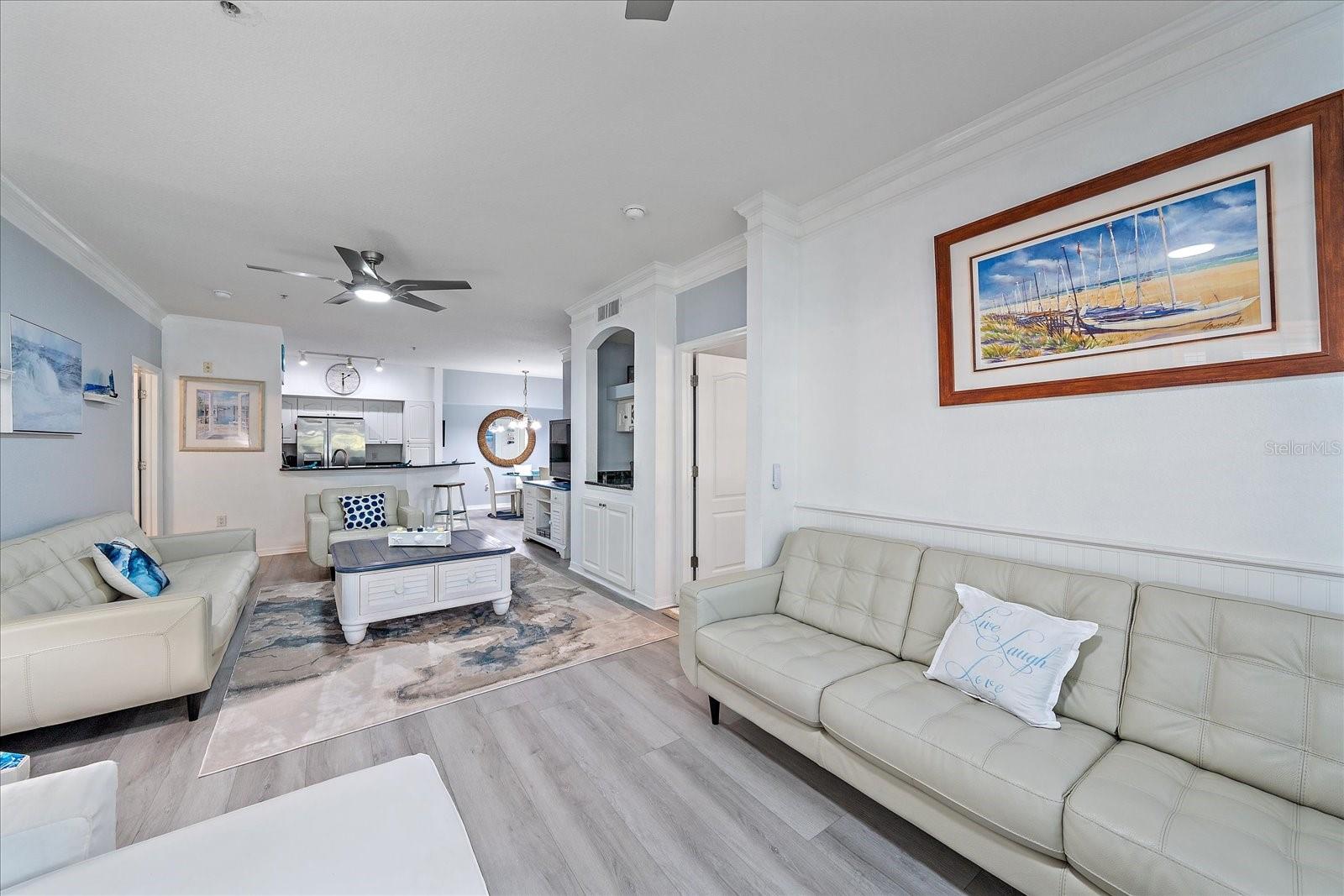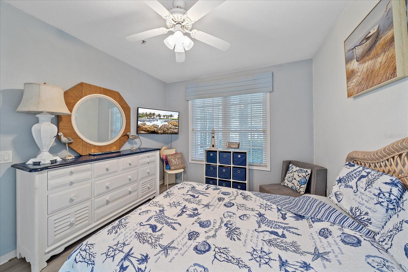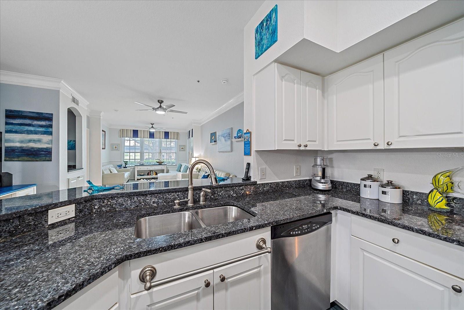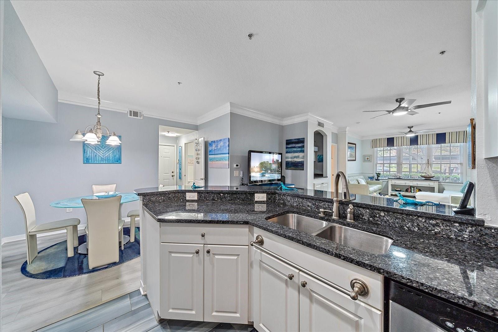 Welcome Home to this fabulous FIRST FLOOR Bella Villino condo with a cool coastal vibe! This MOVE-IN READY 2 BR/2 BA unit makes you feel right at HOME as soon as you step through the front door. Whether you live here seasonally, or full-time the finishes and ATTENTION-TO-DETAIL at every turn are sure to please. Luxury vinyl plank flooring in bedrooms and living areas with coordinating ceramic plank tiles in the kitchen and baths and custom crown-molding are a few special details to note. This home features a SPLIT-PLAN with 2 primary bedrooms each complete with their own WALK-IN-CLOSET and upgraded EN-SUITE, both with large bath tubs, gorgeous GRANITE counters and new fixtures. The large living room and adjacent sitting room offer plenty of space for ENTERTAINING and there is even a dry bar for cocktails in the evening. The modest kitchen features STAINLESS APPLIANCES, plenty of cabinet space, and beautiful dark GRANITE counters with flecks of blue to tie in the beach theme. HURRICANE IMPACT WINDOWS, NEW HVAC 2024 & NEW WATER HEATER 2024! The gated Bella Villino Condominiums are located just a short drive to all that Sarasota has to offer from shopping, dining, and the area's #1 Siesta Key Beach. Unbeatable RESORT STYLE AMENITIES that include: Heated POOL & SPA, Fitness Center, Indoor RACQUETBALL and BASKETBALL courts, TENNIS, Billiards Room, and Business Center. Additionally there is a Car care area, gas grills, and picnic areas to enjoy the FLORIDA LIFESTYLE! Onsite management & maintenance team and ASSIGNED COVERED PARKING with plenty of additional guest parking. (Most furnishings are negotiable on a separate contract.) EASY TO SHOW & PRICED TO SELL! Don't let this little slice of paradise get away!