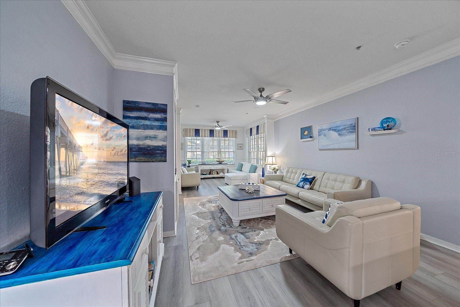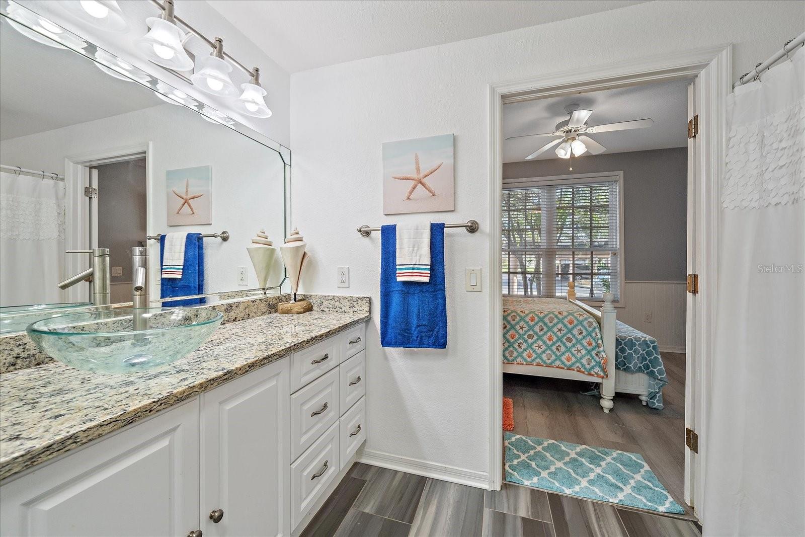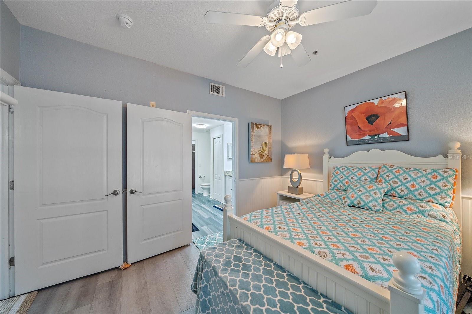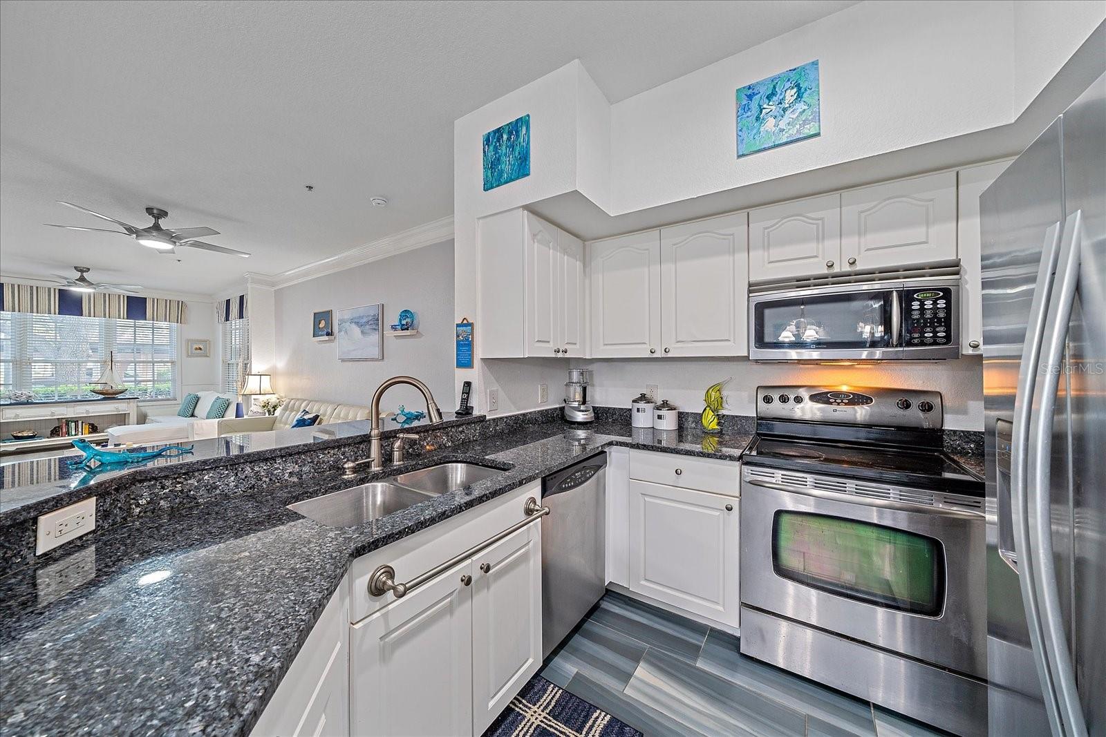 Welcome Home to this fabulous FIRST FLOOR Bella Villino condo with a cool coastal vibe! This MOVE-IN READY 2 BR/2 BA unit makes you feel right at HOME as soon as you step through the front door. Whether you live here seasonally, or full-time the finishes and ATTENTION-TO-DETAIL at every turn are sure to please. Luxury vinyl plank flooring in bedrooms and living areas with coordinating ceramic plank tiles in the kitchen and baths and custom crown-molding are a few special details to note. This home features a SPLIT-PLAN with 2 primary bedrooms each complete with their own WALK-IN-CLOSET and upgraded EN-SUITE, both with large bath tubs, gorgeous GRANITE counters and new fixtures. The large living room and adjacent sitting room offer plenty of space for ENTERTAINING and there is even a dry bar for cocktails in the evening. The modest kitchen features STAINLESS APPLIANCES, plenty of cabinet space, and beautiful dark GRANITE counters with flecks of blue to tie in the beach theme. HURRICANE IMPACT WINDOWS, NEW HVAC 2024 & NEW WATER HEATER 2024! The gated Bella Villino Condominiums are located just a short drive to all that Sarasota has to offer from shopping, dining, and the area's #1 Siesta Key Beach. Unbeatable RESORT STYLE AMENITIES that include: Heated POOL & SPA, Fitness Center, Indoor RACQUETBALL and BASKETBALL courts, TENNIS, Billiards Room, and Business Center. Additionally there is a Car care area, gas grills, and picnic areas to enjoy the FLORIDA LIFESTYLE! Onsite management & maintenance team and ASSIGNED COVERED PARKING with plenty of additional guest parking. (Most furnishings are negotiable on a separate contract.) EASY TO SHOW & PRICED TO SELL! Don't let this little slice of paradise get away!