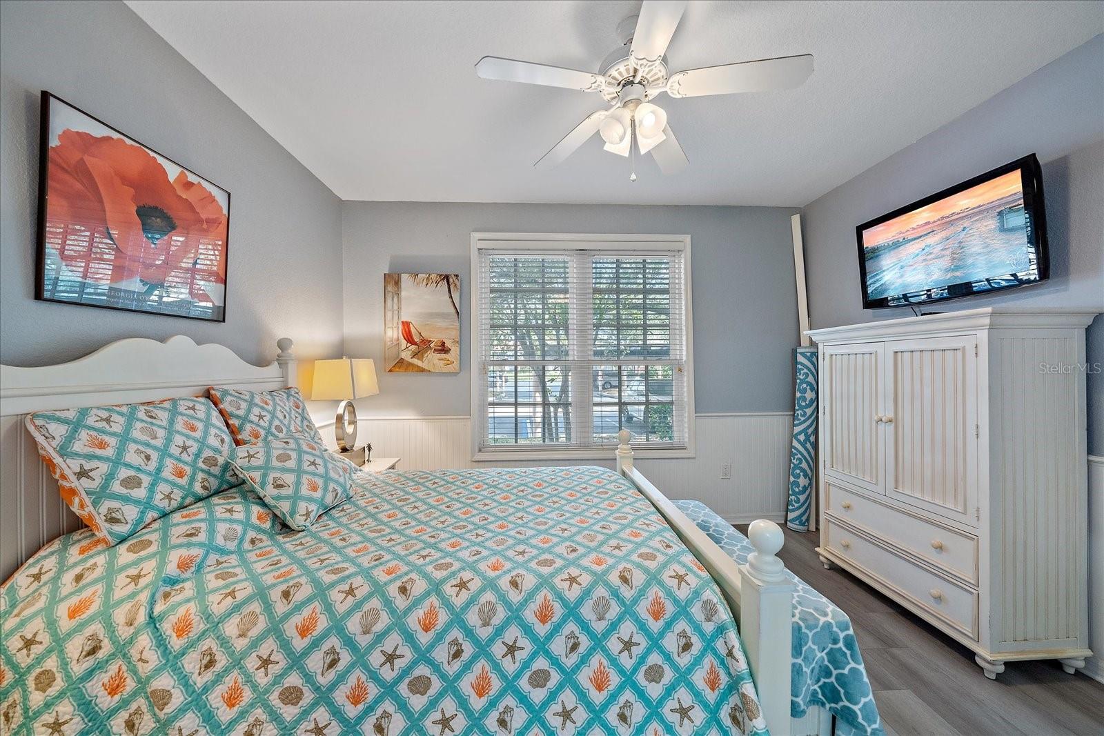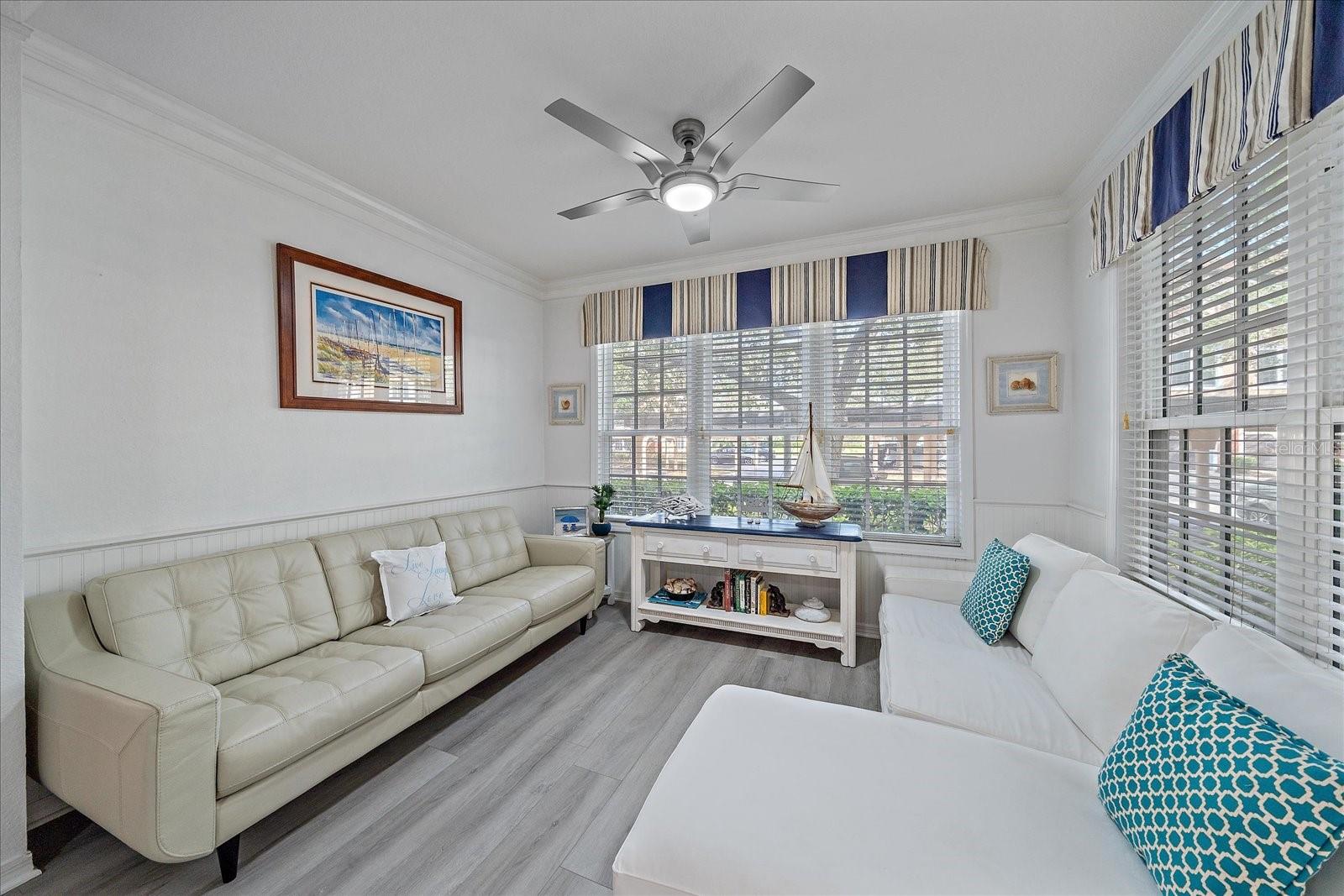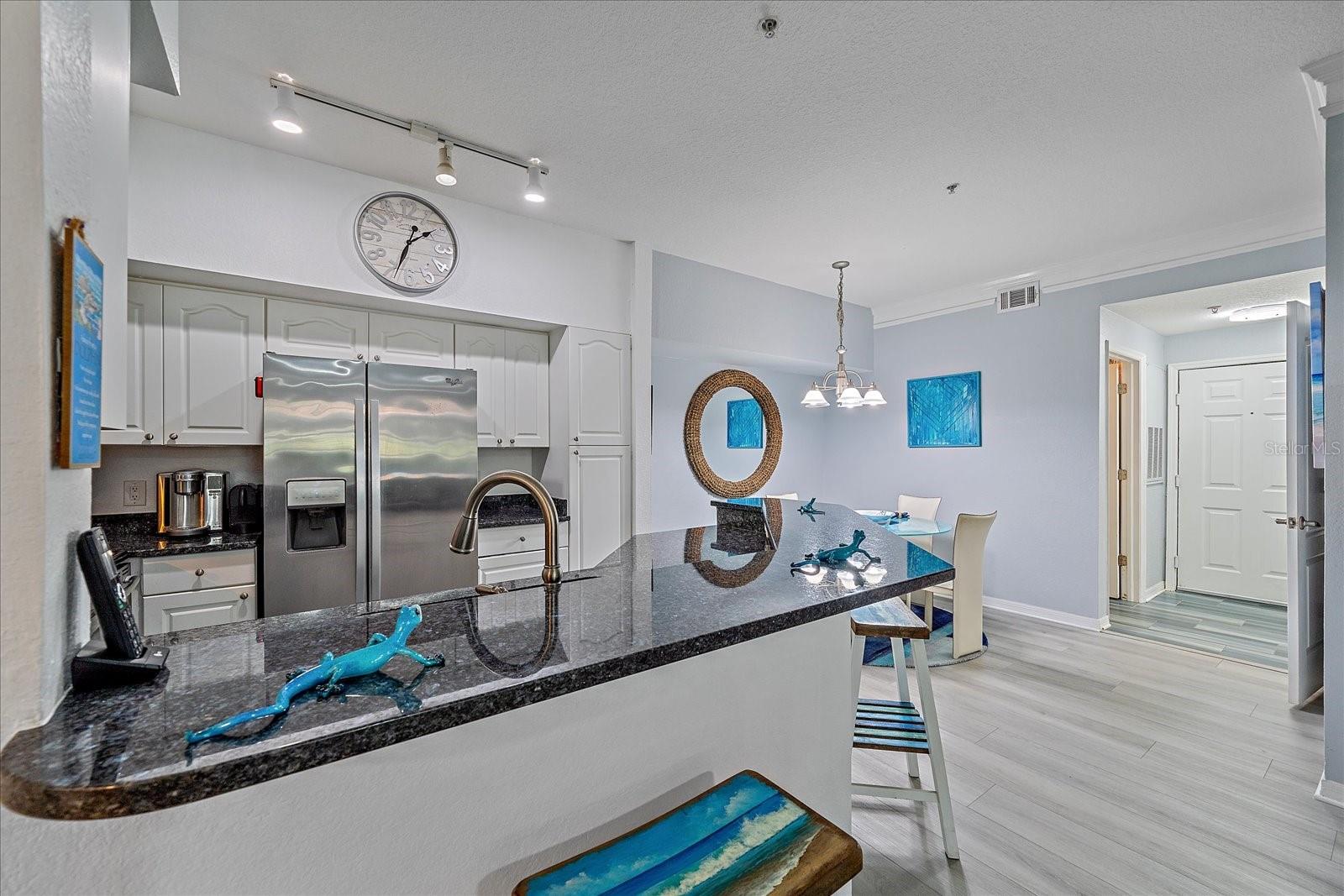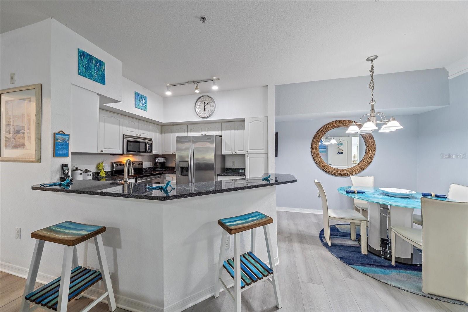 Welcome Home to this fabulous FIRST FLOOR Bella Villino condo with a cool coastal vibe! This MOVE-IN READY 2 BR/2 BA unit makes you feel right at HOME as soon as you step through the front door. Whether you live here seasonally, or full-time the finishes and ATTENTION-TO-DETAIL at every turn are sure to please. Luxury vinyl plank flooring in bedrooms and living areas with coordinating ceramic plank tiles in the kitchen and baths and custom crown-molding are a few special details to note. This home features a SPLIT-PLAN with 2 primary bedrooms each complete with their own WALK-IN-CLOSET and upgraded EN-SUITE, both with large bath tubs, gorgeous GRANITE counters and new fixtures. The large living room and adjacent sitting room offer plenty of space for ENTERTAINING and there is even a dry bar for cocktails in the evening. The modest kitchen features STAINLESS APPLIANCES, plenty of cabinet space, and beautiful dark GRANITE counters with flecks of blue to tie in the beach theme. HURRICANE IMPACT WINDOWS, NEW HVAC 2024 & NEW WATER HEATER 2024! The gated Bella Villino Condominiums are located just a short drive to all that Sarasota has to offer from shopping, dining, and the area's #1 Siesta Key Beach. Unbeatable RESORT STYLE AMENITIES that include: Heated POOL & SPA, Fitness Center, Indoor RACQUETBALL and BASKETBALL courts, TENNIS, Billiards Room, and Business Center. Additionally there is a Car care area, gas grills, and picnic areas to enjoy the FLORIDA LIFESTYLE! Onsite management & maintenance team and ASSIGNED COVERED PARKING with plenty of additional guest parking. (Most furnishings are negotiable on a separate contract.) EASY TO SHOW & PRICED TO SELL! Don't let this little slice of paradise get away!