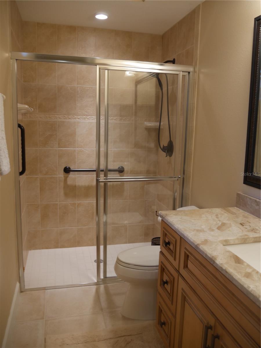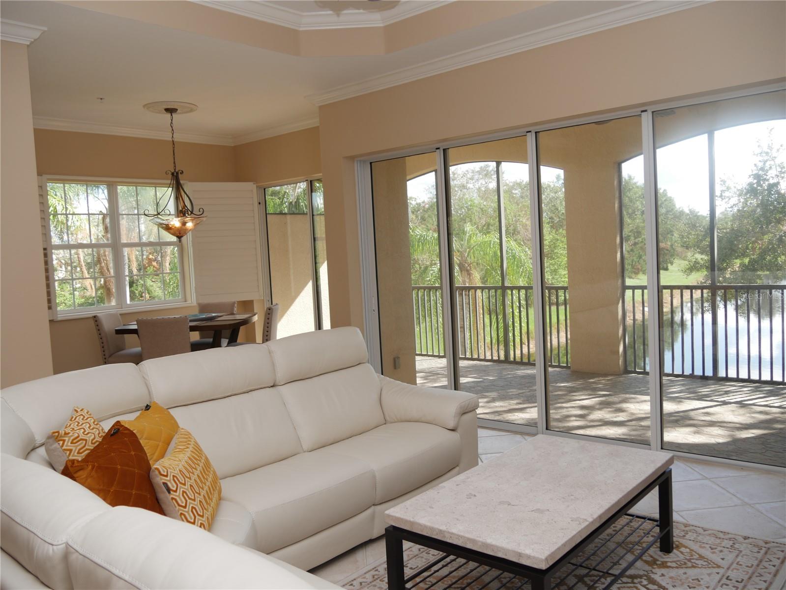 This STUNNINGLY RENOVATED, LAKEFRONT, second floor, end unit in GATED "BOTANICA ON PALMER RANCH" is ready for a new owner! The rarely available "Wisteria" plan, at 2,288 square feet, is the largest of the floor plans in this beautiful, well-maintained community and boasts 2-ENSUITE bedrooms plus a DEN, an additional bonus or flex space, 2 1/2 baths, a 2-car garage, and a PRIVATE ELEVATOR! You will truly appreciate this thoughtfully renovated home with its timeless Ray Routh kitchen and unique HIGH-END GRANITE in the kitchen and laundry room, along with the elegant MARBLE counters in the two full baths! Upgrades include all the lighting and ceiling fans throughout, new porcelain wood plank tile in the bedrooms and den, with unique stone tile on the screened lanai. In the ensuite baths and laundry room, the sinks and plumbing fixtures have been upgraded and custom cabinetry and custom mirrors installed. This home offers privacy, gorgeous lake and landscape views, a NEW ROOF (2023), and the building (including doors and railings) was freshly painted in June 2024. No assessments were needed due to the abundant Reserve funds!Take a look and fall in love!
