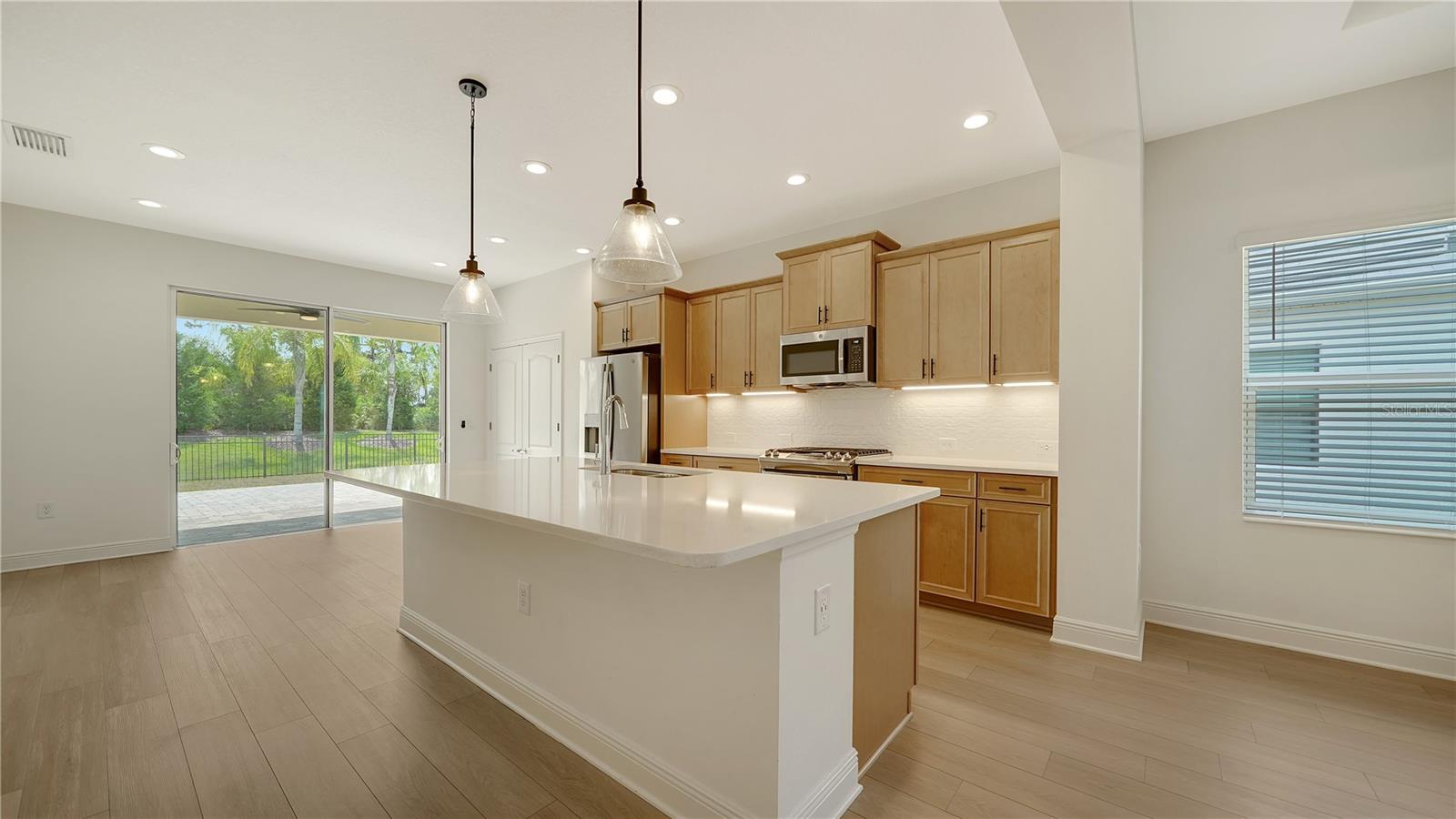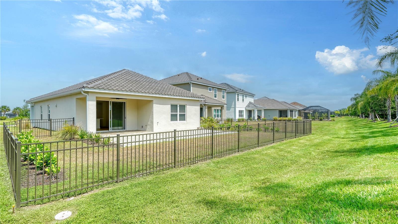 One or more photo(s) has been virtually staged. WITHIN 10 MILES OF SIESTA BEACH - TRIPADVISOR RATED #1 BEACH IN THE USA AND 4TH BEST BEACH IN THE WORLD! Don't wait months to build when you can immediately enjoy all that Springtime offers in the Sarasota area: beautiful beaches, coastal breezes, sporting events, MLB's Spring Training, world class dining and more. If you are looking for NEWER CONSTRUCTION in Sarasota with 3 Bedrooms plus a den/office, PRIVACY IN YOUR BACKYARD WITH NO NEIGHBORS BEHIND YOU, pet friendly and CLOSE PROXIMITY TO THE POOL AND RESORT STYLE AMENITIES then this is the home for you! This beautiful home in Grand Park is the same floorplan as the community's featured model home, The Imagination. A FULLY FENCED BACKYARD with a picturesque tree line view of this community's scenic landscape of Palm Trees and Cedars provides privacy with no homes backing up to you. Ideally located near the event lawns and close proximity to the clubhouse, gym and swimming pools. Amenities include: Two pools, Spa, Tennis courts, Pickleball courts, Clubhouse with active Social Calendar, State of the art Gym, trails and 2 Dog Parks. Lawn maintenance is included with your low quarterly HOA fee. Insurance costs are reasonable with this being newer construction and not located in a flood zone. This home features many upgrades with flooring, quartz counters, stainless steel appliances. The open kitchen is the hub of the home with ample storage space and an oversized island ideal for entertaining. The chef in the family will be pleased to know this home has natural gas for their culinary delights. In 2023, a 32'x15' paver patio was added with additional landscaping plus a bronze aluminum fence for backyard. (Listing agent is owner).