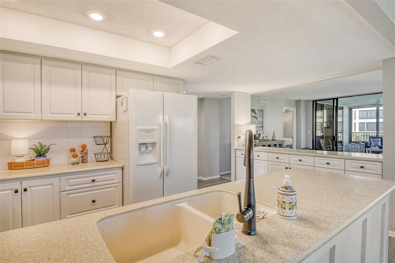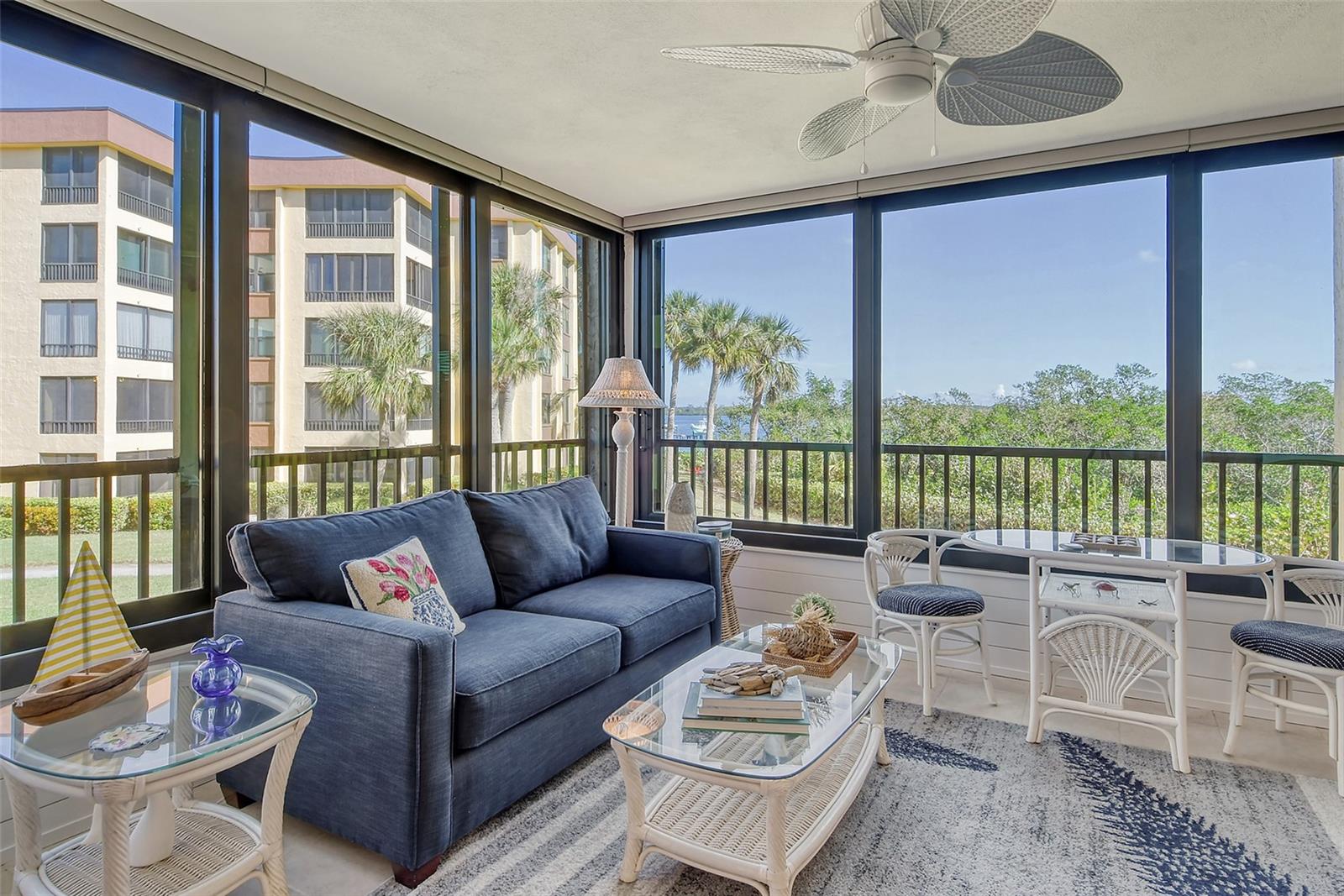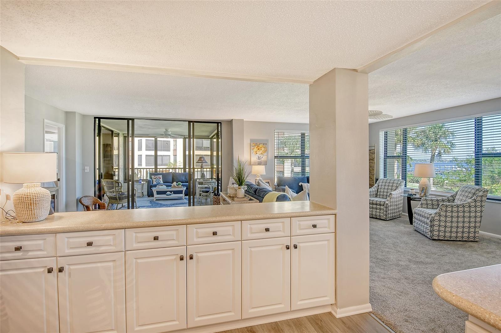This Updated residence is being sold furnished, many quality pieces from Pottery Barn (some items excluded), IMPACT exterior windows. Open floor plan. Two spacious bedrooms, office area , laundry, glassed-in Lanai. Enjoy picturesque Bay views to watch the Sunrise and across the street you can watch Sunsets on the Gulf of Mexico. This larger floor plan with full Bay Views is rarely available. Residents of Island Reef enjoy Boat Docks (lifts allowed), Beach, Two Heated Pools, Tennis, Pickleball, Two fitness Rooms, Saunas, Shuffleboard Courts, Billiards, Library, Clubhouse, Social Room, Gas Grills, Bicycle and Kayak Storage. Carport at front door of building. Guest Parking. Monthly Rentals (8 leases a year) Pet Friendly (30 lbs.) On site management and rental Program. Close to three of Siesta Keys favorite restaurants, Free Trolley to Siesta Village.