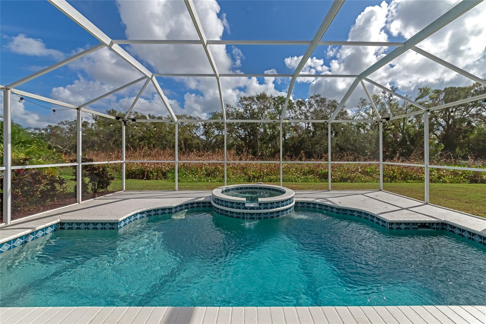 Welcome to this stunning 4-bedroom, 2.5-bathroom home nestled in the desirable neighborhood of The Trails in Sarasota. Situated on a tranquil cul-de-sac and backing onto a serene preserve lot, this home offers both privacy and natural beauty. The spacious layout is perfect for both relaxing and entertaining, with an open-concept living area that seamlessly flows into the outdoor space. The bright and airy kitchen features modern appliances, ample cabinetry and granite countertops. The large living and dining areas provide plenty of room for family gatherings or hosting guests, while the family room opens directly to the lanai, allowing you to enjoy the stunning views of the lush preserve and sparkling pool. The master suite is a true retreat, with a generous walk-in closet and an en-suite bathroom complete with dual vanities, a soaking tub, and a separate shower. The sliding door accesses the pool area and provides an abundance of sunlight into the room Step outside to your own private oasis—complete with a screened-in pool and spa, surrounded by mature landscaping and the peaceful sounds of nature from the adjacent preserve. Whether you're enjoying a quiet morning coffee or hosting a poolside barbecue, this backyard is sure to impress. Located in a prime Sarasota location, The Trails is known for its beautiful homes, tree-lined streets, and convenient access to shopping, dining, schools, and world-renowned beaches. Don’t miss out on this exceptional opportunity to live in one of Sarasota's most sought-after communities. RECENT UPDATES: HVAC (2021), Kitchen (2015), Resurfaced Pool (2012), Pool Pump and Heater, Pool Cage Straps (2016), Refrigerator, Washer, and Dryer (2024)