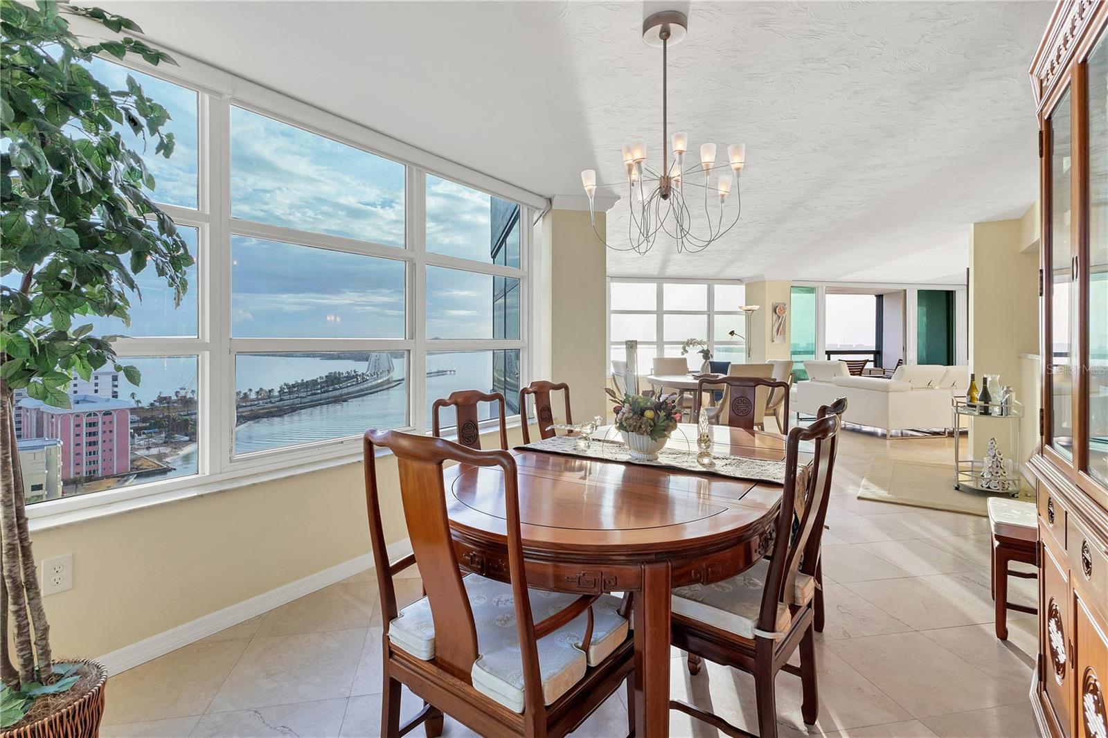 Welcome to Condo on the Bay in Sarasota, the ultimate in luxury living with every feature needed for a refined lifestyle! From the moment you step into this impeccably designed penthouse, you'll be captivated by its airy, sunlit spaces and breathtaking views of Sarasota Bay, framed by expansive windows and glass doors. The elegance of this residence is showcased through unique details like sleek modern tile flooring, ambient inset lighting, and custom built-ins throughout. For the culinary enthusiast, the gourmet kitchen is a dream come true, with abundant wood cabinetry, spacious granite-topped island, and built-in pantry. The generous owner’s suite offers serene bay views, walk-in closet, lavish ensuite bathroom complete with dual vanities and walk-in shower. The balcony is the heart of this home, where you can unwind with panoramic 180-degree views of Sarasota Bay, often visited by playful dolphins and gentle manatees in the sparkling blue waters below. Condo On The Bay also offers premium amenities, including shimmering pool, relaxing bayfront patio, and convenient boat slips for residents, allowing you to embark on Sarasota’s beautiful waters right from your doorstep. Each tower provides its own pool, fitness center, and inviting lounge areas. Just minutes away, you’ll find the best of Sarasota’s vibrant downtown, including cultural gems like the Van Wezel Performing Arts Hall, boutique shopping, and fine dining. Plus, the gorgeous sands of Lido Beach are just a short drive away, perfect for sun-soaked afternoons by the Gulf. If you’re seeking a home that combines luxury, comfort, and stunning natural beauty, this is an opportunity you won’t want to miss. Is this condo your perfect match?