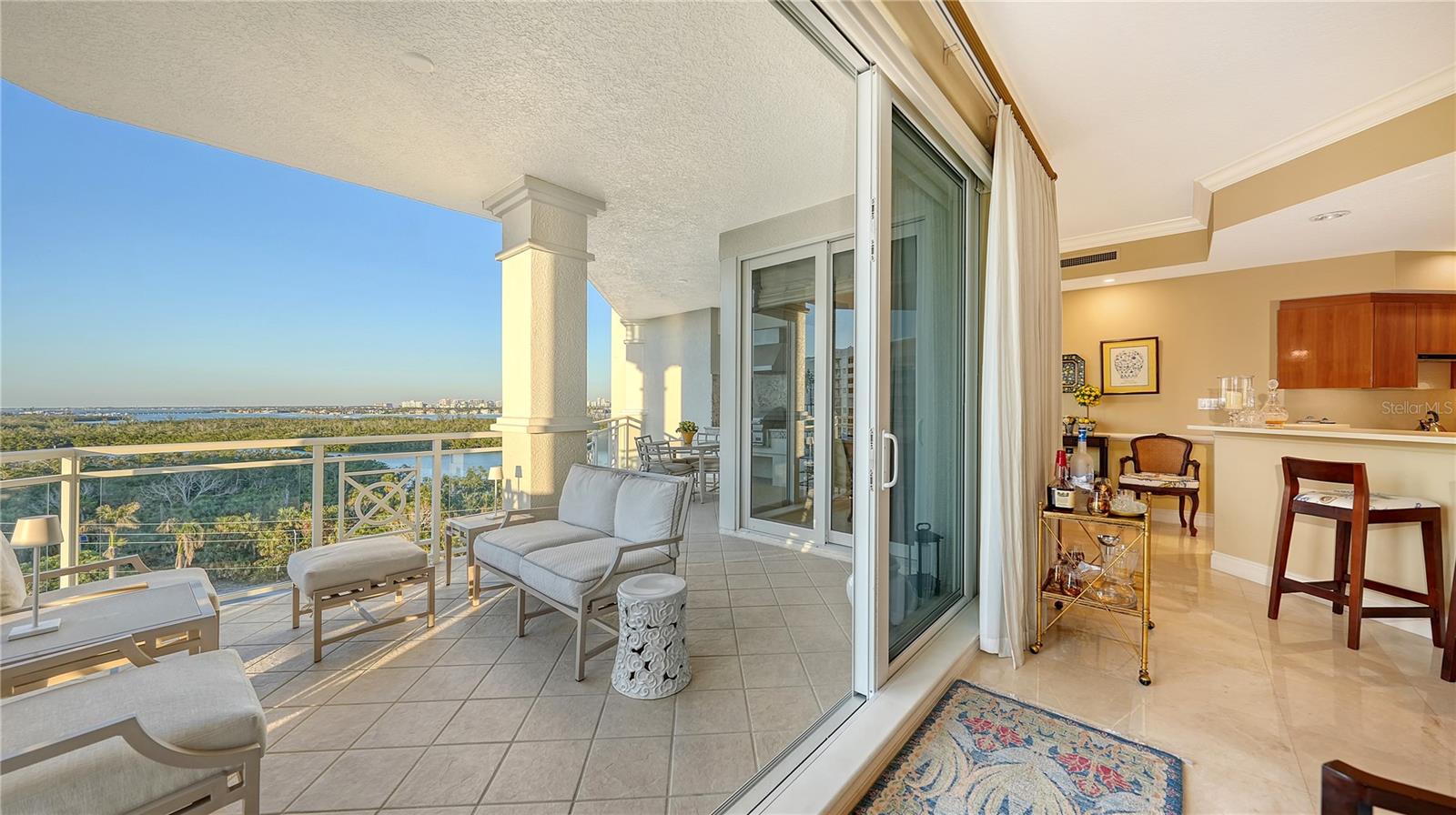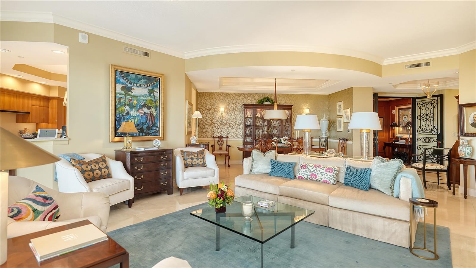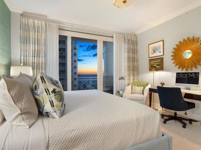 Perched on the seventh floor of Orchid Beach Club, this stunning Lido Key residence offers breathtaking beach-to-bay and city views that steal the spotlight the moment you arrive. Spanning nearly 3,000 square feet, the meticulously designed three-bedroom interior blends elegance with modern convenience, creating a luxurious coastal haven. Arrive in style via the residents-only elevator, which takes you from the two included secure parking spaces directly to a private elevator lobby. Double iron filigree doors open to reveal a sophisticated interior with sleek finishes and thoughtful details. High cove ceilings with inset lighting, custom built-ins, wood paneling, motorized window treatments, and updated designer bathrooms set the tone for refined living. The open-concept layout maximizes panoramic Gulf, bay, and downtown views, perfect for effortless entertaining. The gourmet kitchen serves as the heart of the home, featuring quartz countertops, sleek cabinetry, an island, breakfast bar, and professional-grade Bosch and Dacor appliances, including a 6-burner gas stove and warming drawer. The seamless flow from the kitchen to the dining and living areas ensures a welcoming space for family and friends to gather. The primary suite is a serene Gulf-front retreat with access to a private beachfront terrace, dual walk-in closets, and a marble-clad inspired bathroom. Designed for relaxation and privacy, the two guest suites are in a split layout, providing comfortable accommodation for visitors. This expansive residence offers the ultimate indoor-outdoor living experience with three distinct terraces, each designed to showcase breathtaking vistas of the Gulf, bay, and city skyline. The Gulf-facing balcony, an exclusive retreat for the primary suite, also connects to the third bedroom. The largest terrace, overlooking the bay, features a spacious lounge area, fully equipped summer kitchen, and dining space, all accessible from both the great room and kitchen for effortless hosting. Completing the layout, the second guest suite enjoys its own secluded terrace. Orchid Beach Club, a charming Gulf-front community of just 54 luxury residences, offers an unmatched resort-style living experience. Residents enjoy 24-hour gated entry, concierge services, and a host of amenities, including a vibrant clubhouse with a social room, billiards, library, and catering kitchen. The state-of-the-art fitness center features a sauna, spa room, and massage services, while the expansive Gulf-side deck surrounds a heated pool and spa, creating an ideal setting for lounging. A boardwalk leads directly to the soft sands and warm waters of Lido Key Beach, completing the coastal lifestyle. Ideally located, this residence is minutes from the boutique shopping, fine dining, and cultural attractions of St. Armands Circle, Longboat Key, and downtown Sarasota. Whether you’re exploring world-class museums, theaters, or marinas, this central address ensures every convenience is at your fingertips, blending sophistication and tranquility in perfect harmony.