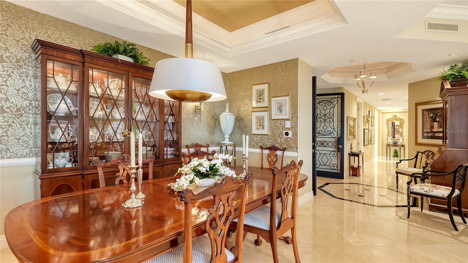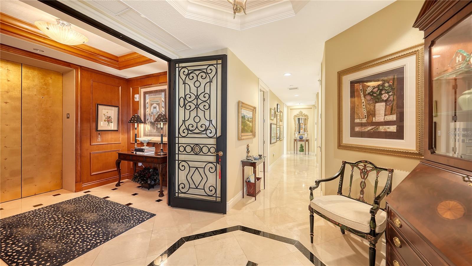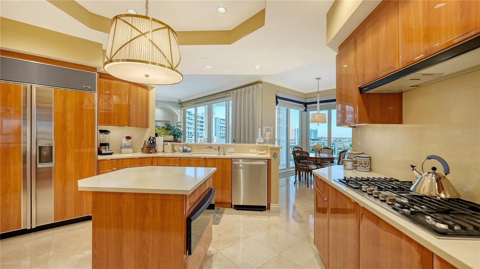 Perched on the seventh floor of Orchid Beach Club, this stunning Lido Key residence offers breathtaking beach-to-bay and city views that steal the spotlight the moment you arrive. Spanning nearly 3,000 square feet, the meticulously designed three-bedroom interior blends elegance with modern convenience, creating a luxurious coastal haven. Arrive in style via the residents-only elevator, which takes you from the two included secure parking spaces directly to a private elevator lobby. Double iron filigree doors open to reveal a sophisticated interior with sleek finishes and thoughtful details. High cove ceilings with inset lighting, custom built-ins, wood paneling, motorized window treatments, and updated designer bathrooms set the tone for refined living. The open-concept layout maximizes panoramic Gulf, bay, and downtown views, perfect for effortless entertaining. The gourmet kitchen serves as the heart of the home, featuring quartz countertops, sleek cabinetry, an island, breakfast bar, and professional-grade Bosch and Dacor appliances, including a 6-burner gas stove and warming drawer. The seamless flow from the kitchen to the dining and living areas ensures a welcoming space for family and friends to gather. The primary suite is a serene Gulf-front retreat with access to a private beachfront terrace, dual walk-in closets, and a marble-clad inspired bathroom. Designed for relaxation and privacy, the two guest suites are in a split layout, providing comfortable accommodation for visitors. This expansive residence offers the ultimate indoor-outdoor living experience with three distinct terraces, each designed to showcase breathtaking vistas of the Gulf, bay, and city skyline. The Gulf-facing balcony, an exclusive retreat for the primary suite, also connects to the third bedroom. The largest terrace, overlooking the bay, features a spacious lounge area, fully equipped summer kitchen, and dining space, all accessible from both the great room and kitchen for effortless hosting. Completing the layout, the second guest suite enjoys its own secluded terrace. Orchid Beach Club, a charming Gulf-front community of just 54 luxury residences, offers an unmatched resort-style living experience. Residents enjoy 24-hour gated entry, concierge services, and a host of amenities, including a vibrant clubhouse with a social room, billiards, library, and catering kitchen. The state-of-the-art fitness center features a sauna, spa room, and massage services, while the expansive Gulf-side deck surrounds a heated pool and spa, creating an ideal setting for lounging. A boardwalk leads directly to the soft sands and warm waters of Lido Key Beach, completing the coastal lifestyle. Ideally located, this residence is minutes from the boutique shopping, fine dining, and cultural attractions of St. Armands Circle, Longboat Key, and downtown Sarasota. Whether you’re exploring world-class museums, theaters, or marinas, this central address ensures every convenience is at your fingertips, blending sophistication and tranquility in perfect harmony.