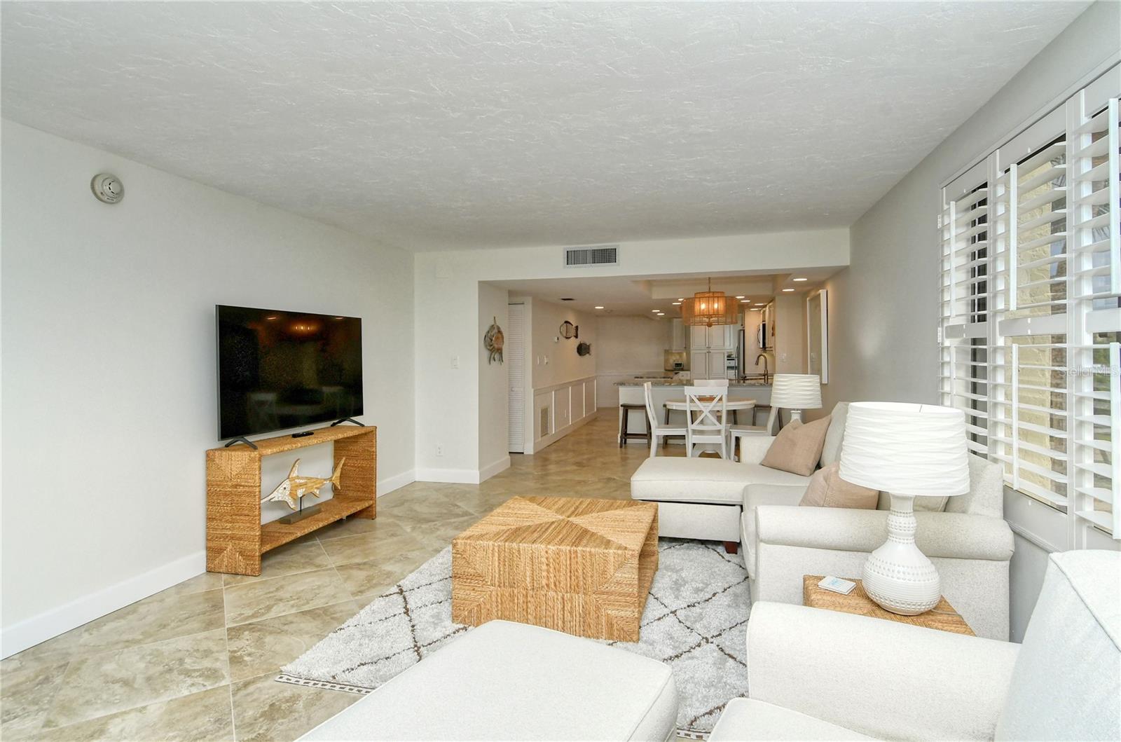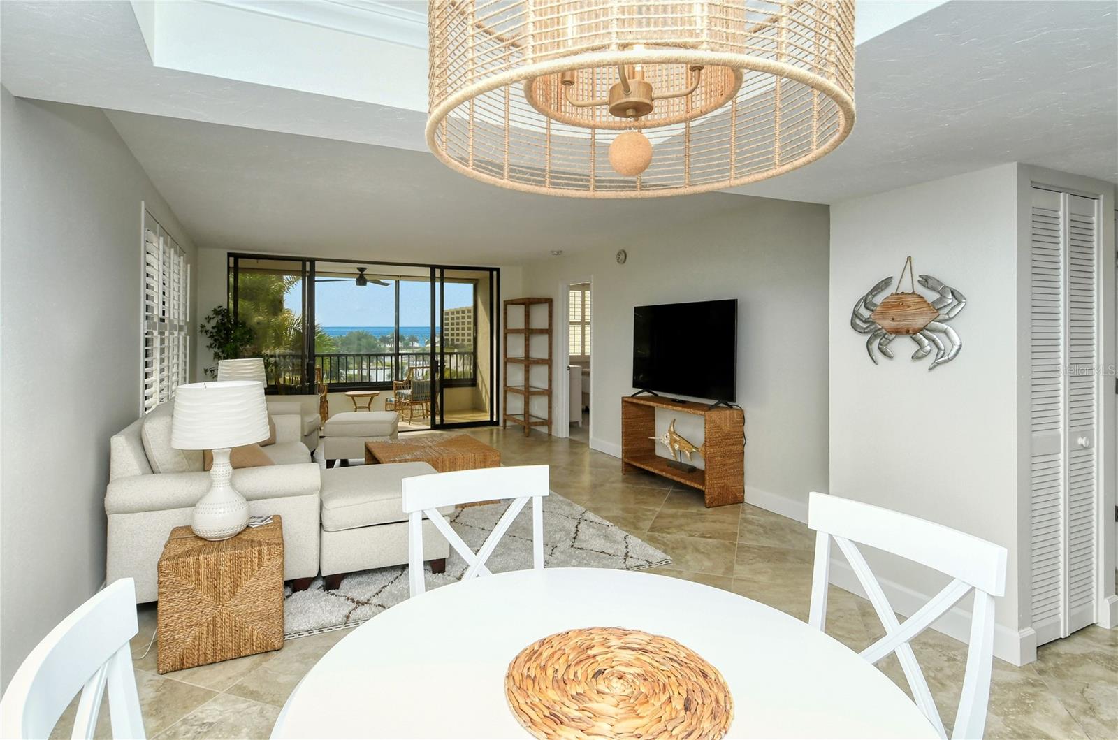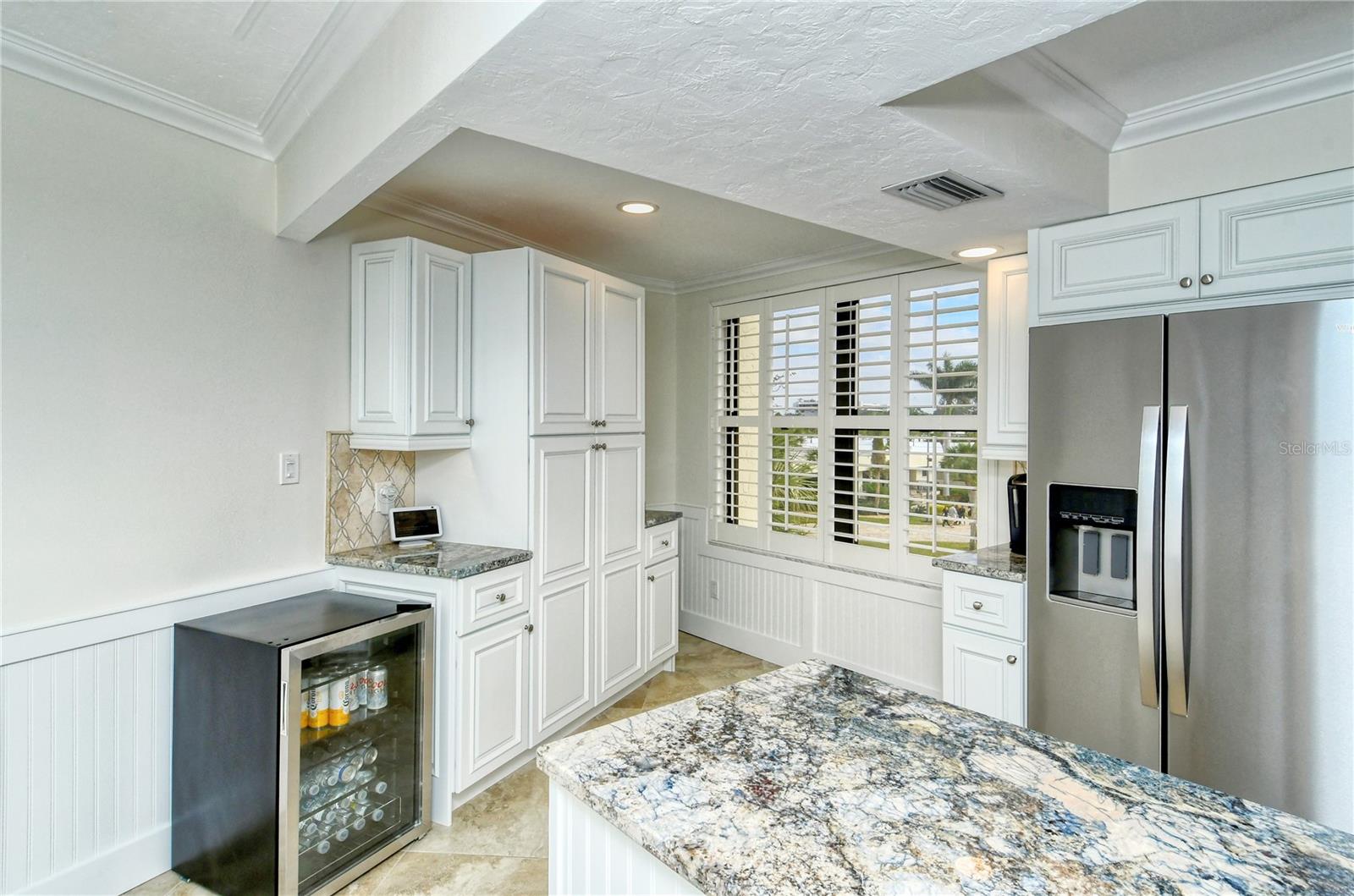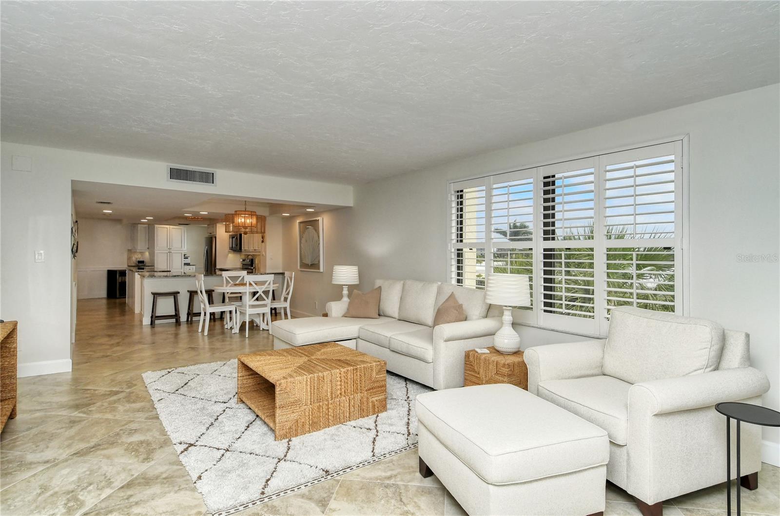 Do not miss the opportunity to purchase this fabulous, 2 bed, 2 bath turnkey furnished end unit condo, fully updated (kitchen, baths & more) & beautifully decorated with the most amazing views of the Gulf of Mexico (Siesta Key Beach) and Siesta itself! This 3rd floor unit certainly has the “Wow” factor immediately as you enter the front door, (which has keyless entry for convenience), being an end unit, there is an abundance of light and spectacular views from all rooms! Plantation shutters are located throughout to control the sun & the decor is so welcoming. You will note the newer white kitchen cabinets, gleaming granite counters with an oversized island complete with breakfast bar seating, all new stainless-steel appliances, unit was freshly painted (ceilings, walls & trim) new carpet in bedrooms, all new electrical outlets & switches, light fixtures, kitchen faucet, brushed nickel doorknobs/hinges, new Pottery Barn furniture throughout, all new screens, a Wi-Fi thermostat and again, keyless entry! A super handy beverage cooler has been installed in kitchen, you will find pull-outs and soft close doors & drawers, wainscoting, crown molding, 2 full sized beds in guest room, a master suite with gulf views , double vanities for convenience in the bath and the most organized closet to fill with your clothes, a true laundry room w/lots of storage for beach toys and so much more!! Did I mention the views?? Sit on your private lanai and watch the sunsets and waves of the Gulf of Mexico. This just isn’t a condo, it's a lifestyle! Gulf & Bay boasts 2 pools, a new fitness center (located right out in front of this building) with saunas, tennis & pickleball courts, basketball, electric car charging stations, clubhouse, indoor hot tub and more!! Location is key here, hop on the free trolley and head to the village for dinner and shopping or take a long walk on the beach, or just lay at the water's edge and be so thankful that you are now living the Siesta Key Beach life, it doesn’t get any better than this!