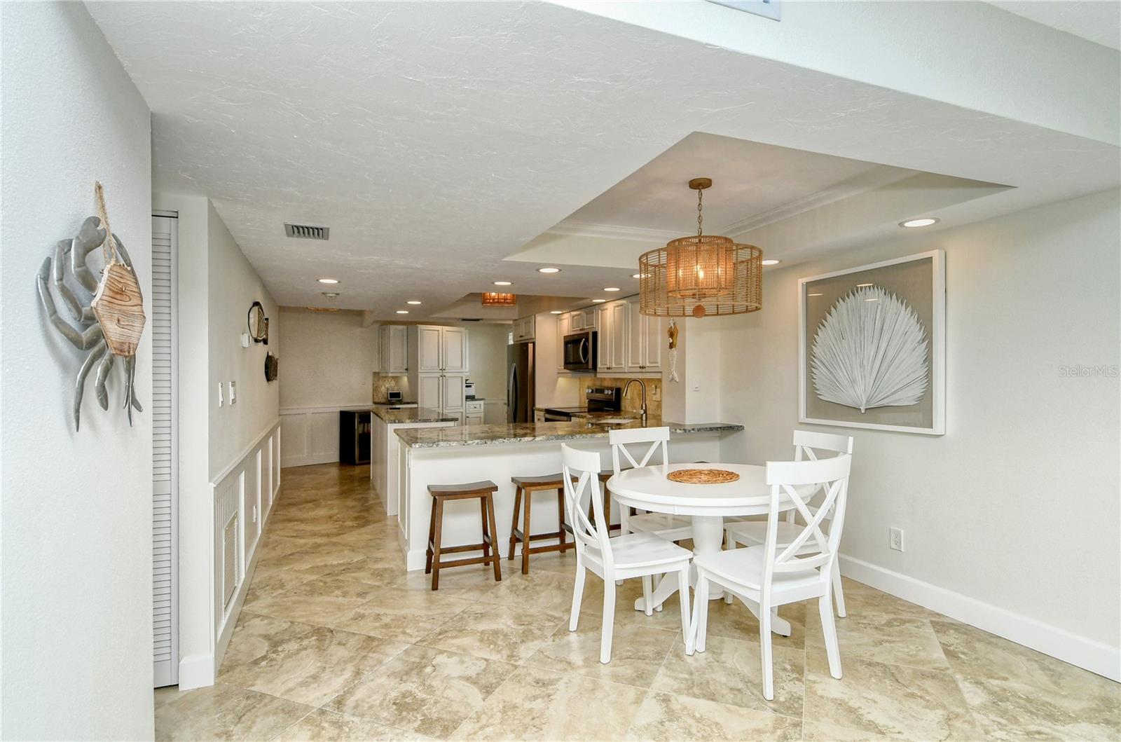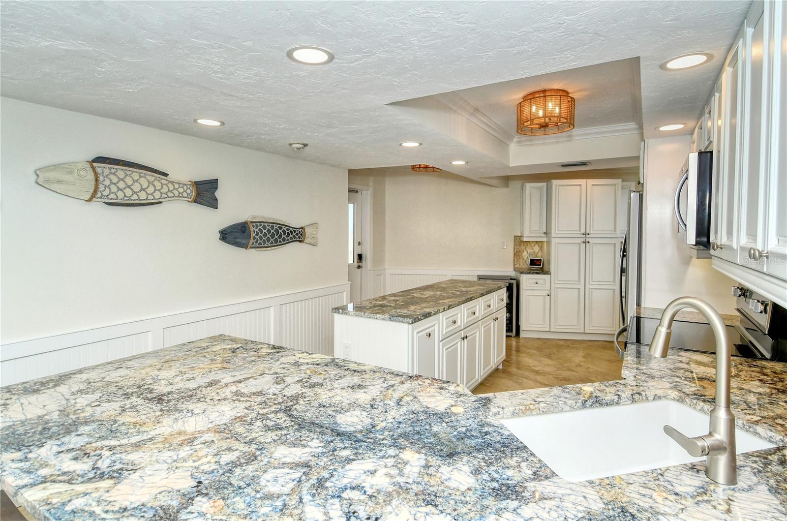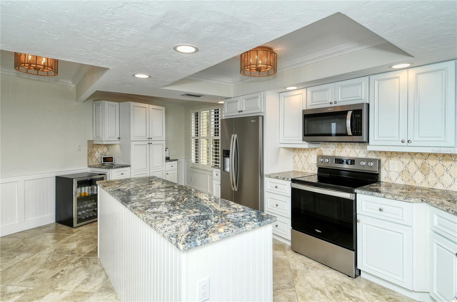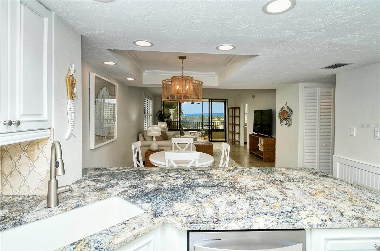 Do not miss the opportunity to purchase this fabulous, 2 bed, 2 bath turnkey furnished end unit condo, fully updated (kitchen, baths & more) & beautifully decorated with the most amazing views of the Gulf of Mexico (Siesta Key Beach) and Siesta itself! This 3rd floor unit certainly has the “Wow” factor immediately as you enter the front door, (which has keyless entry for convenience), being an end unit, there is an abundance of light and spectacular views from all rooms! Plantation shutters are located throughout to control the sun & the decor is so welcoming. You will note the newer white kitchen cabinets, gleaming granite counters with an oversized island complete with breakfast bar seating, all new stainless-steel appliances, unit was freshly painted (ceilings, walls & trim) new carpet in bedrooms, all new electrical outlets & switches, light fixtures, kitchen faucet, brushed nickel doorknobs/hinges, new Pottery Barn furniture throughout, all new screens, a Wi-Fi thermostat and again, keyless entry! A super handy beverage cooler has been installed in kitchen, you will find pull-outs and soft close doors & drawers, wainscoting, crown molding, 2 full sized beds in guest room, a master suite with gulf views , double vanities for convenience in the bath and the most organized closet to fill with your clothes, a true laundry room w/lots of storage for beach toys and so much more!! Did I mention the views?? Sit on your private lanai and watch the sunsets and waves of the Gulf of Mexico. This just isn’t a condo, it's a lifestyle! Gulf & Bay boasts 2 pools, a new fitness center (located right out in front of this building) with saunas, tennis & pickleball courts, basketball, electric car charging stations, clubhouse, indoor hot tub and more!! Location is key here, hop on the free trolley and head to the village for dinner and shopping or take a long walk on the beach, or just lay at the water's edge and be so thankful that you are now living the Siesta Key Beach life, it doesn’t get any better than this!