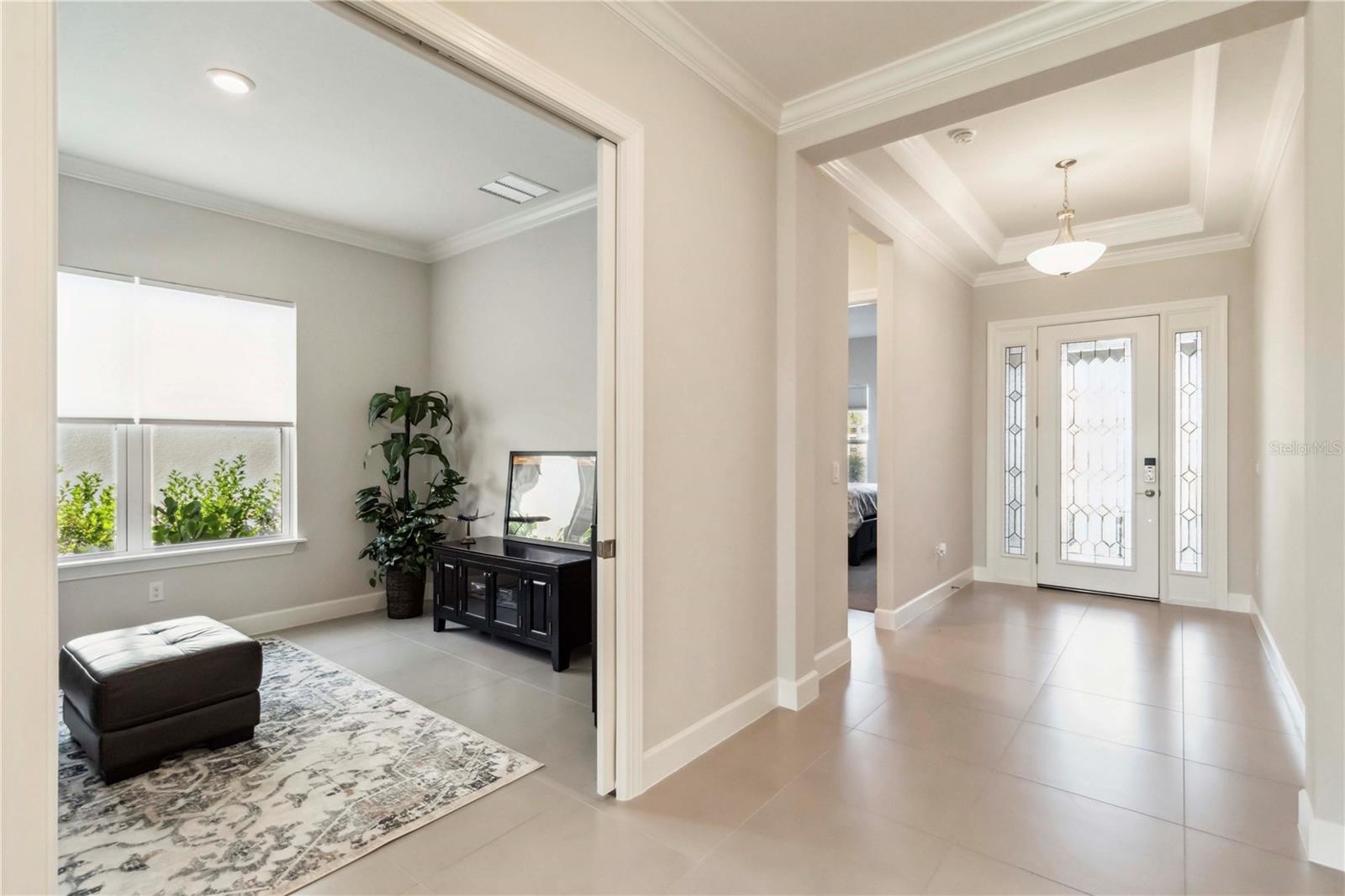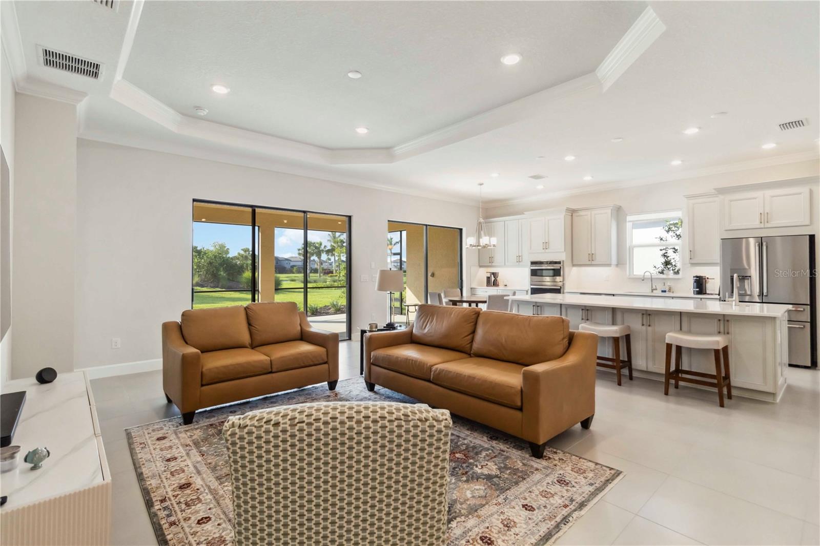 Why wait to build when you can move right into this designer-upgraded masterpiece in Esplanade at Skye Ranch? Perfectly positioned at the end of a quiet, private street, this barely lived-in Lazio floor plan offers the ideal blend of luxury, function, and Florida lifestyle. With 3 bedrooms + a den, 3 full baths, and a spacious 3-car tandem garage, this home was built to impress and designed for everyday comfort. From the moment you walk in, you’ll notice the difference—over $200,000 in premium builder upgrades paired with thoughtful post-build enhancements that take this home to the next level. Brand new crown molding throughout adds classic elegance and polish, elevating every space. Soaring ceilings and sleek porcelain tile floors enhance the open, airy feel, while natural light pours in from every angle. The chef’s kitchen is an entertainer’s dream—quartz countertops, soft-close wood cabinetry, upgraded appliances, and an oversized island that invites gatherings both big and small. Your owner’s suite is a true sanctuary, complete with a large bay window, a luxurious bath with dual vanities and an expansive walk-in shower, and a closet so spacious it could double as a dressing room. New impact windows are being added in the master bedroom bay windows for enhanced safety, comfort, and efficiency. Step outside to the lanai, where you’ll find $20,000 in electric hurricane shades (being installed late summer of 2025)—effortless protection and privacy with the touch of a button, so you can enjoy the outdoors no matter the weather. But the lifestyle doesn’t stop at your doorstep. Living in Skye Ranch means access to resort-style amenities that rival luxury vacation destinations: multiple pools, tennis and pickleball courts, a state-of-the-art fitness center, indoor basketball, scenic walking and biking trails, and the brand new social and recreational hubs—The Hub, The Venue, Rendezvous Park, and Turner Park. Skye Ranch School will also be opening this fall! This home is better than new—meticulously upgraded, move-in ready, and situated in one of Southwest Florida’s fastest-growing, most desirable lifestyle communities. If you’re looking for elegance, comfort, and zero compromises… this is the one.